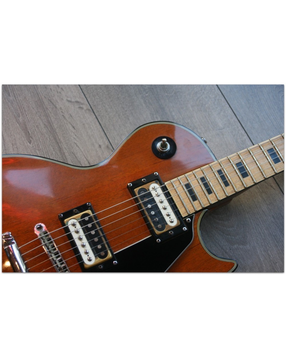 70´s Ibanez Les Paul copy, still with the "law-suit" - Gibson headstock. The guitar comes from first owner and is in excellent condition. The first set of frets barely show any wear. Arched mahagony body with mahagony neck and maple fretboard, chrome hardware and the famous "Super 70" humbucking pickups. The Ibanez had once Schaller tuners, now the original mechs are back on. Nice sound and collectable.