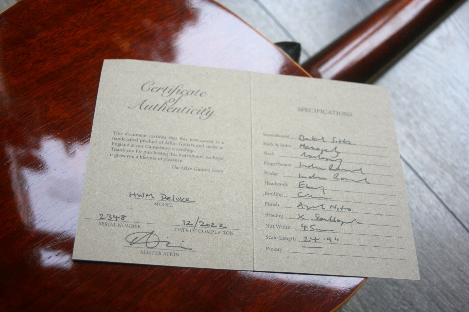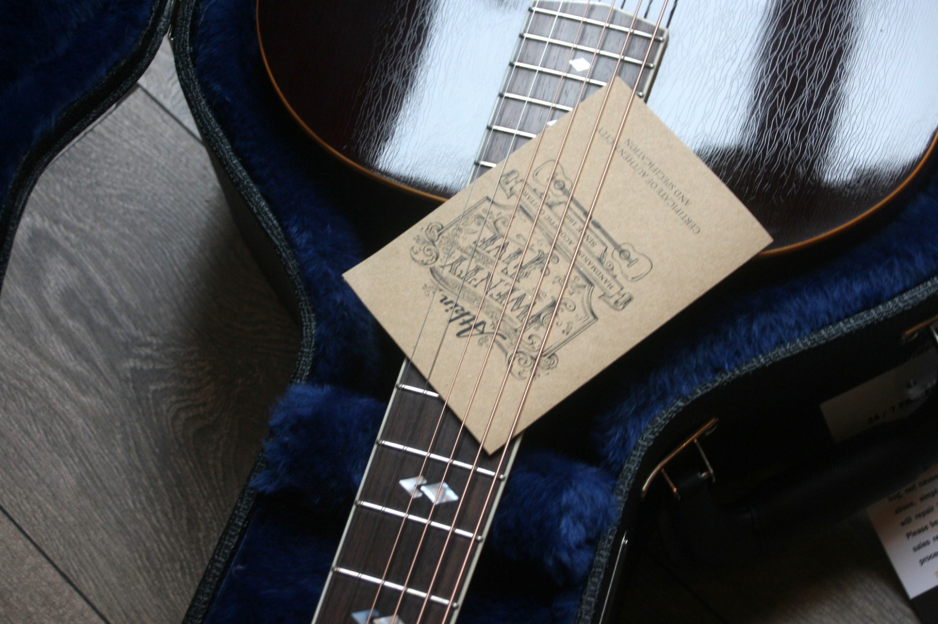 Specifications Top Baked Sitka Spruce Back & Sides Mahogany Neck Mahogany Headstock Overlay Walnut Logo Atkin & Banner Decal Truss Rod Two-Way (Soundhole Adjust) Fretboard Santos Rosewood Bridge Santos Rosewood Rosette Black/White/Black Binding Grained Ivoroid Bracing Pre-war scalloped Lacquer Finish High Gloss Nitrocellulose Nut & Saddle Bone Tuners Nickel Kluson Side Dot Fingerboard Markers White Celluloid Fret Markers MOP - Dots Case Atkin Hard Shell Dimensions Body Length 20 1/8" Body Depth 4 7/8" Lower Bout Width 16" Total Length 41" Scale Length 24 7/8" Nut Width 45mm