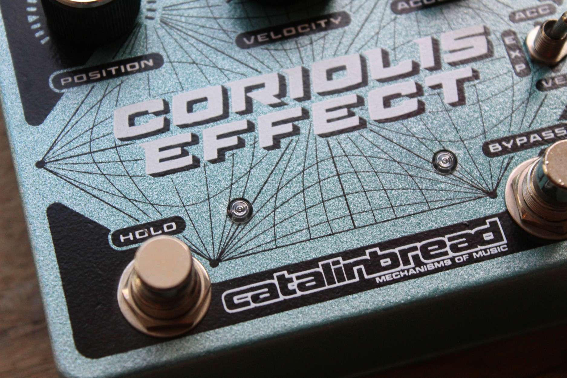 CORIOLIS™ EFFECT A SUSTAINER, WAH, FILTER, PITCH SHIFTER, AND HARMONIZER ROLLED INTO ONE The Coriolis™ Effect is a phenomenon in classical mechanics where a trajectory becomes altered due to a rotating frame of reference. The Catalinbread® Coriolis™ Effect has three main parameters to change the equations of motion for your guitar signal. Turning down the Velocity and Acceleration controls drags your playing into the heart of a black hole, redshifting your tone into a lower pitch and filtering out the high frequencies. The Hold button will instantly pull you into the black hole stopping time completely. Plug in and explore where humanity has never shredded before! In short: Think of the Coriolis™ Effect as a sustainer, wah, filter, pitch shifter, and harmonizer rolled into one—the sonic possibilities are endless!