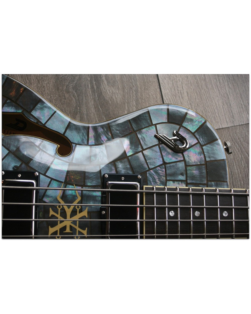 We are honored to introduce the Duesenberg Alliance Series Guitar with Grammy Award-Winning band Soundgarden: Chris Cornell (r.i.p.), Kim Thayil, Ben Shepherd and Matt Cameron. Recognized as one of the world’s most influential bands in rock music, Grammy-winning multi-platinum selling band Soundgarden started a musical transformation that inspired a generation in its record-breaking career, leaving an indelible mark by helping redefine alternative and hard rock. From their early beginnings in the 1980s performing around Seattle Washington, Soundgarden was one of the most instrumental bands in the creation of grunge and alternative rock. Crossing generational lines, for millions of fans worldwide, Soundgarden created a voice for the youth around the world. Duesenberg incorporated the history of Soundgarden throughout the guitar, encompassing the symbols of their legendary past by celebrating their mark in music. The graceful style of the Duesenberg Starplayer TV was the canvas in developing the »Alliance Series Soundgarden Black Hole Sun«. For this historic guitar, Duesenberg chose a Mother Of Pearl finish for its vision of the “Black Hole Sun”, as well as symbols from the Badmotorfinger album all the way through the song “Been Away Too Long”. The guitar features a custom Duesenberg Diamond Deluxe Tremola with built in spark plug, as well as a spark plug inlay on the 12th fret, a custom decal between the pickups and unique volume and tone knobs. Additionally, there is also a 4-string bass version of the instrument. The unveiling will occur at the Duesenberg USA booth 4878 at the 2016 Winter NAMM in Anaheim, California. This unique guitar will display all of the details, workmanship and sound for which Duesenberg is famous, as well as a number of features which are new to the Duesenberg tradition. The »Alliance Series Soundgarden Black Hole Sun« Series will be available as a limited 100 pieces run. First orders are expected to be shipped in Spring 2016.