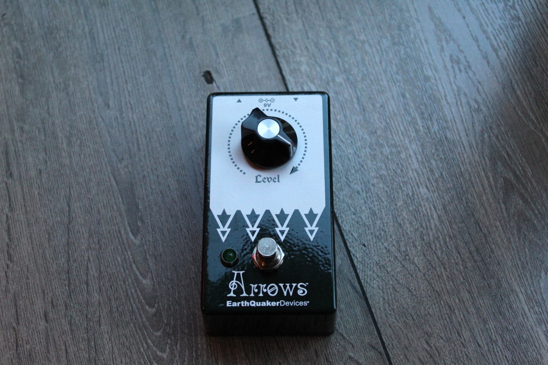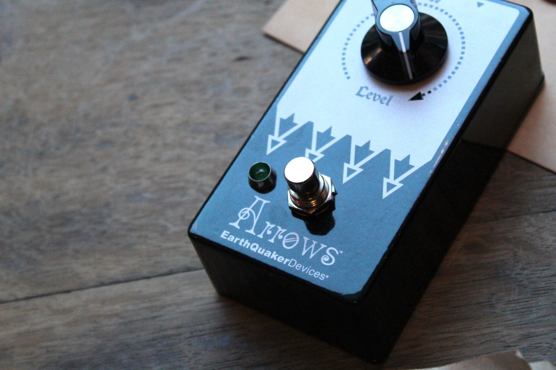 "The Arrows is an all-discrete tone sculpting preamp booster. It was designed with the intention of adding an additional channel of gain to all your dirt pedals as well as brightening up neck pickups. It boosts midrange, tightens up the low end and makes the top end shine while adding some push to drive your dirt into blooming sustain with excellent harmonics. Its simple interface is no nonsense; a single control that will either boost or cut your signal. Use the Arrows to remove the muck from bass heavy fuzz pedals, push light overdrives into higher gains than you thought possible or even on its own to make your signal really pop with more pizazz. All analog, true bypass and handmade one at a time in the weird pit of Akron, Ohio.