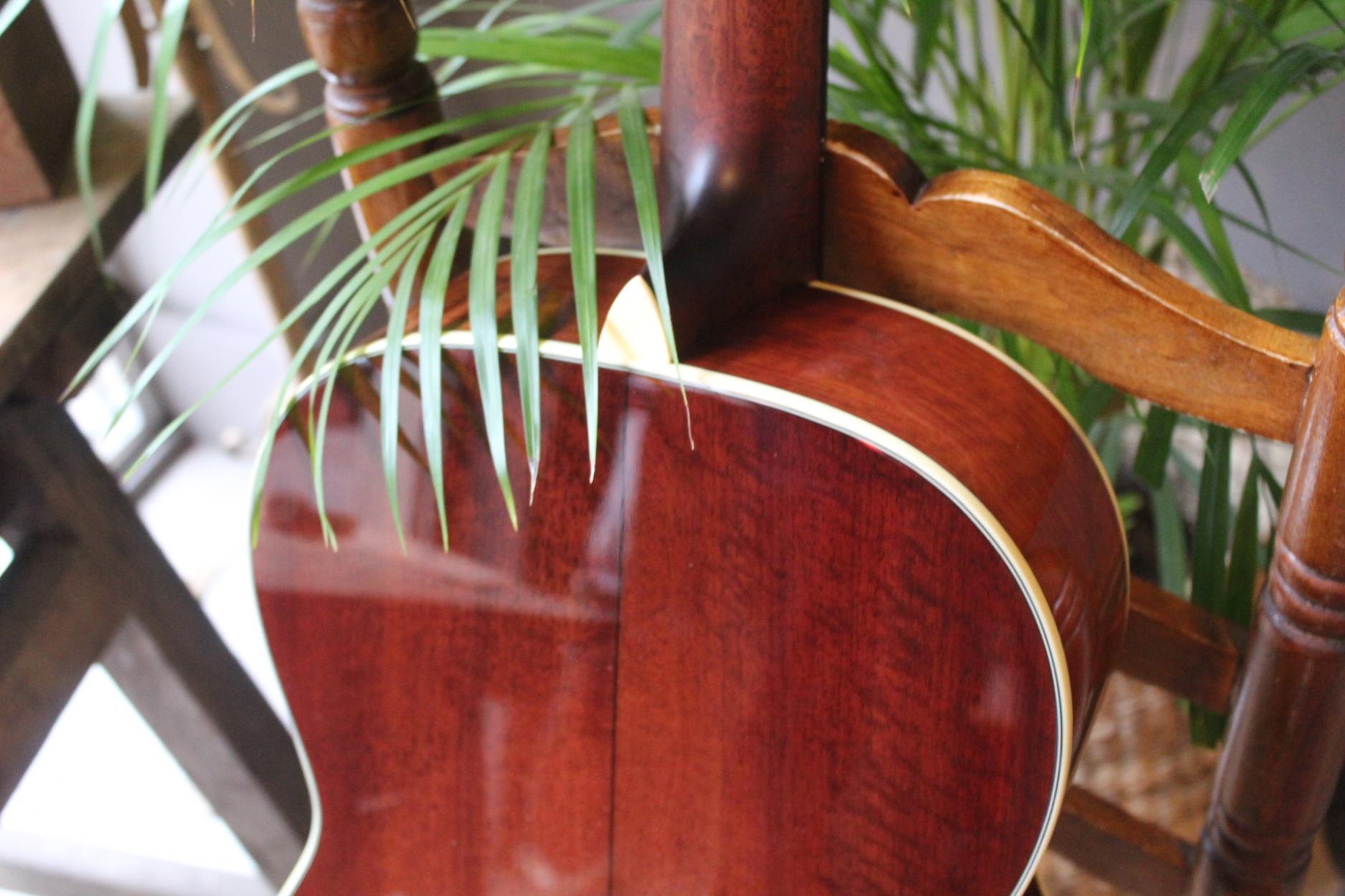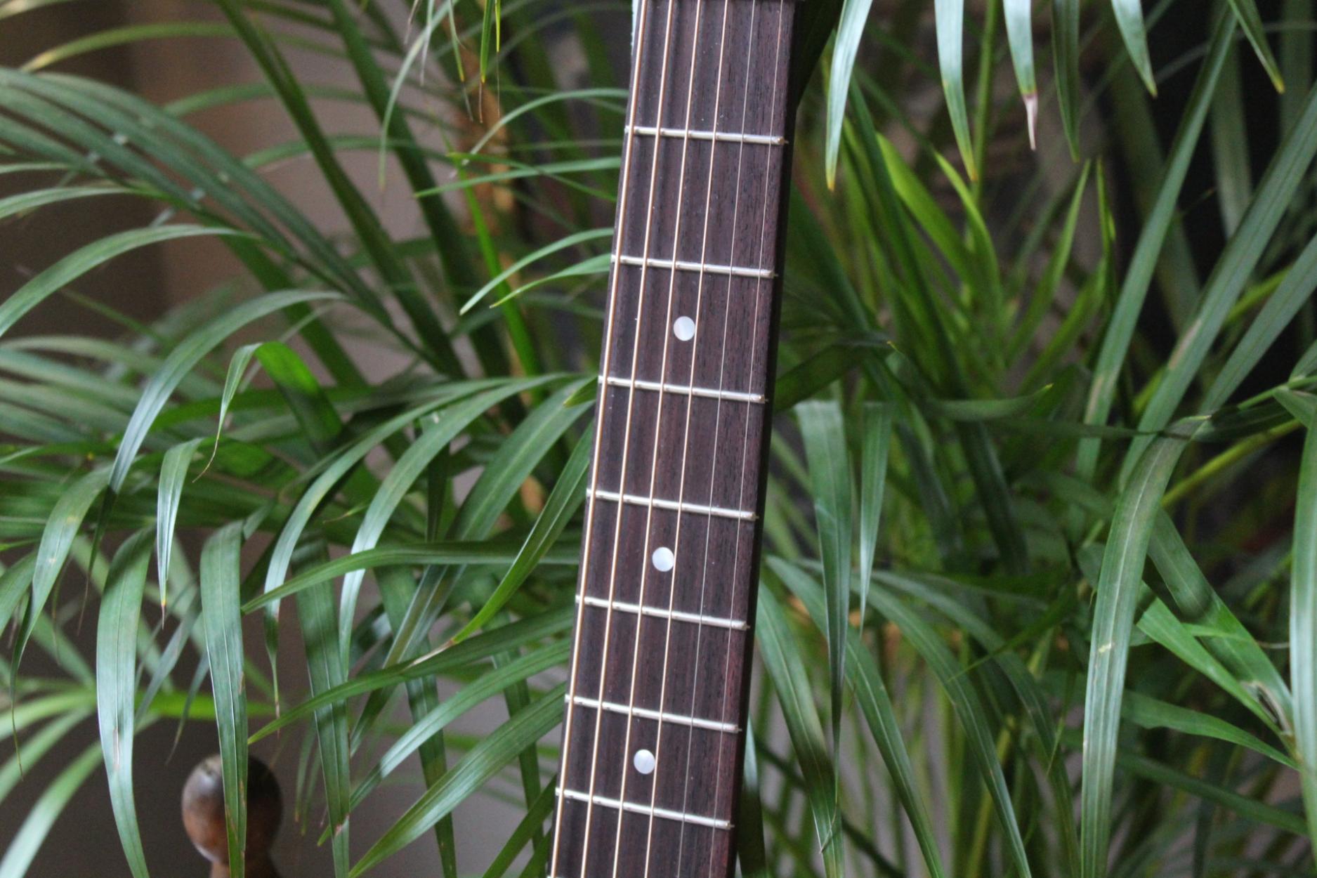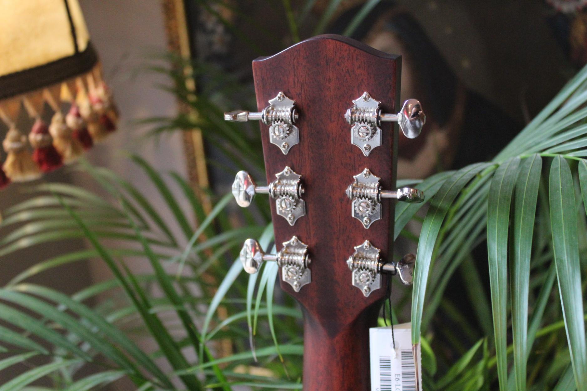 E6 LGSS Thermo-Cure Get More Info New Model - Created in close collaboration with LA Guitars Neck Material:Mahogany Fingerboard:Rosewood Fingerboard Radius:12" Neck Profile:Traditional Even "C" Nut:Bone 1.75" (44.4mm) Fretwire:20 Jescar-FW43080 Scale Length:24.75" Body Dimensions:14" X 4" Bracings:Hand-Carved Scalloped X Body Top:Solid Thermo-Cured Sitka Spruce Body Back/Sides:Solid Mahogany Bridge/Saddle:Rosewood/Bone, 2-5/32" Spacing Rosette:Classic Truss Rod:Dual Acting Binding:Top/Back Binding Material:Ivoroid Logo:Pearl Headstock Inlay:Pearl Dots Side Dot Color:White Bridge Pins:Ebony Body Top Finish:Truetone Gloss Back/Sides Finish:Truetone Gloss Hardware Color:Nickel Pickguard:Firestripe Tuners:Gotoh SE780-06M-N Strings:D'Addario XT Phosphor Bronze (.012 - .053) Action Height:12th fret 3/32" on the bass side and 2/32" on the treble side Case:Hardshell Case Truss Rod Wrench:4mm Allen Color Options:Sunburst