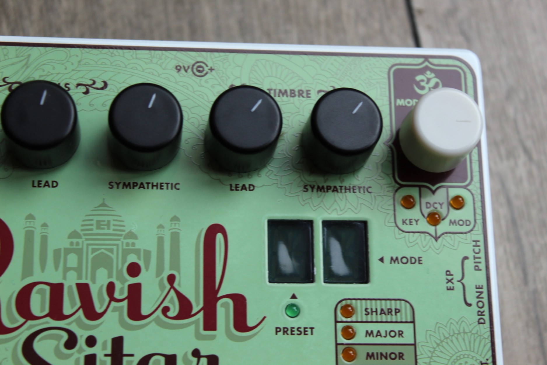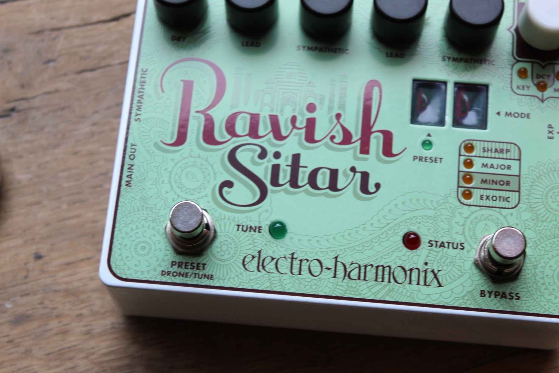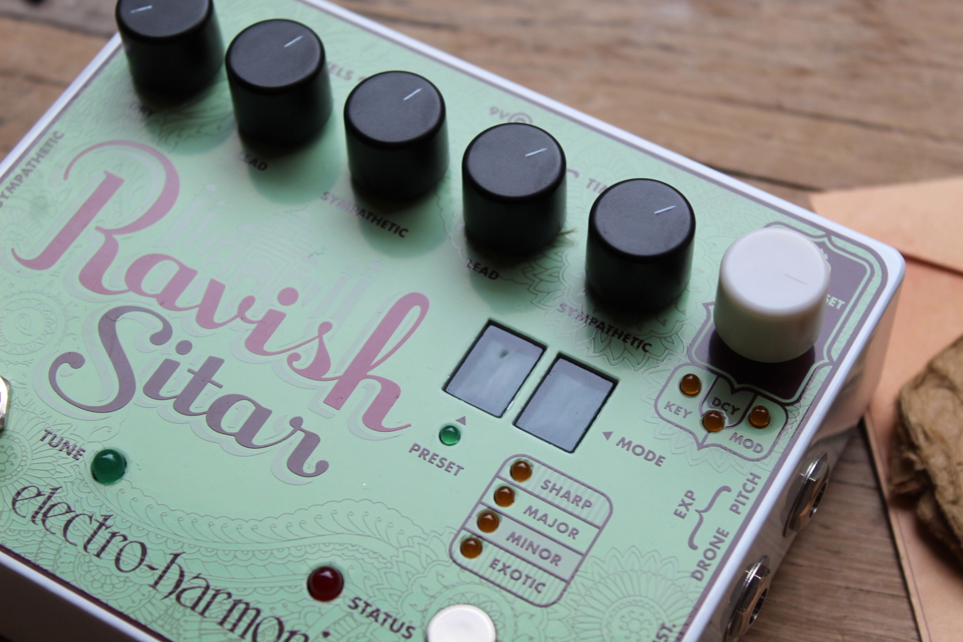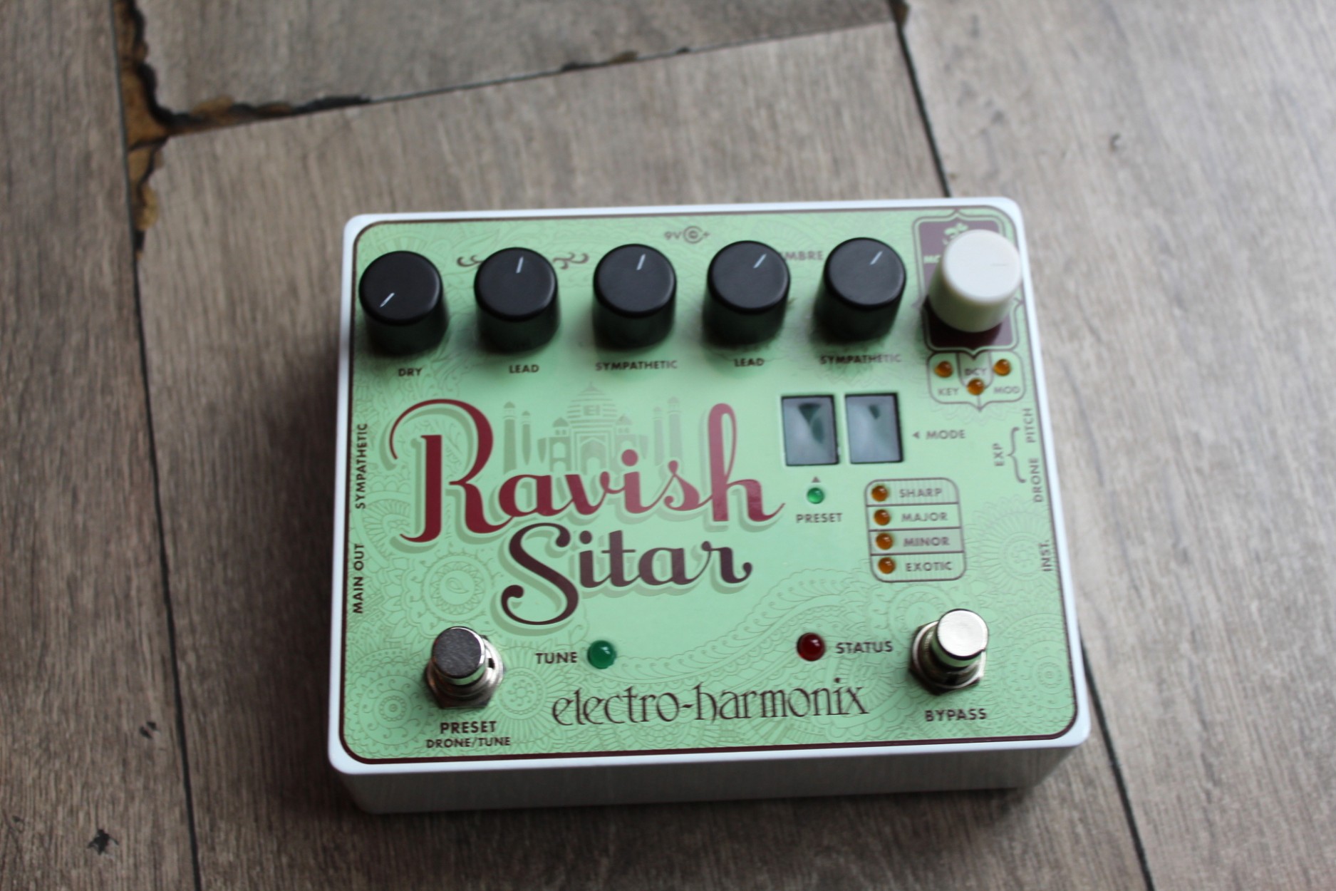 Very few instruments offer as much harmonic and dynamic flexibility as a sitar. Electro-Harmonix has streamlined the essence of the sitar into a compact enclosure that offers a polyphonic lead voice and tunable sympathetic string drones that dynamically react to your playing. Create your own custom scales for the sympathetic strings while you set the decay time for the lead voice. Two expression pedal inputs allow you to bend the pitch of the lead voice and control the volume of the sympathetic strings simultaneously. These unique controls offer the player the ability to program the Ravish to become a totally unique and organic instrument unto itself. The Ravish is a truly new design with the flexibility to be a crossover tonal wonder.