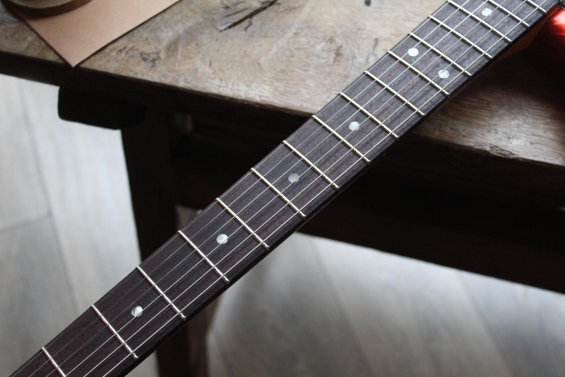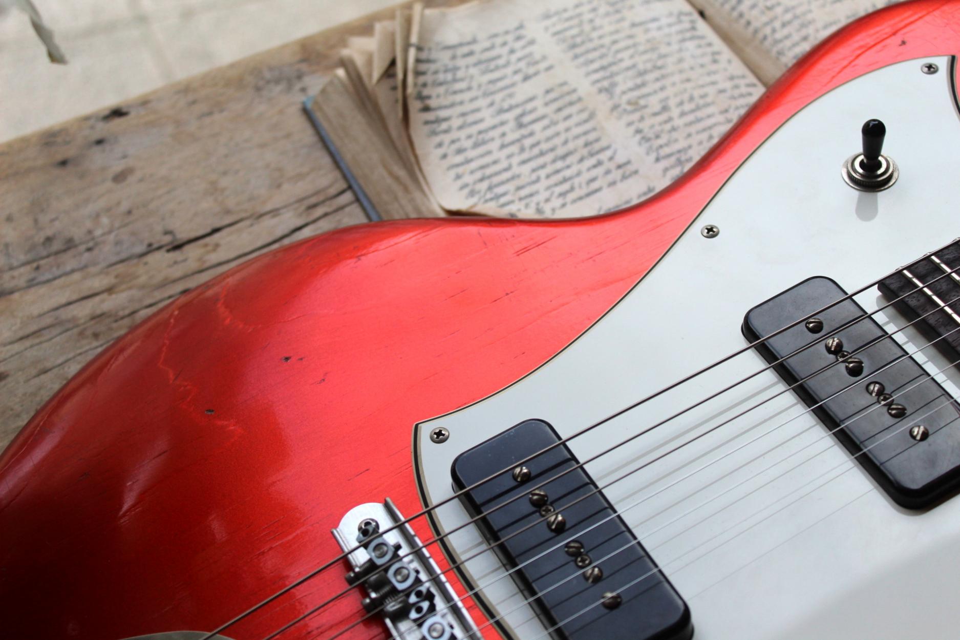 3, 24 KG This Serus J is part of Novo's new 'Nucleus' line! Masterfully designed by the famous Dennis Fano and built by the skilled team in Nashville, these guitars are in a class of their own! Like the Serus P2, the Serus J has a comfortable contoured body with two Fralin P90 pickups. However, the 'J' also takes inspiration from the Jazzmaster and distinguishes itself through the new 'Novo-branded' Mastery bridge and vibrato. Cloaked in an aged Candy Apple Red finish, it also looks stunning, and we're big fans of the matching headstock that comes standard on Serus models! The "tempered" body and neck actually means the same thing as "roasted" or "torrefied" and provides an aged look and more resonance. With that, this guitar already exudes quite a bit of vintage flair and is a joy to play. The guitar comes with certificate of authenticity and TFOA passport in a deluxe Novo gig bag. SpecificationsVergelijkenBrand and ConditionBrandNovoConditionNewHardwareBridgeMasteryTailpieceMastery VibratoTuning MachinesKluson Supreme StaggeredBodyBody ShapeOffsetColour FamilyRedFinishCandy Apple RedBody MaterialRoasted PineBody Details3-Ply Parchment PickguardNeckFingerboard MaterialRosewoodFingerboard Radius9.5" - 14" CompoundNeck DetailsMOTO Inlays, Matching HeadstockNutwidth42.1 mm / 1.66"Scale Length648 mm / 25.5"Neck MaterialRoasted MapleNeck ProfileCElectronicsPickup ConfigurationP90-P90PickupsFralin P90ControlsVolume, Tone, 3-Way SwitchMiscellaneousWeightNoneTravels inNovo Deluxe Padded GigbagAccessoriesBooklet, Case Candy, TFOA PassportPhotos ofActual Instrument