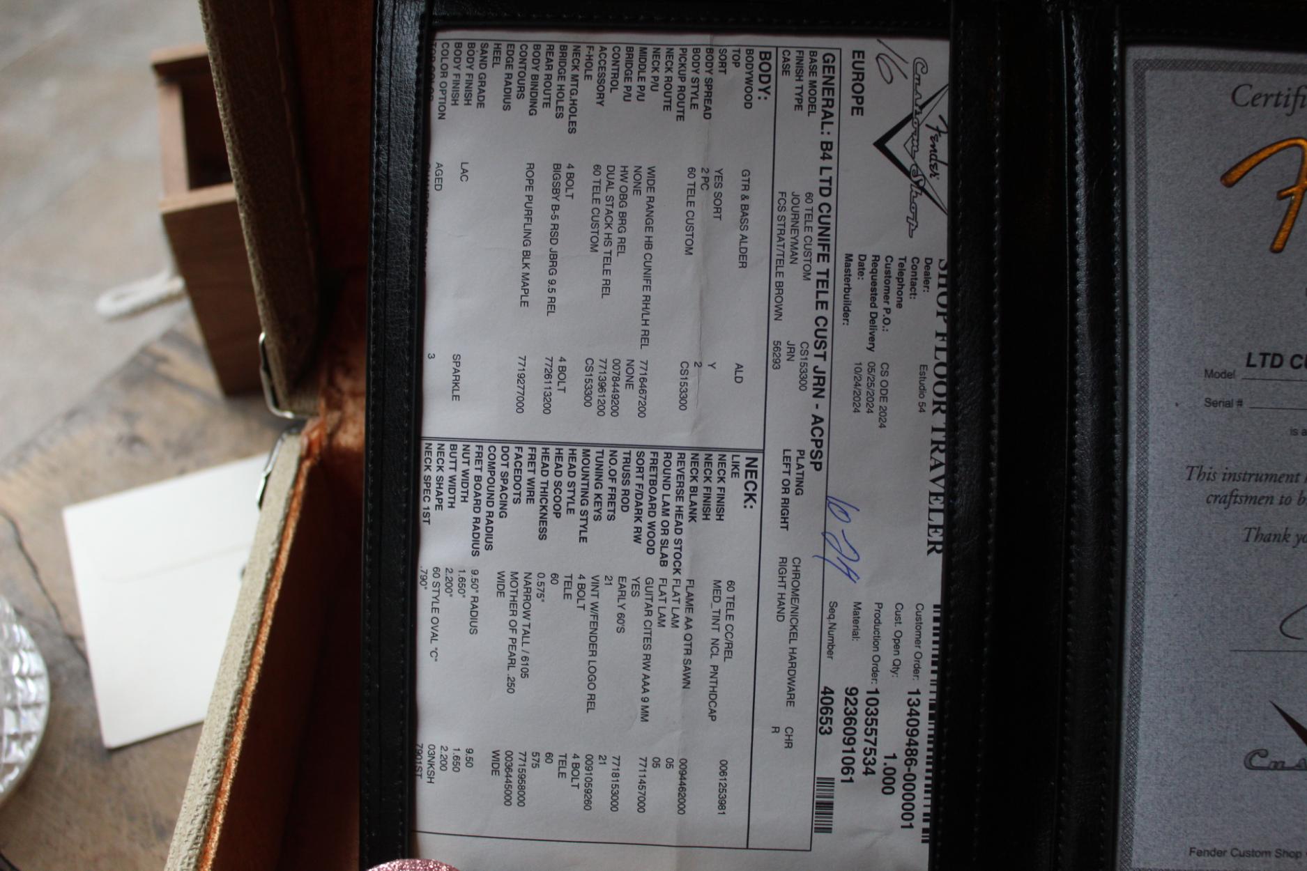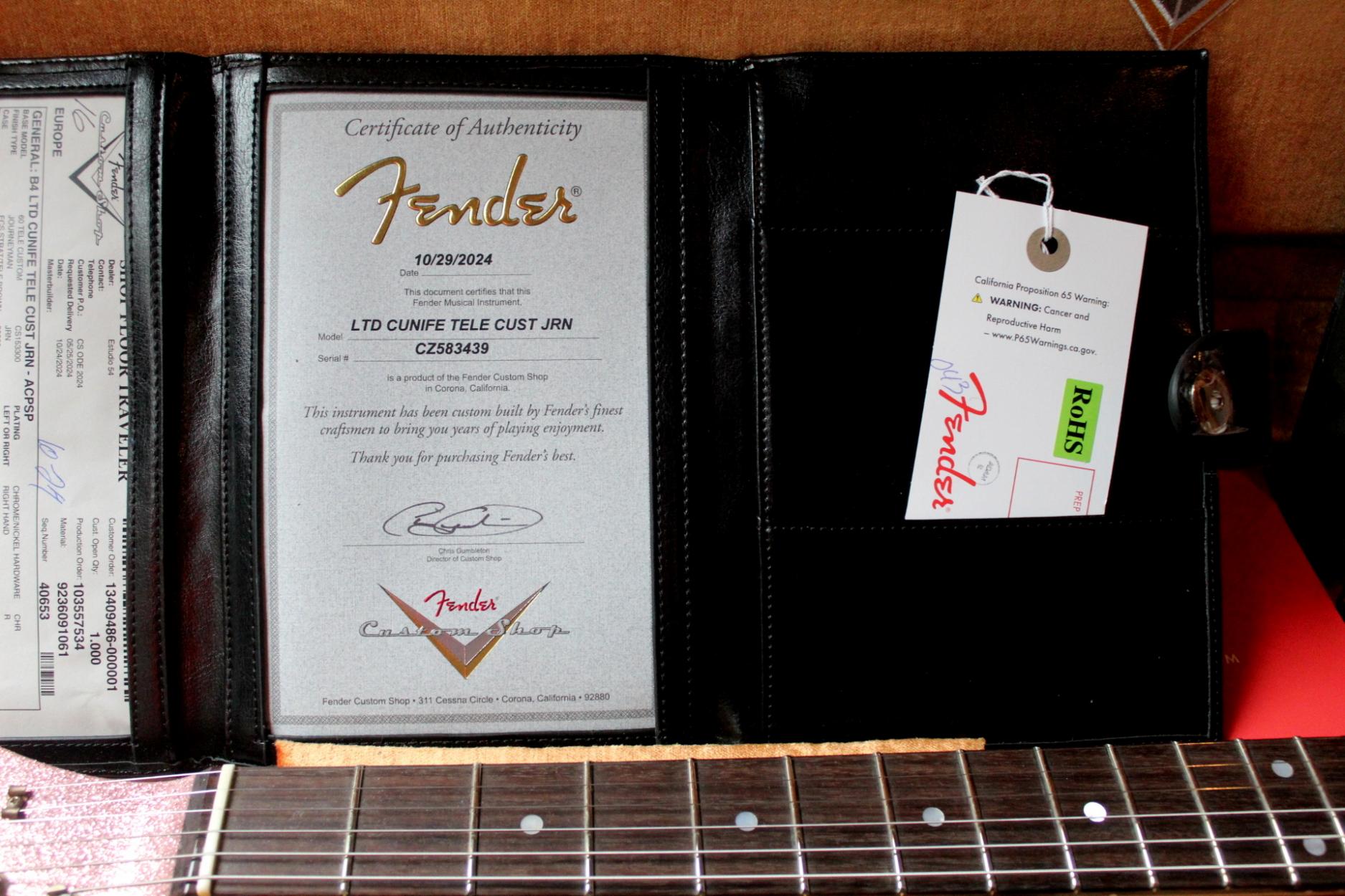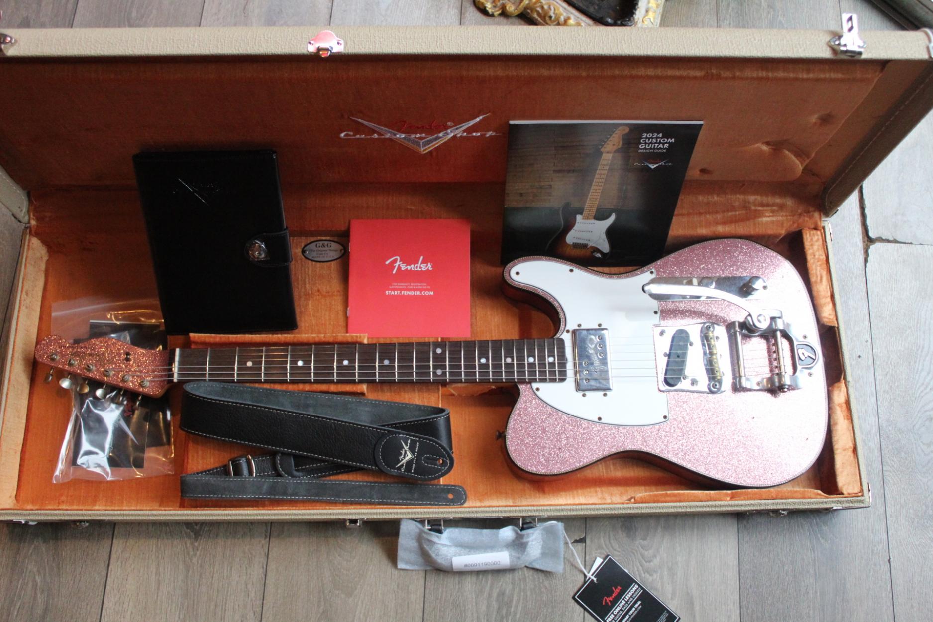3, 79 KG New for 2024, the Fender Custom Shop introduces the Limited Edition CuNiFe Tele® Custom Journeyman Relic®, with a two-piece select alder body with black binding and rope purfling for a stunning Tele® dressed to the nines. Three gorgeous Journeyman Relic® sparkle finishes and a pair of dynamic pickups (CuNiFe Wide Range Humbucker in the neck position and Custom Shop hand-wound Original Blackguard pickup in the bridge position) bring this model into the spotlight. Other premium features include a quartersawn 2A flame maple neck with '60-style Oval "C" back-shape, matching painted headcap, flat-lam rosewood fingerboard, 9.5" radius, 21 narrow tall (6105) frets, Dual Stack HS Tele wiring, 3-way switch, 3-ply parchment pickguard, Bigsby® B5 Vibrato tailpiece with RSD J-Bridge, vintage-style tuning machines, bone nut, wing string tree, deluxe hardshell case, strap and certificate of