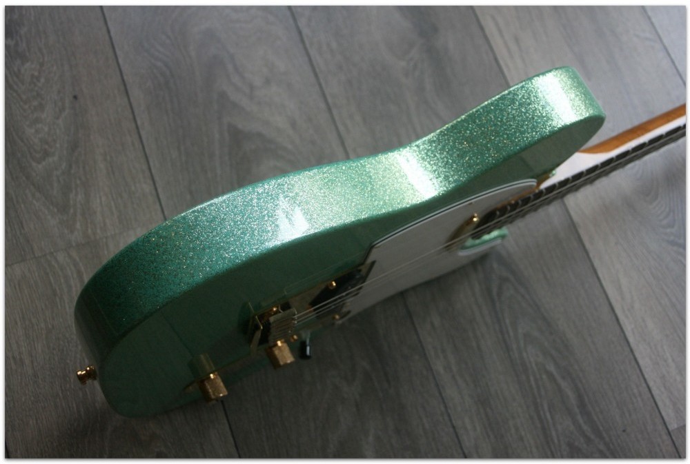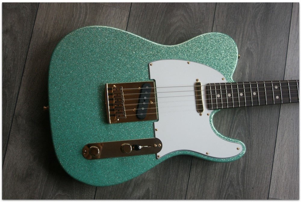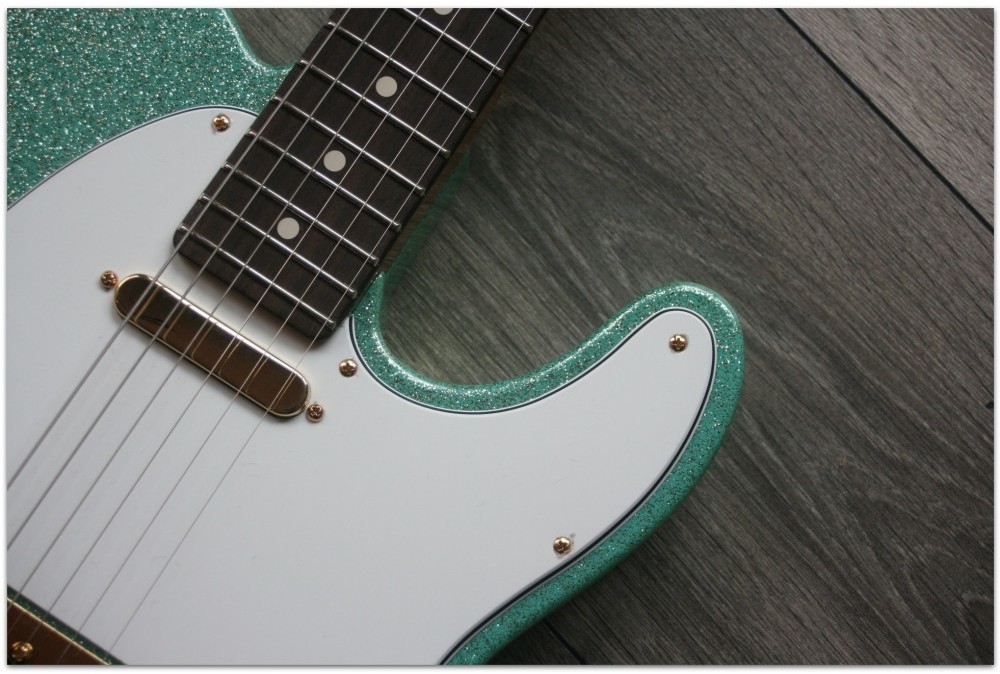 The shimmering Seafoam Green sparkle finish will be sure to catch the