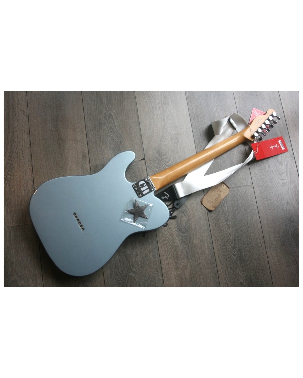 Telecaster in hand, Chrissie Hynde formed The Pretenders in 1979 and quickly established the band as a rock and roll powerhouse. Chrissie’s churning Tele rhythms have been the heartbeat of the band’s rugged sound from the very beginning. The Chrissie Hynde Telecaster features an alder body finished in Faded Ice Blue Metallic Road Worn® lacquer, a custom mid-‘60s “C”-shaped maple neck with a 7.25” radius fingerboard - exactly matching Chrissie’s original, vintage-output Chrissie Hynde Tele pickups and a chrome mirror pickguard—all matching the unmistakable look and feel of Hynde’s treasured ’65 model. FEATURES Alder body in Faded Ice Blue Metallic Road Worn™ finish Custom Mid-‘60s ”C”-Shaped Maple Neck with 7.25” Radius Rosewood fingerboard Custom Chrissie Hynde Single-Coil Pickups Chrome Mirror Pickguard Fender Vintage-Style 6-Saddle Tele Bridge Road Worn® Hardware.