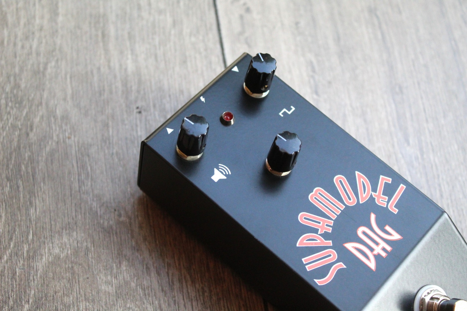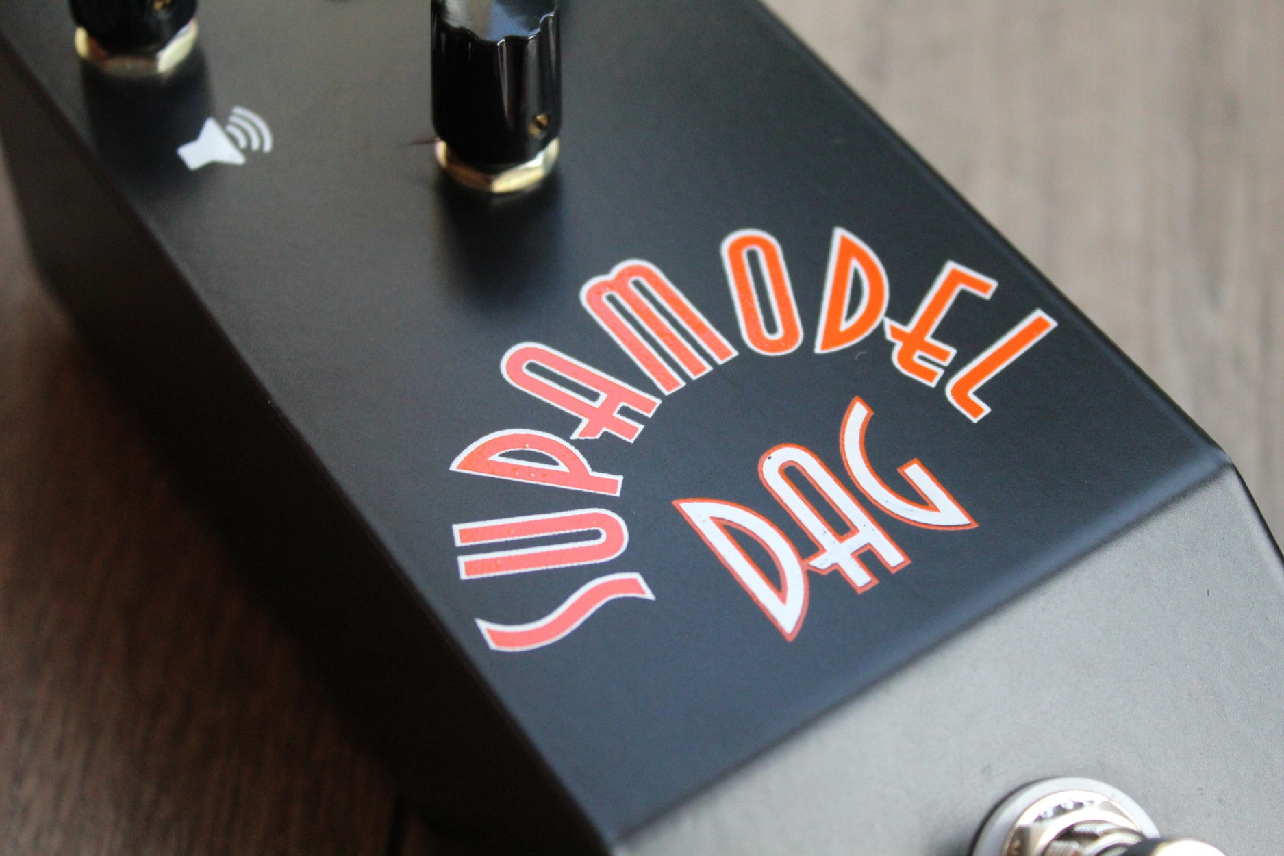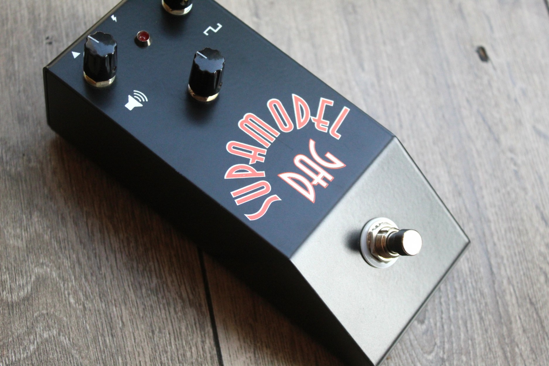 Supamodel MKII SUPAMODEL IMG Classic Fuzz tones The second iteration of the Supamodel. Supamodel features: Powered by three metal can silicon transistors Volume control. Gain control. Tone Control. 1.5mm custom steel enclosure. Point to point hand wired on stripboard Powered by 9V DC supply only. True bypass switch. Create cutting classic rock tones,combining the gain knob with the tone knob lets you dial in lots of fuzz tones and adapt the Supamodel to different guitars and amps. The Supamodel responds also to your guitar volume, adjust the gain on the fly. Louder than any vintage germanium fuzz it excels at riffing rythm and soloing. Place your Supamodel first in your signal chain or after truebypass pedals.