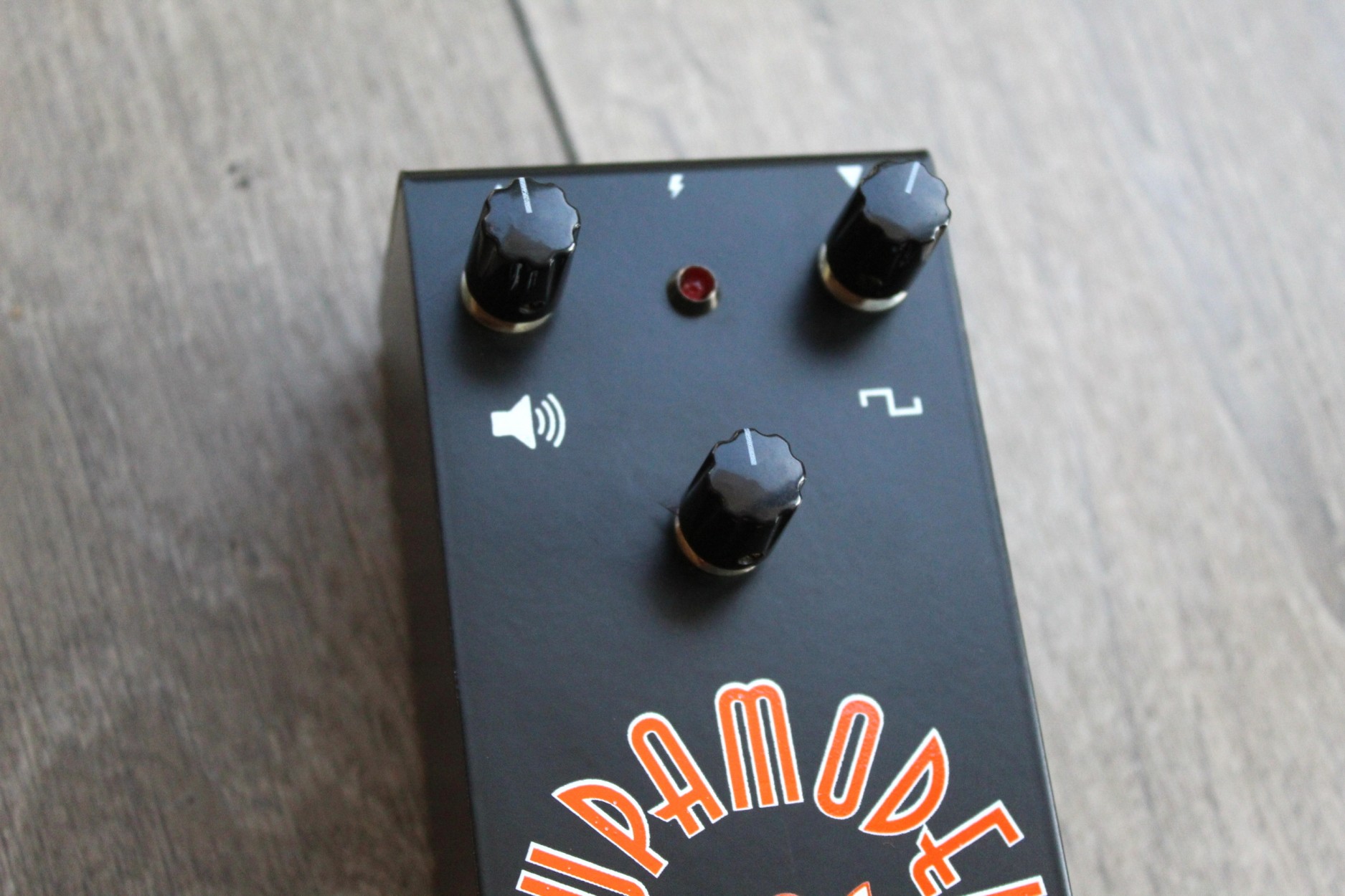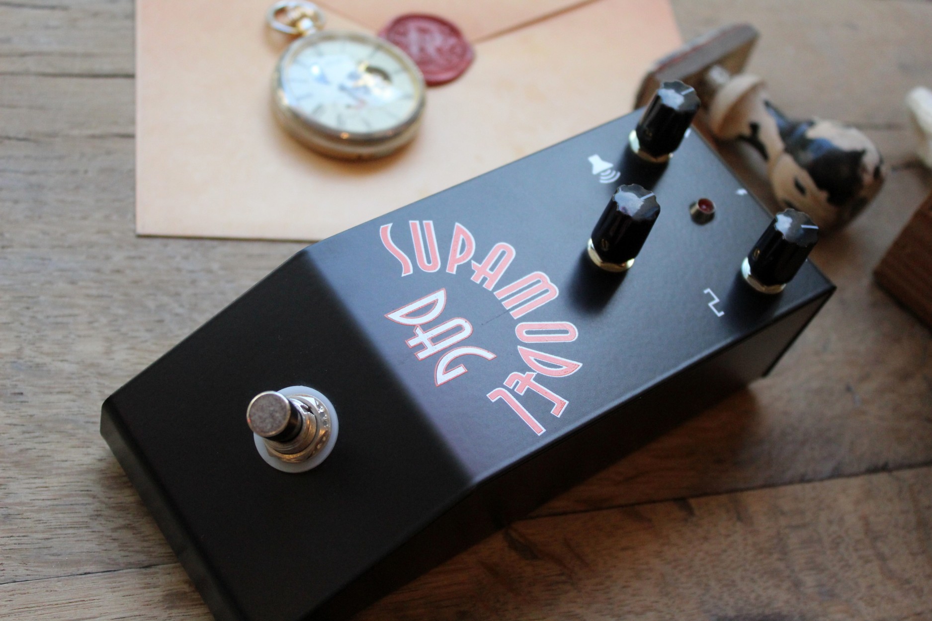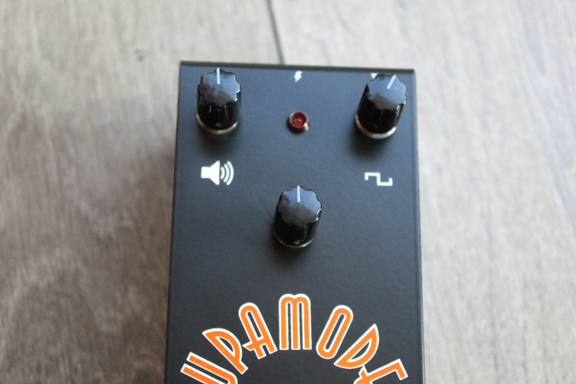 Supamodel MKII SUPAMODEL IMG Classic Fuzz tones The second iteration of the Supamodel. Supamodel features: Powered by three metal can silicon transistors Volume control. Gain control. Tone Control. 1.5mm custom steel enclosure. Point to point hand wired on stripboard Powered by 9V DC supply only. True bypass switch. Create cutting classic rock tones,combining the gain knob with the tone knob lets you dial in lots of fuzz tones and adapt the Supamodel to different guitars and amps. The Supamodel responds also to your guitar volume, adjust the gain on the fly. Louder than any vintage germanium fuzz it excels at riffing rythm and soloing. Place your Supamodel first in your signal chain or after truebypass pedals.