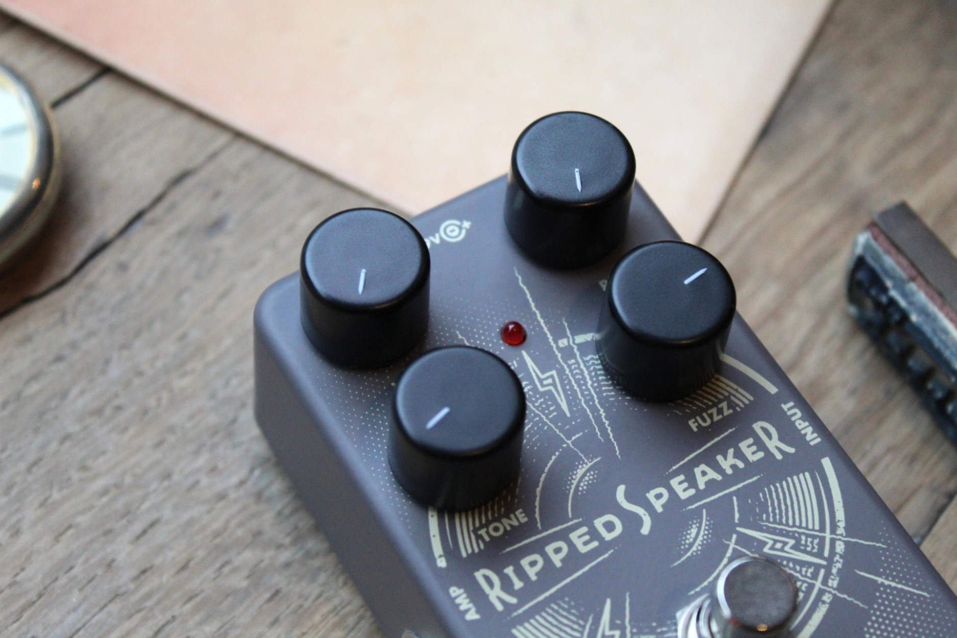 The Ripped Speaker is a modern fuzz with old school roots and pays homage to one of the ways that early, distorted guitar and bass sounds were made. At low fuzz settings the pedal emulates the lo-fi distortion sounds of yesteryear, the kinds of sounds created by a razor blade applied to a speaker cone, a loose tube or a faulty channel on a recording console. When you crank the fuzz up the sound is transformed. It’s modern and monumental with a searing, fully saturated, fuzz tone.