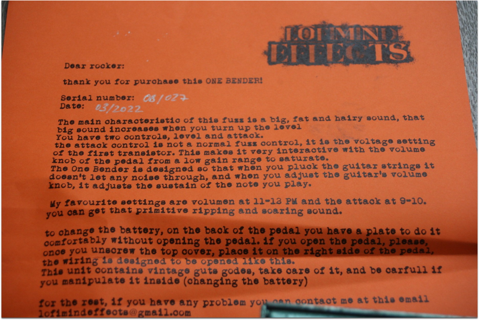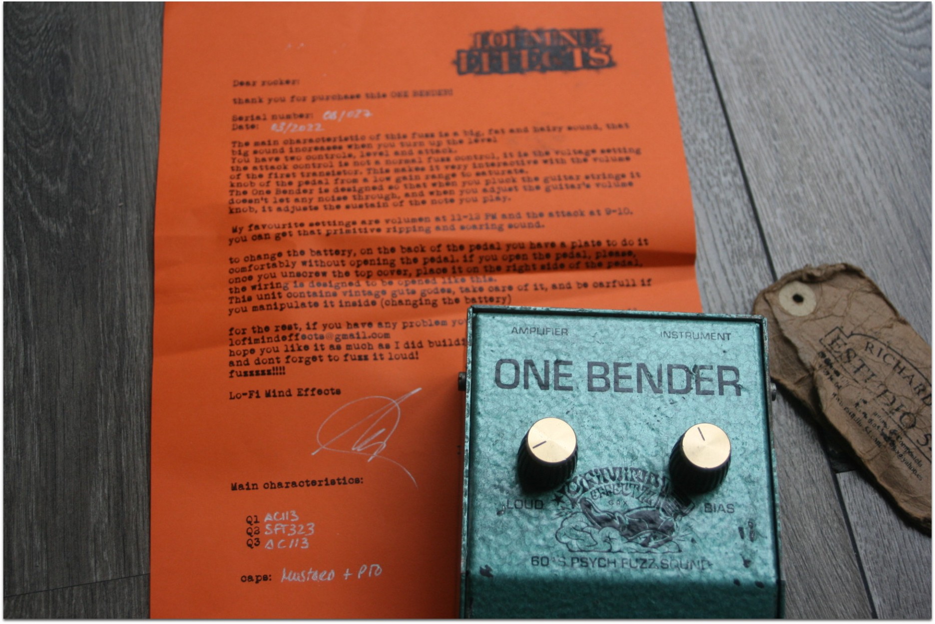ONE ONE ONE YOU ARE THE ONE THE ONE BENDER, is a unique take between the Zonk Machine and the MKI. The sound its crispy and gated, perfect for suit in vintage sounds and in modern gain bands! It includes LOUD and BIAS controls, the sound is primitive, with great accent on the blow of the pick, dirty twisted and with a lot of gain, that is to say, it is the bastard brother of the original MK1 of 1965.