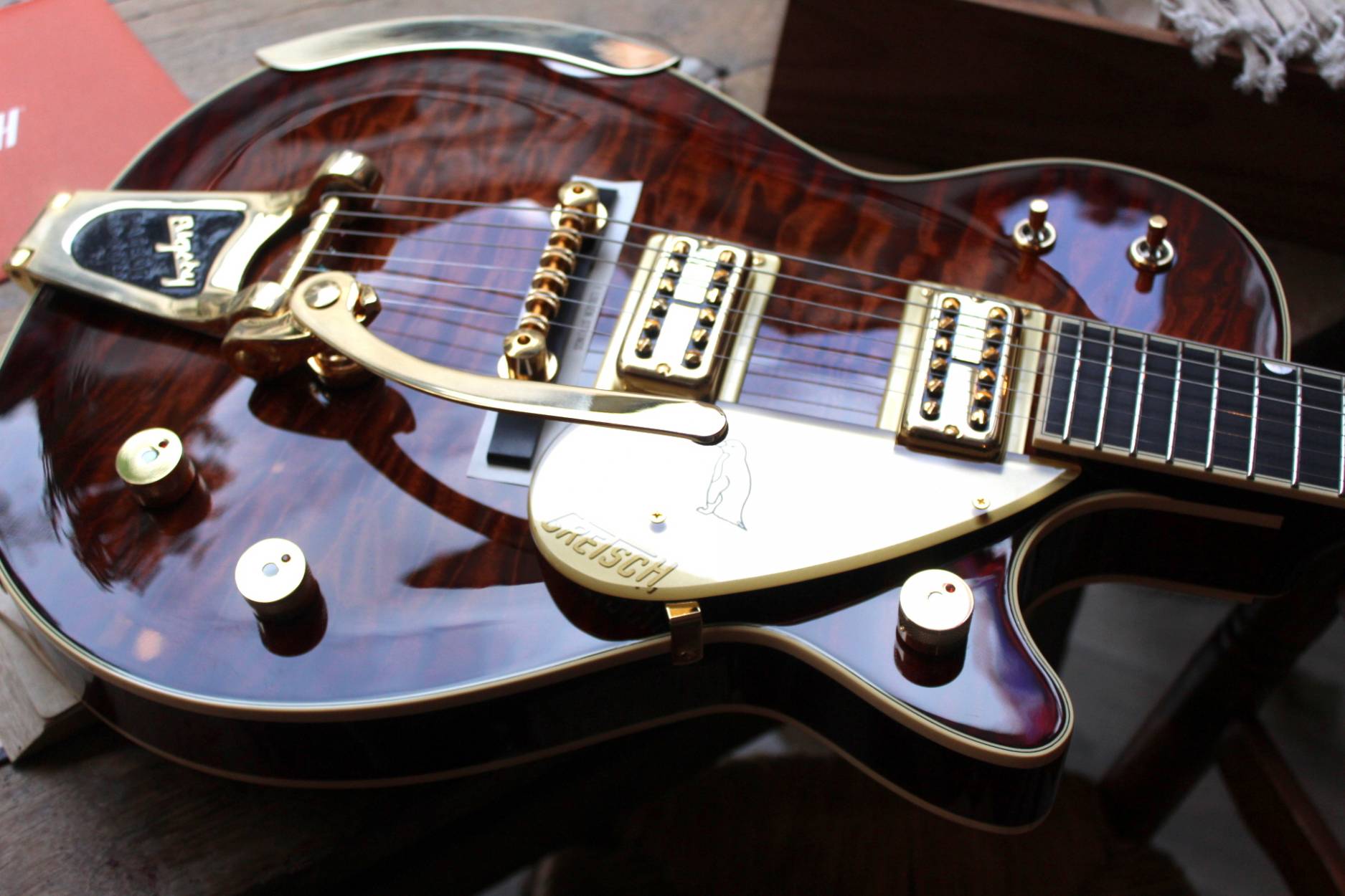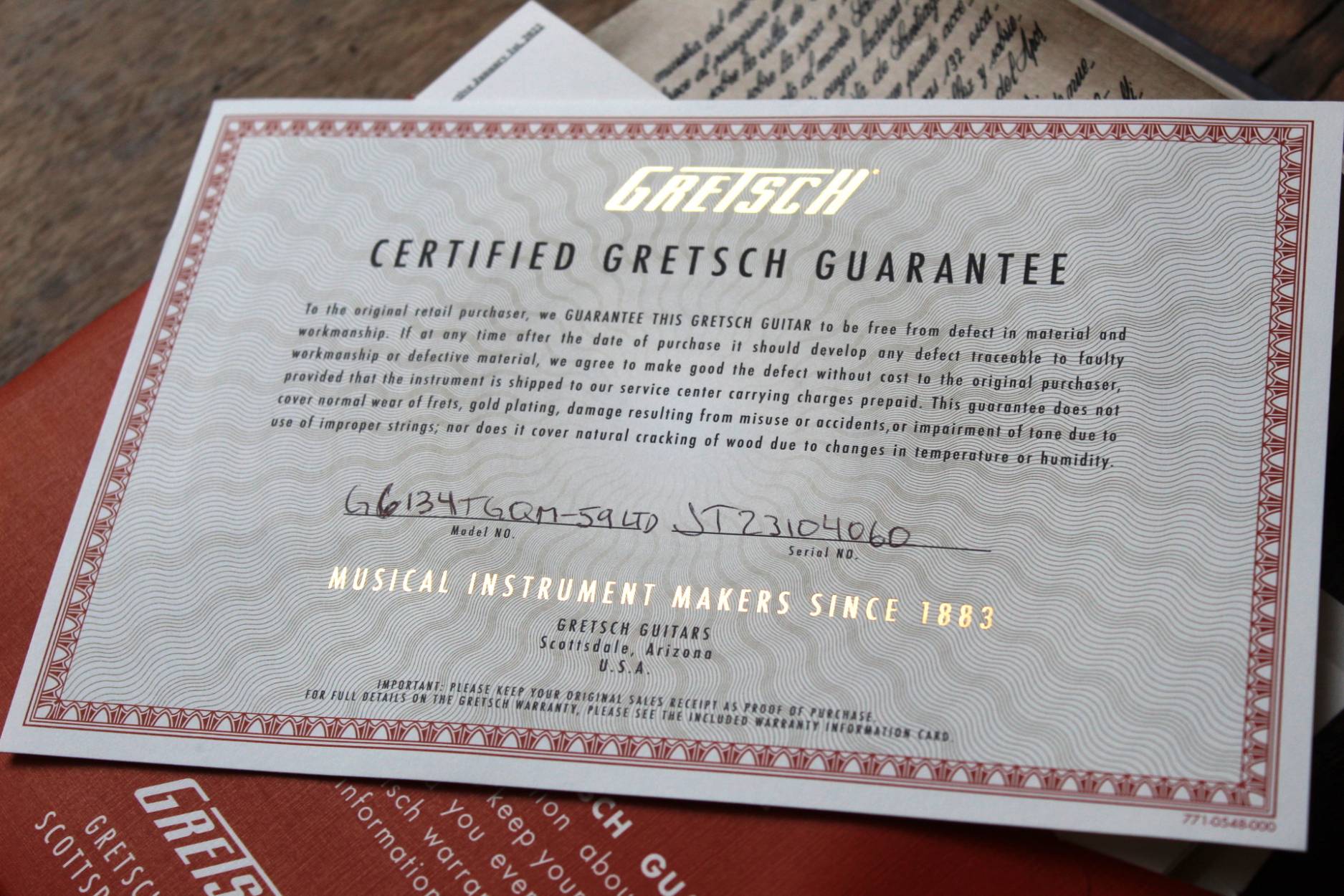 LIMITED EDITION, ONLY 40 Pieces for EMEA (EUROPA, MIDDLE EAST, AFRICA) 4, 04 KG PROFESSIONAL COLLECTION LIMITED EDITION QUILT CLASSICS Gretsch Quilt Classics are stylish renditions of classic vintage models, reborn with stunning highly figured quilt maple. A sophisticated rendition of the original masterpiece, the G6134TQM-59 Limited Quilt Classic Penguin™ combines opulent aesthetics with period-accurate features and appointments from the golden age of electric guitars. Satisfying eyes and ears with its golden tones and gleaming looks, this rare bird comes alive in the player’s hands, singing with its distinctive voice at every strum.