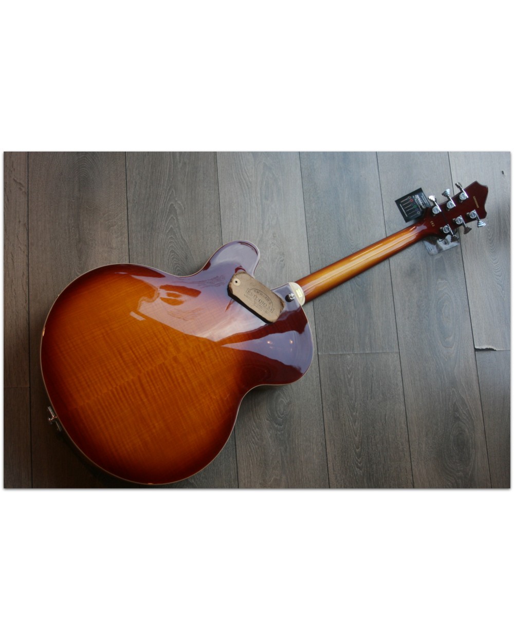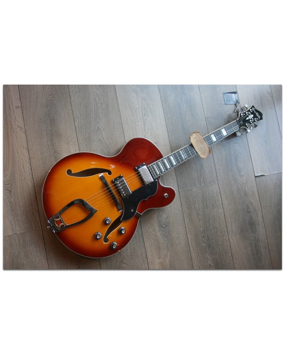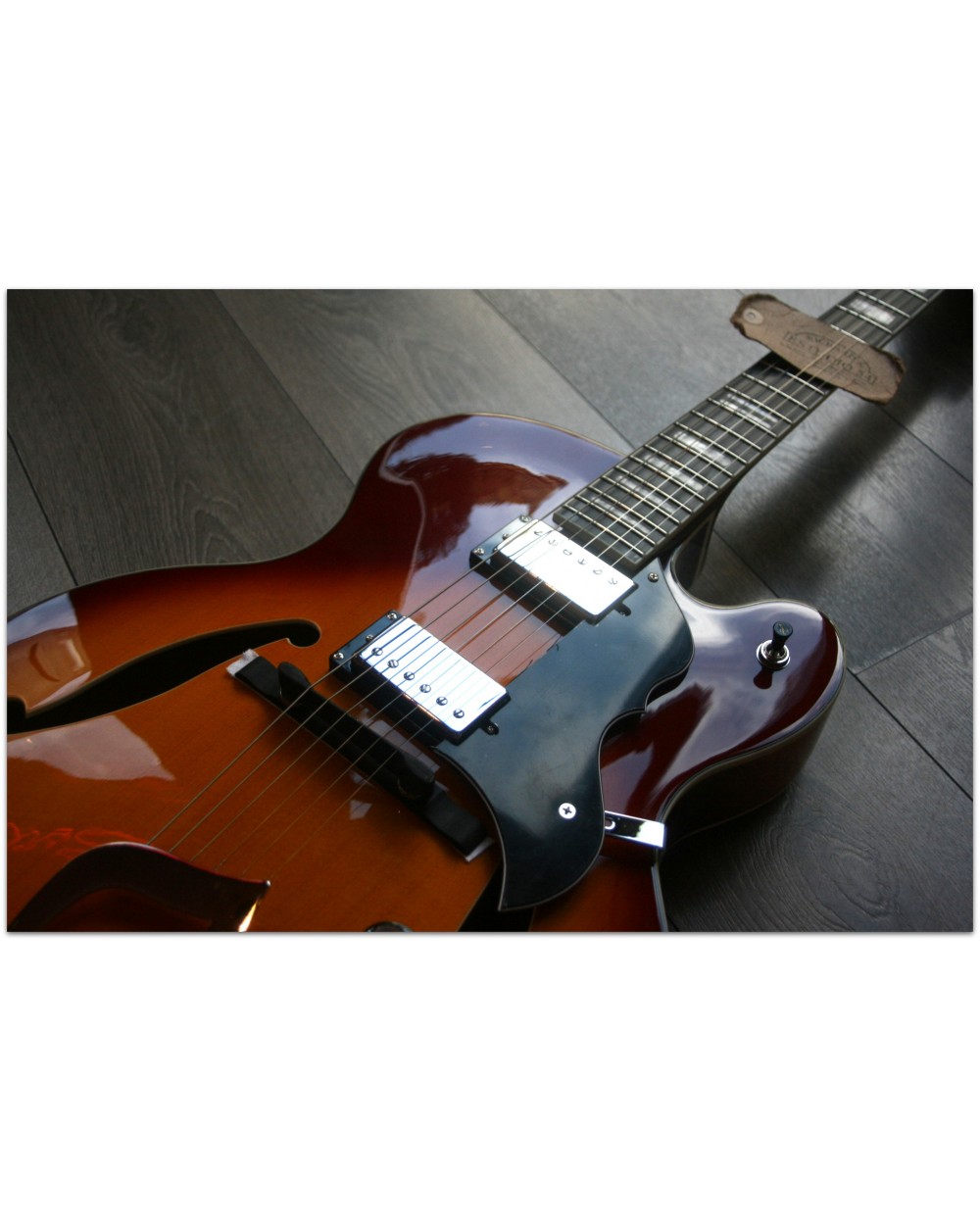 Hagstrom HJ800 Jimmy D’Aquisto’s masterpiece for Hagstrom. Without a doubt, the master’s genius is expressed throughout this striking hollow-body guitar. From its solid spruce top and neck-body joint at the 16th fret, to its 25-inch (635mm) scale length, Jimmy’s masterful touch is woven into the soul Hagstrom’s HJ800. Hagstrom’s potent Custom 58 AlNiCo humbucking pickups produce a rich, full-bodied jazz tone with formidable attack. It’s up to you to take it on a rock detour into an uncharted sound universe.