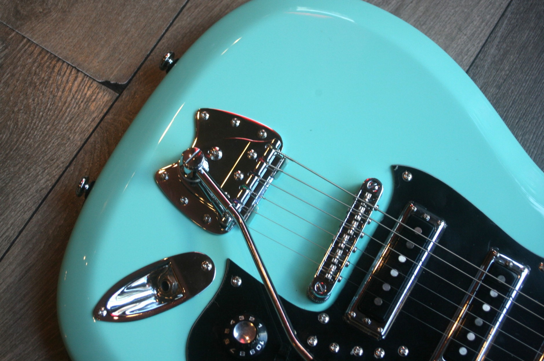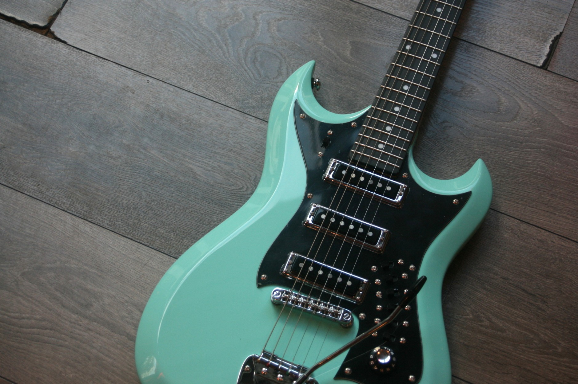 The H-II and H-III were introduced in 1965, so 2015 marks the 50th anniversary of these iconic guitars. Known for their quirky switches and easy playability, they quickly achieved wide popularity. Favorites among punk and grunge bands looking for a hard-rocking individualist statement, H-IIs and H-IIIs have been showing up in the hands of artists such as Aaron North (The Icarus Line, Nine Inch Nails) for years. Many people have been asking for these classics to be re-issued, and we at Hagstrom are happy to comply with lovingly recreated and updated versions of these great classics. Let me out A comfortably profiled Canadian Maple neck is bolted to a hand-selected American Alder body insuring that the original attack and “bite” of the H-II and H-III is maintained. The classic 6-in-line Hagstrom headstock design, used for the first production of H-IIs and H-IIIs, has been slightly updated, and the “Vintage Tremar” has been re-engineered for functional improvements without sacrificing its original appearance. Hagstrom has taken great care in recreating the original pickups, and the new cera mic „C-Spin“ pickups do an excellent job of matching the originals’ sonic glory. Tone-shaping functionality is enhanced by incorporating Hagstrom’s new RC-Circuit into the volume control, which allows for volume reduction without the loss of that high frequency “shimmer”.