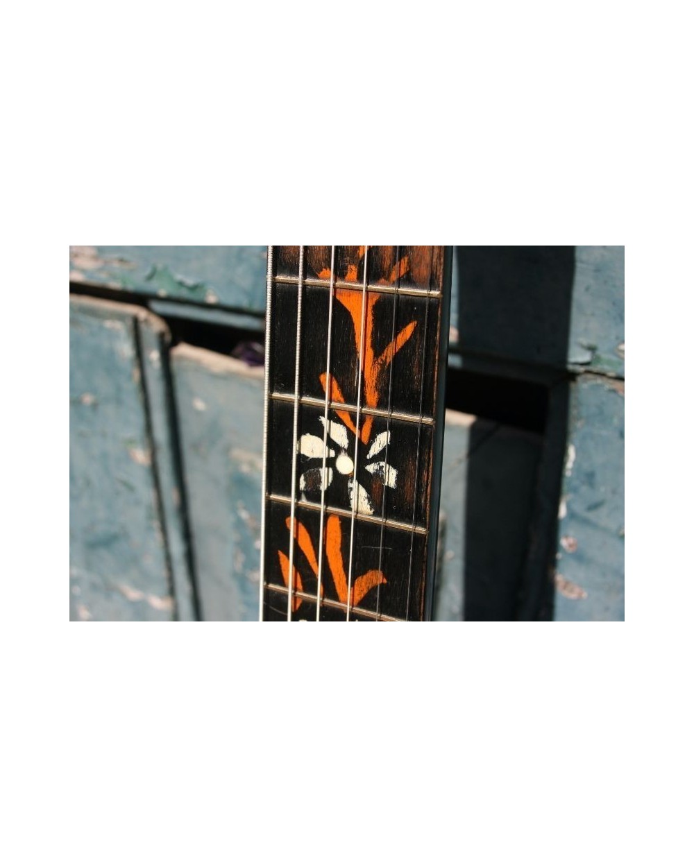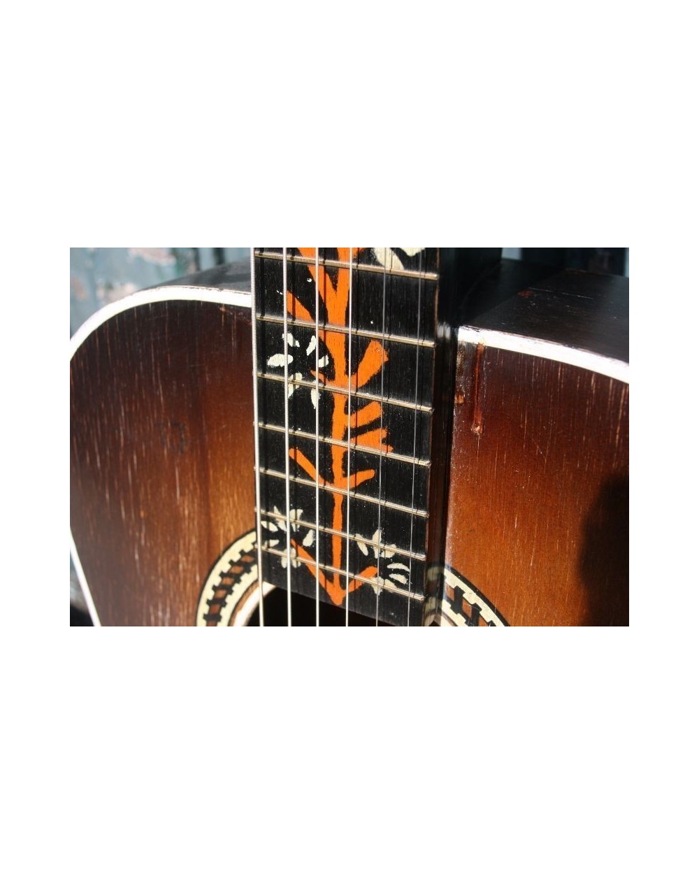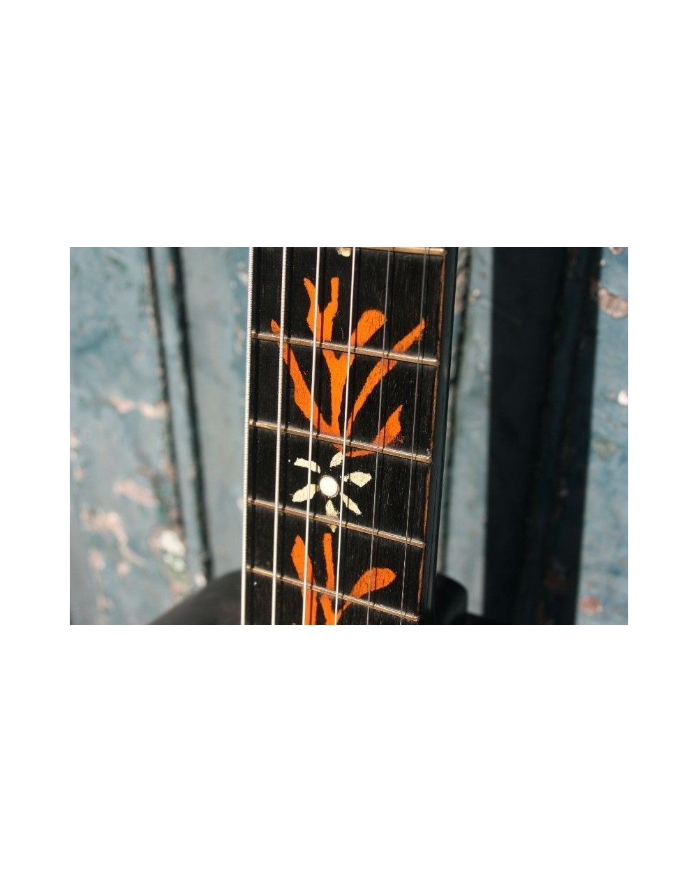 The fretboard markers in in the Centre of the flowers, are bone