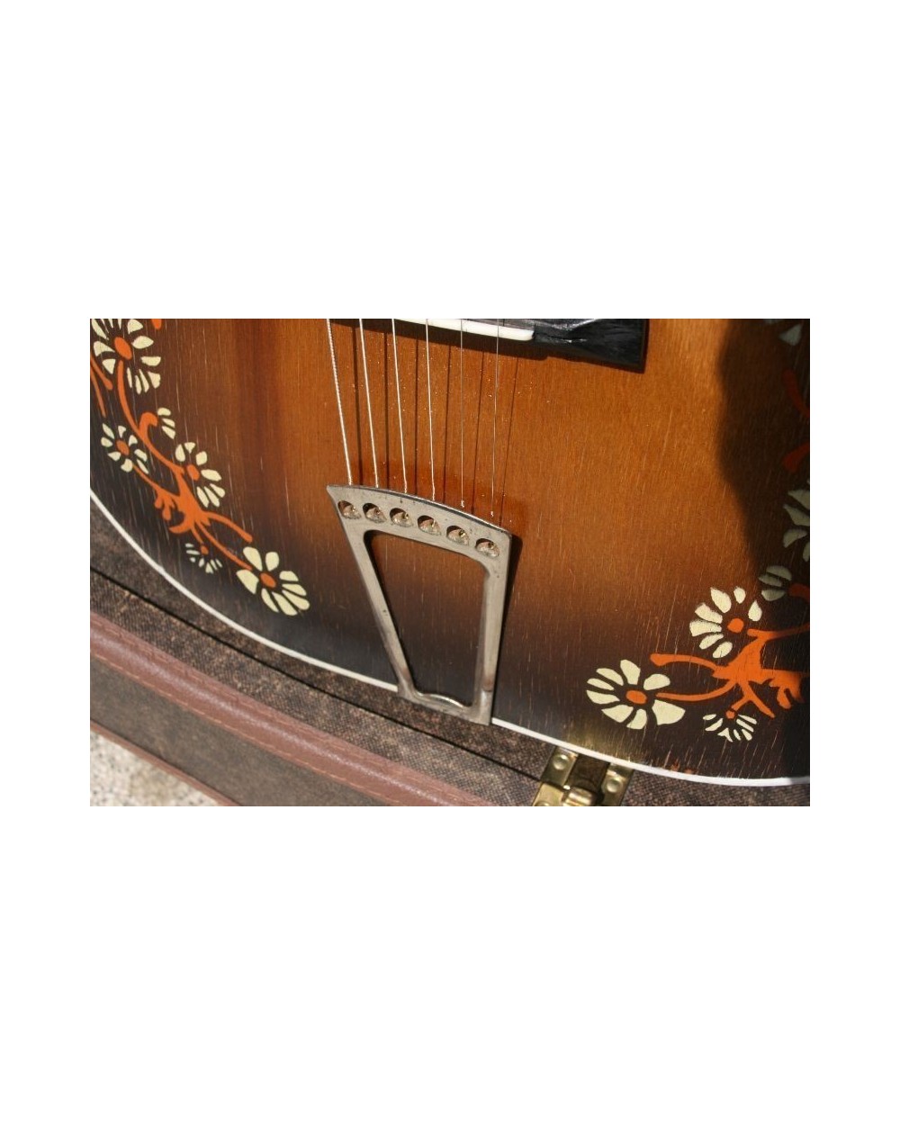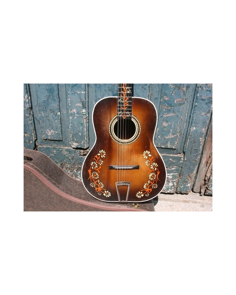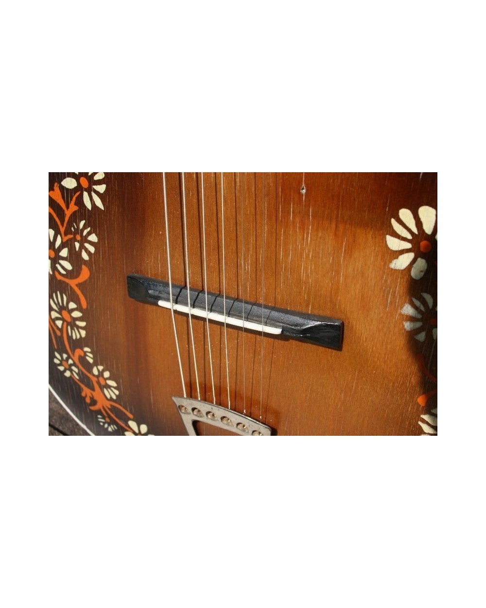 The fretboard markers in in the Centre of the flowers, are bone