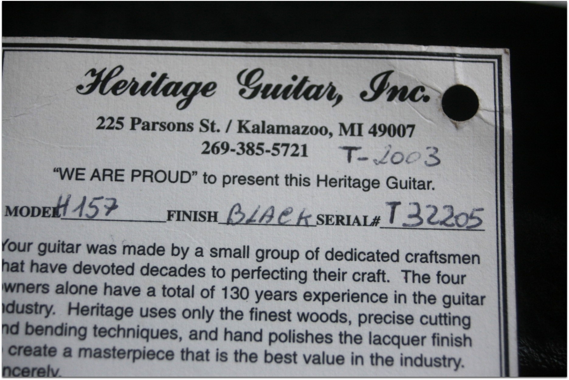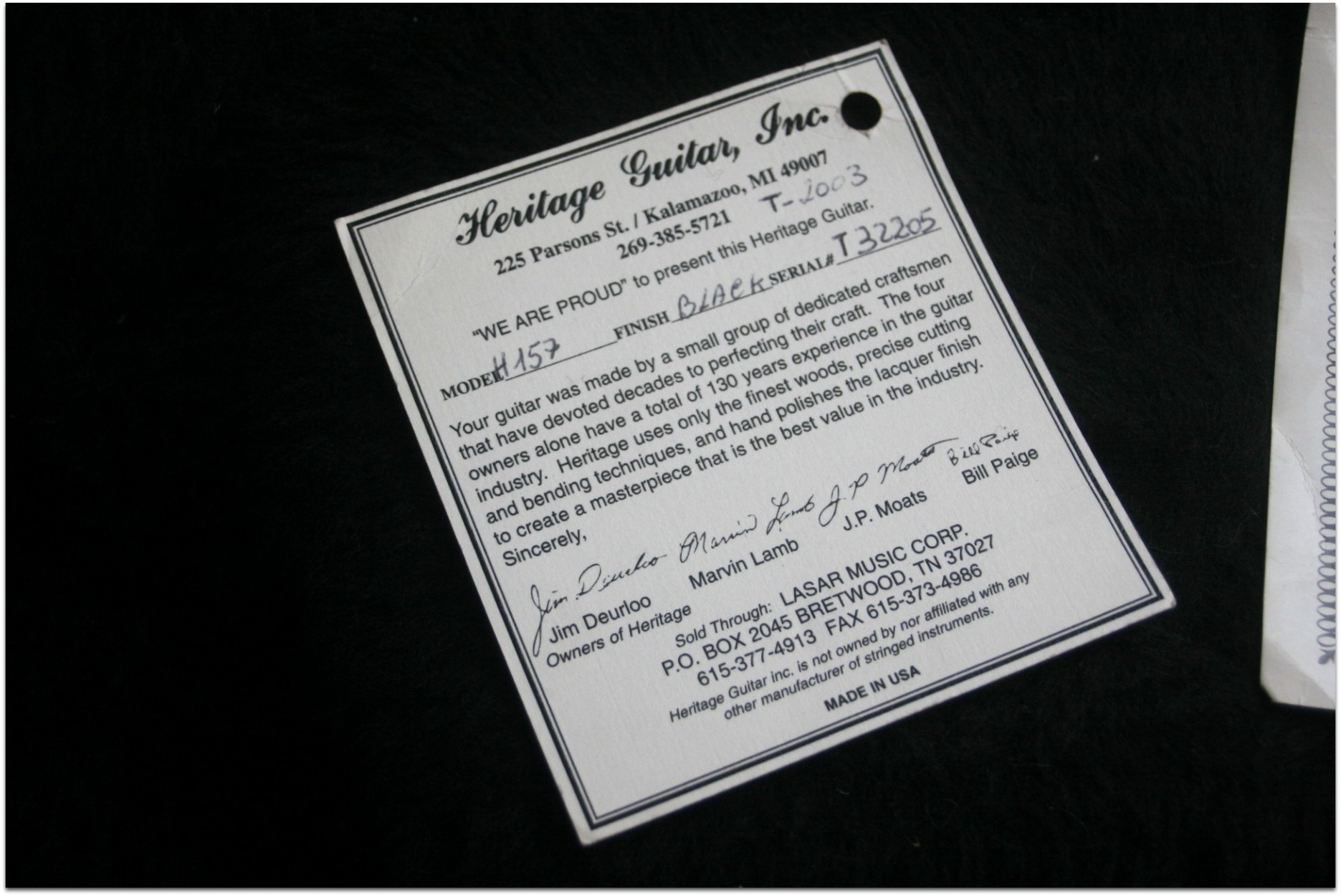 Heritage "The Heritage H157 Les Paul Custom of year 2003, original Hardcase and Papers"