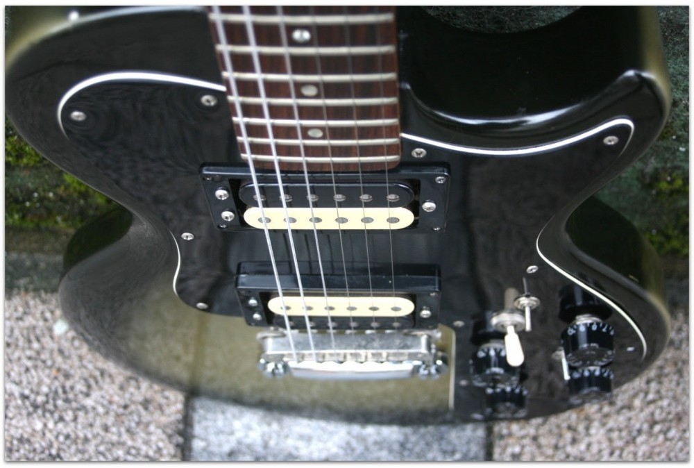 The Standard and Custom models featured the same Dirty Fingers pickups with a coil tap switch. The Custom has a three-piece maple neck and ebony fingerboard. The Custom was available in white finish, as well as ebony.