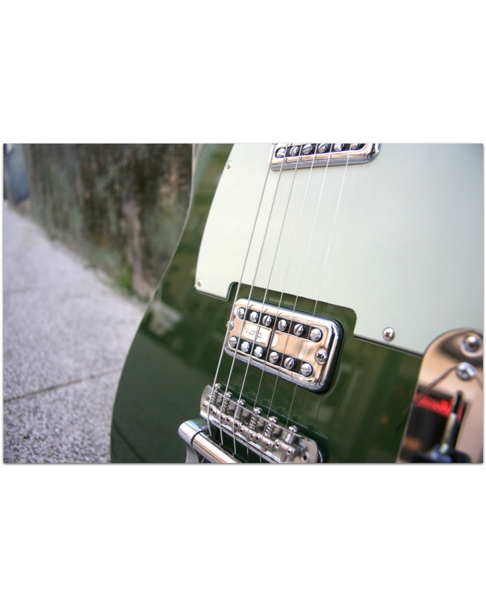 The Fender Custom Shop Double TVJ Telecaster with B-5 Bigsby is one very special solidbody electric. A green lacquer finish graces the top of its bound alder body; the back is black. The overall effect is striking and unique. The moment you wrap your hand around the Double TVJ Tele's fast maple neck and ebony fingerboard, you're at home. Premium electronics (a pair of TV Jones Classics) crank out out the classic chime, growl, and grind you've been craving. Want distinctive tone, amazing looks, and uber-playability? Sweetwater's got your axe: the Fender Custom Shop Double TVJ Telecaster with B-5 Bigsby.