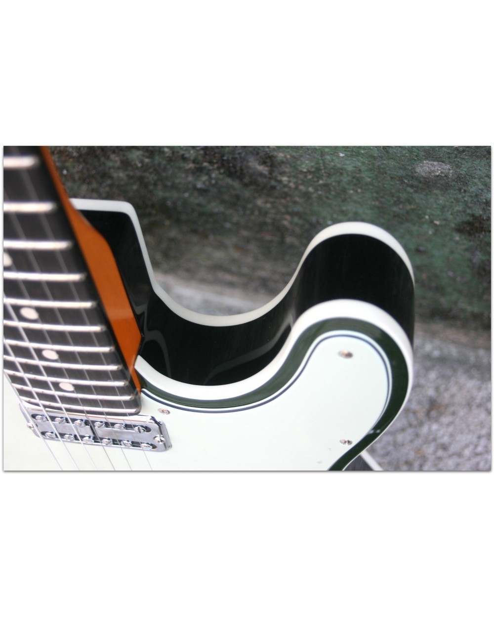 - Lightweight, top-bound alder body with unique dual-tone finish