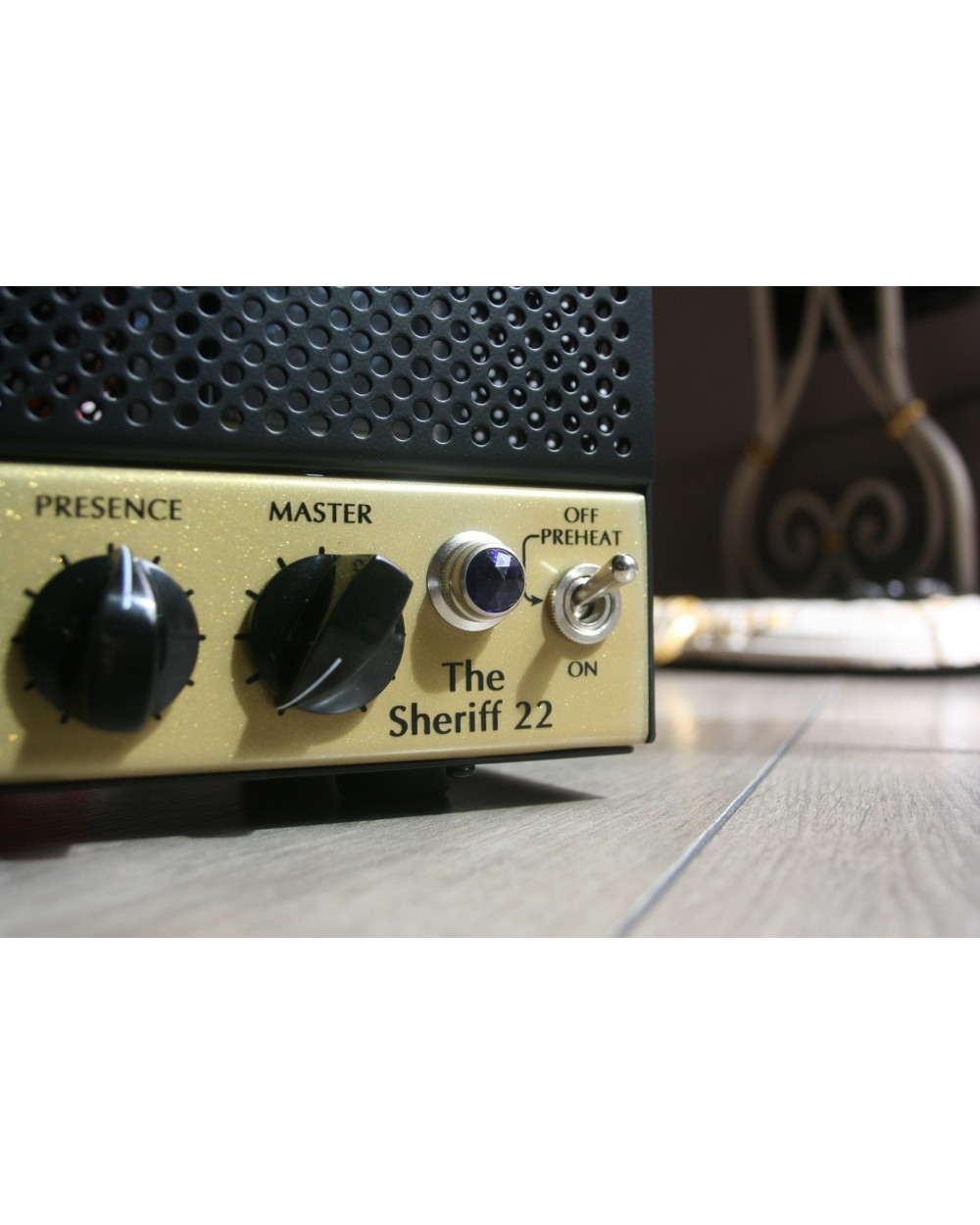 This dual-channel, EL84-powered amp is all about classic British overdrive sounds, housed in the same light and portable metal chassis as our award-winning V30 and V40 heads. Blues-rock players will love the mid-60s-style feel and response of Input/Volume I, with enough gain to sing but also clean up well off the guitar. Input/Volume II takes off into hot-rodded 70s and 80s territory and beyond, retaining that classic British 'plexi' sound all the way. A separate speaker out gives you bedroom level cranked tone at just 0.3 watts. The Sheriff 22 is for rock players who want to travel small but go over big!