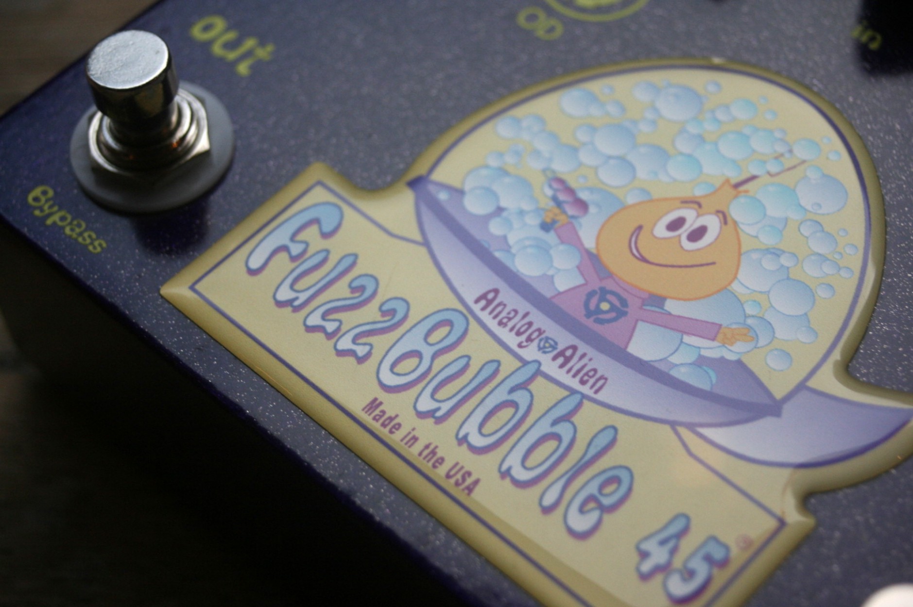 FuzzBubble-45 Pedal: • All-analog overdrive and fuzz pedal for electric guitar • Separate OD and Fuzz sections give you two tonally-unique circuits to tweak • Input level control gives you enhanced ability to fine-tune your tone • Comes with collector’s cooler bag and bottle of Analog Alien bubble fluid • Runs on 9V battery (included) or 9V power supply (sold separately) Iconic tone in a convenient stompbox. This pedal was designed to serve up those same classic overdrive and fuzz effects in a convenient stompbox. Hit the switch on the overdrive side, and you’re treated to vintage-style grit with plenty of bite. You can control it via your guitar’s volume knob, just like you can with a cranked-up tube amp. Go to the fuzz side and dial up everything – from subtle chunk to thick slabs of sustaining, buzzing bliss.