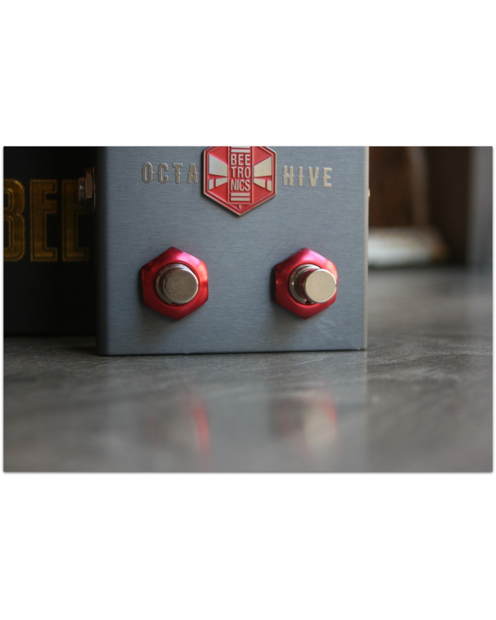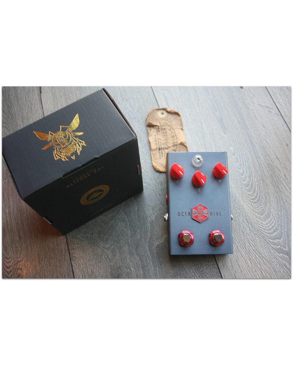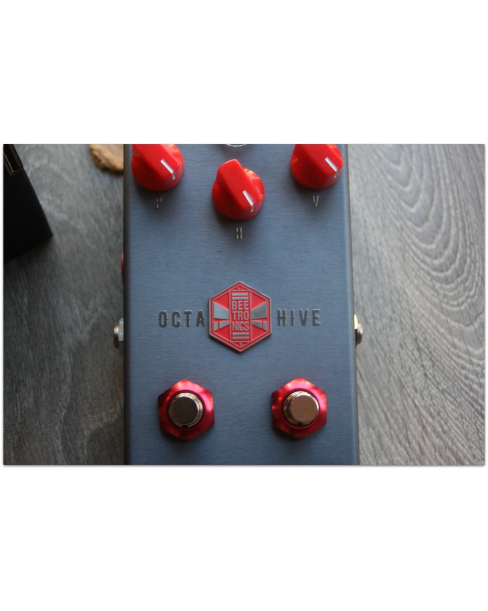 The Octahive. The OctaHive is a super high gain fuzz with a well pronounced high pitch octave. The octave mode can be turned on/off by the side toggle switch giving you a huge tonal range.
