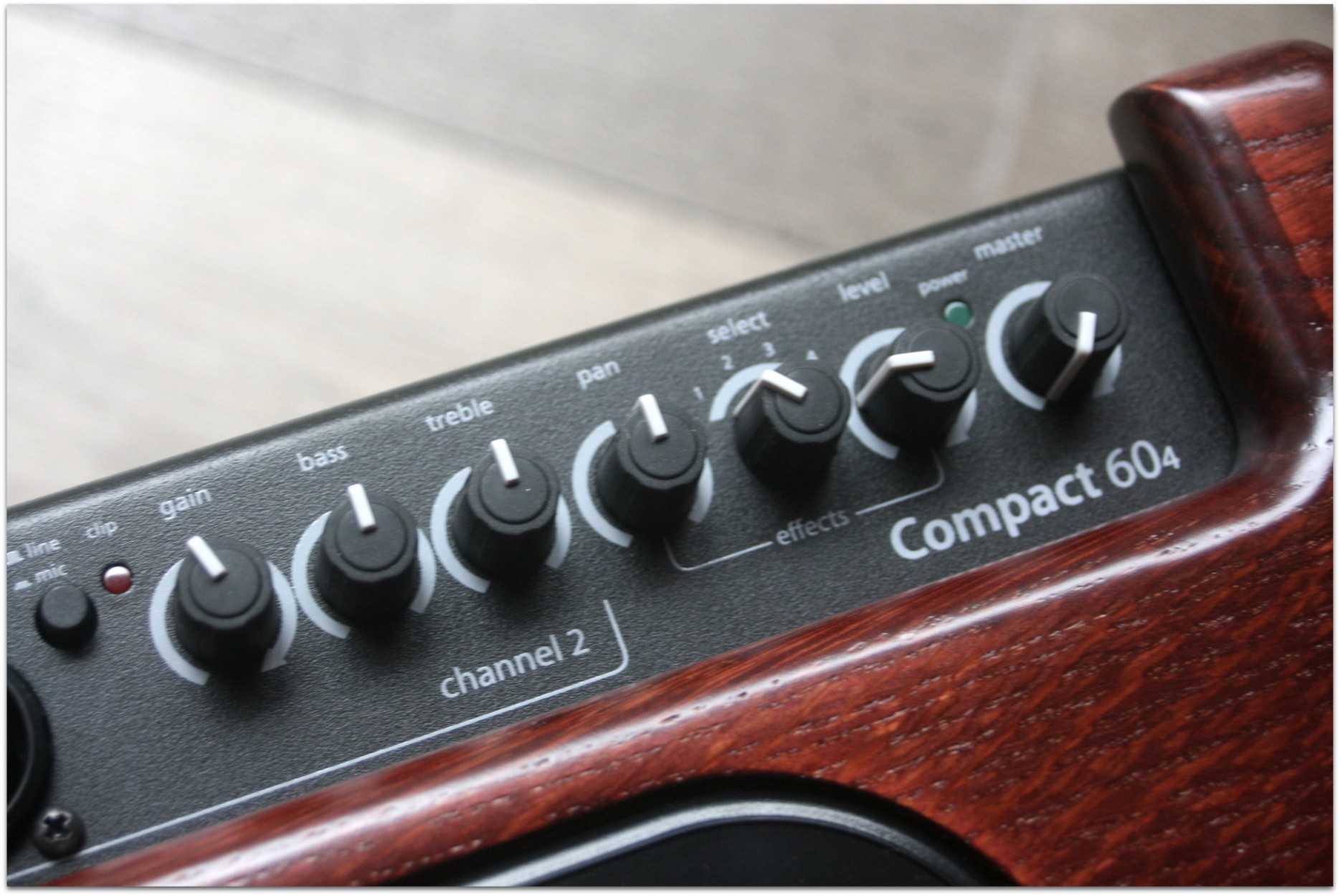 The AER Compact 60 rev.4. Small size but powerful twin-channel acoustic guitar amplifier designed to reproduce the sound quality of your instrument in a natural manner. The electronics are carefully designed to deal with piezoceramic pick-up's, microphones and any sort of line signal and with the dynamic controlled 60 watts power amplifier provide a brillant clear sustaining sound performance throughout all the dynamic range. Used by Robin Nolan, Angelo Debarre, Bireli Lagrene, Romane, Neil Anderson, Dorado Schmitt, The Rosenberg Trio, among many others.