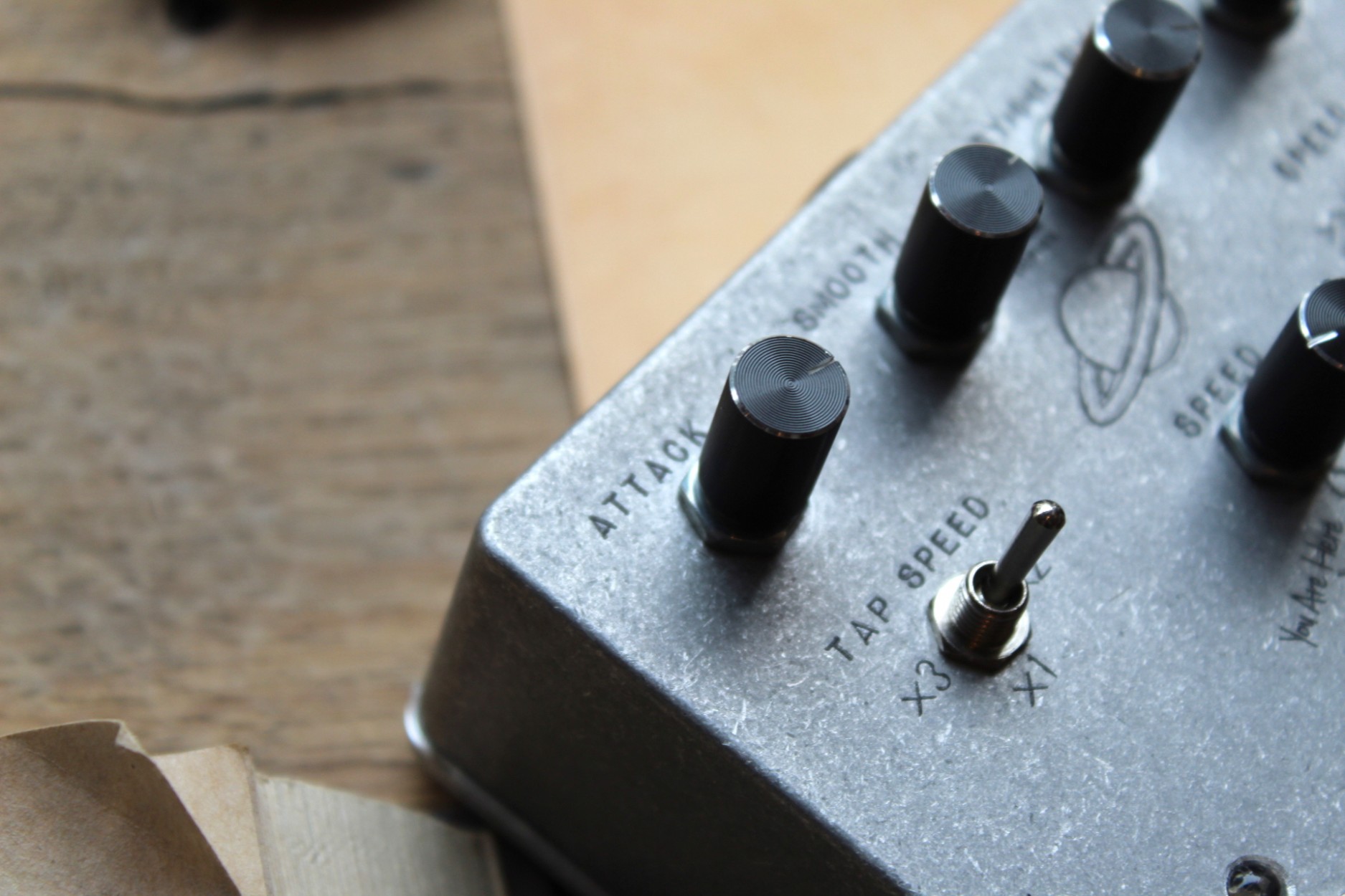 DESCRIPTION Galileo is a full analogue optical tremolo with versatile regulations, tap tempo and modulation controls. The heart of Galileo is an internal analogue oscillator that controls an high quality photodiode producing the tremolo: the activation and de-activation of this match let Galileo’s tremolo effect be very natural without distortion of the input signal. Footswitches: Galileo is provided with two true-bypass footswitches: GO and TAP. With GO footswitch Galileo activate the tremolo effect and the output signal is modulated by the photodiode and the oscillator. When GO is on, a blue led lights on as a feedback. When GO footswitch is OFF the input is bypassed, so that the input signal is directly connected with the output jack. With TAP footswitch it is possible to set the tremolo oscillator period as desidered by pressing TAP. Each TAP trigger set the start/stop of the oscillator period. A minimum of two tap triggers are required in