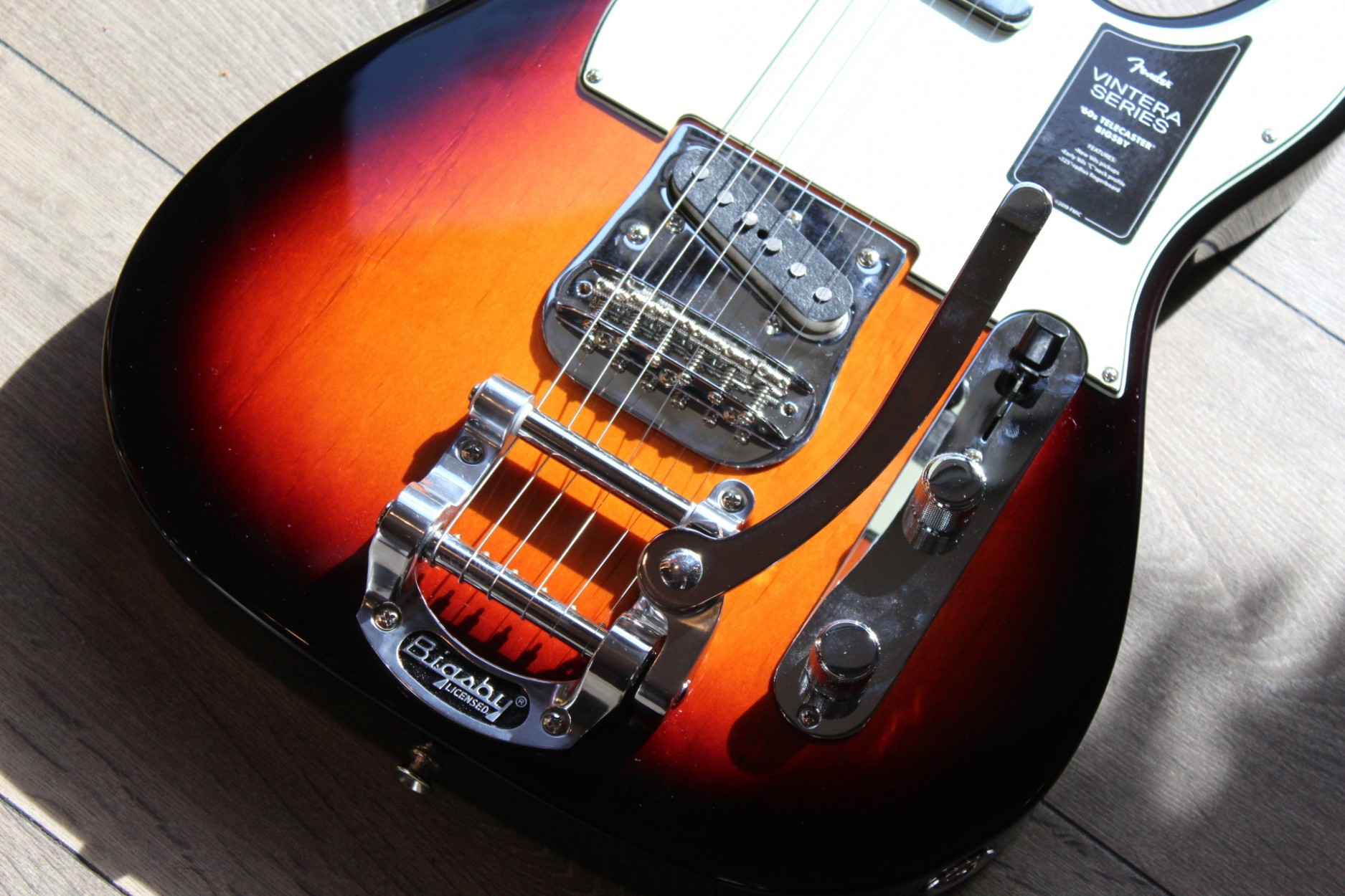 For players who want the style and sound of Fender's golden age, we've created the Vintera 60 Bigsby Telecaster. Packed with the coveted features that defined the decade, including a neck profile, specially designed pickups, and a Bigsby tremolo, the guitar has all the bite and touch that made the Telecaster a legend. For authentic vintage-style tone, we recreated our favorite set of '60s Telecaster pickups. Twangy and articulate, they've got the crunchy, snarling sound that put Fender on the musical map. The thick "early '60s" C-shaped neck has a 7.25”-radius fingerboard with 21 vintage-style frets for a classic playing feel. A Bigsby vibrato allows for all the effects without compromising the twang characteristics of the Tele®, while the vintage-style headstock provides original aesthetics, solid performance, and tuning stability. Other features include vintage-style strap buttons, chrome hardware, and four-bolt neck plate. Includes luxury case. FEATURES Ash or alder body. Two '60s Tele® single-coil pickups. "Early '60s C"-shaped maple neck; 7.25" radius fingerboard with 21 vintage-style frets. Bigsby Tele bridge with three chrome trestles. Includes deluxe case