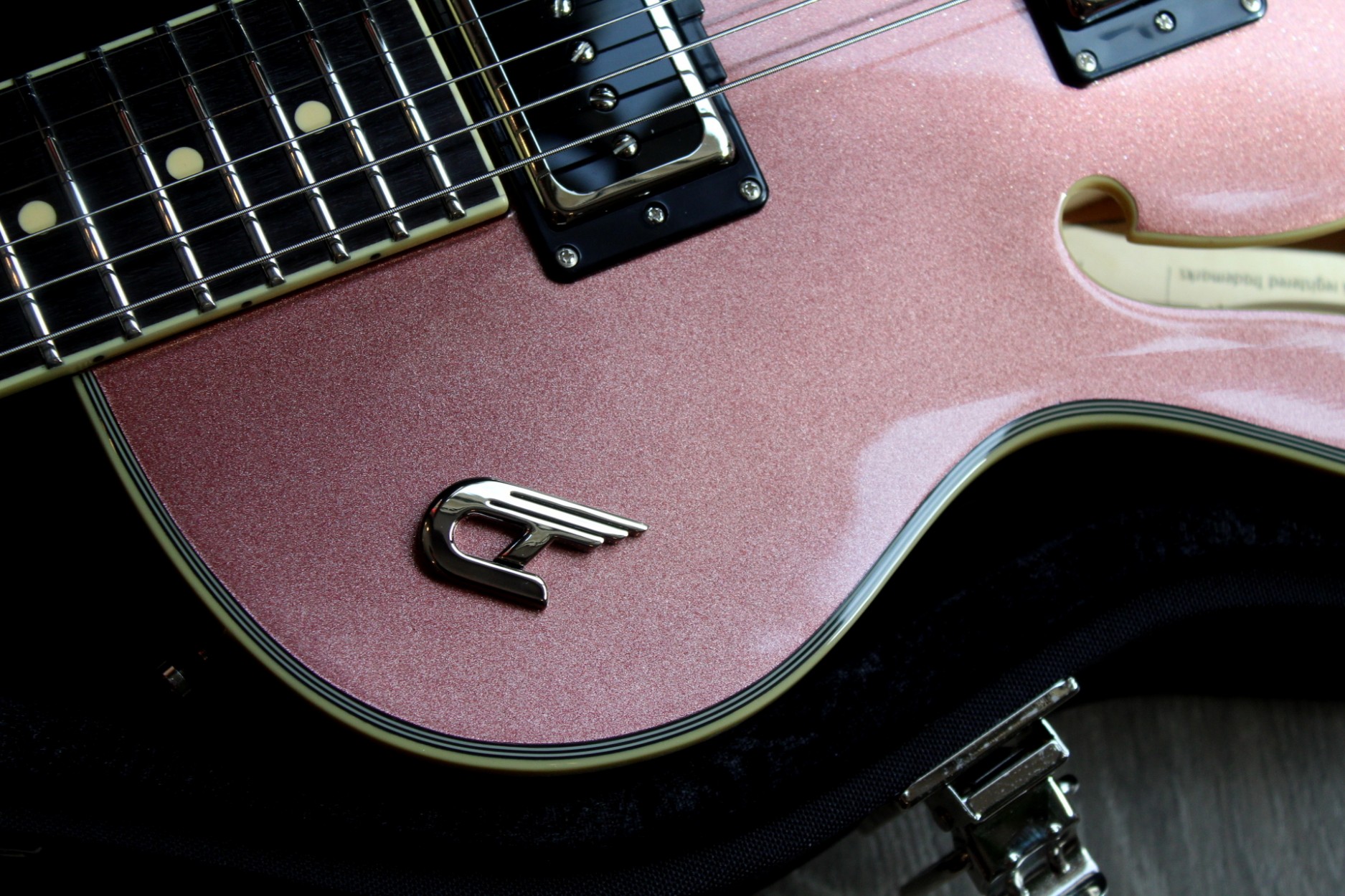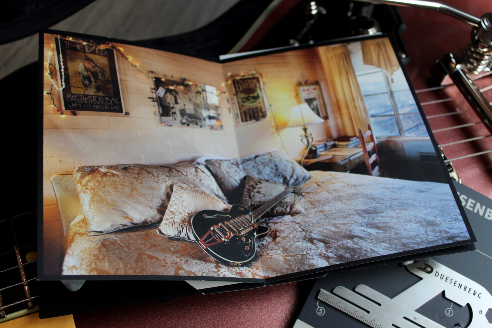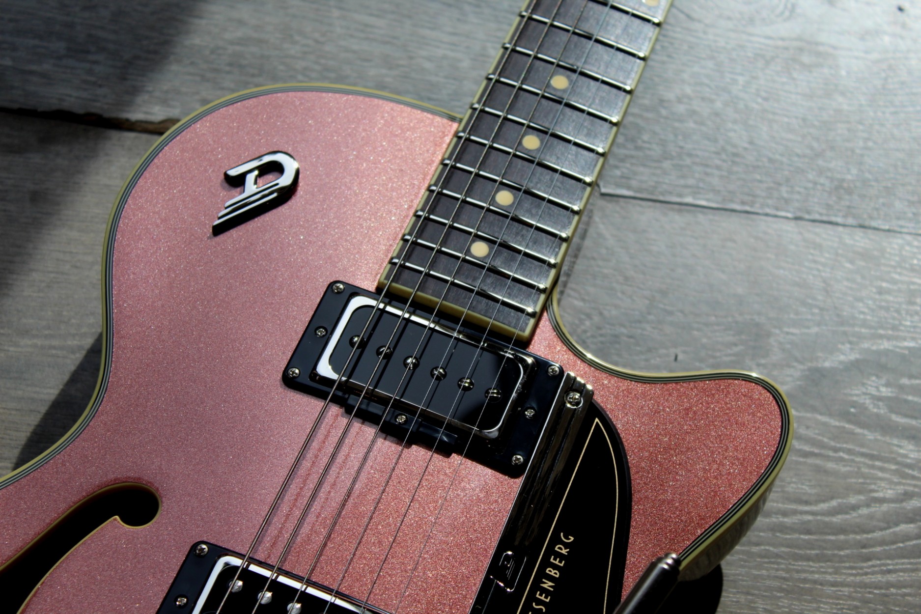 Beauty. Clarity. Reliability. The Starplayer TV is known for its clear and flexible tone that makes you feel at home in any genre. It wasn’t designed to do a specific job well. It was designed to bring something new to any table. It is for artists who don’t want to be restricted by their instrument and for those who are looking to create a voice of their own. And the Starplayer TV brings a lot of tools to help you along the way. Other features include: Neck Type: Set Neck, 1-piece Maple Width: 42.5 mm / 1.67″ (nut), 52 mm / 2.05″ (12th fret) Thickness: 21 mm / 0.8″ (1st fret), 24 mm / 0.95″ (12th fret) Shape: Medium D Fingerboard: Indian Rosewood, radius 305 mm / 12″ Inlays: Cream dots Frets: 22 Jumbo 2.8 x 1.0 mm Scale length: 648 mm / 25.5″ Trussrod: Steel dual-action Headstock: Black Body Type: Semi-hollow with sustain block, bent sides, f-hole Top: Laminated spruce Dimensions: 46 x 34 cm / 18.11″ x 13.38″ Height (sides): 4.5 cm / 1.8″ Binding: Cream Pickguard: Sparkle, Black/Gold Custom or nickel-plated brass (depending on the model) Finish: PUR lacquer (Polyester used on Sparkle, Pearl and Pearloid tops). Back and sides Trans-Black, except for special models. Hardware Tuners: Duesenberg Z-Tuners Bridge: Duesenberg Steel Saddle Bridge Tailpiece: Duesenberg Aluminum Stop Tailpiece (non-trem models only) Vibrato System: Duesenberg Diamond Deluxe Tremola (trem models only) Strap pins: Duesenberg Standard (Straplock compatible) Hardware finish: Nickel Strings: Duesenberg Custom 10/50 (010-013-017-028-042-050) Electrics Pickup (neck): Duesenberg Domino P90 Pickup (bridge): Duesenberg GrandVintage Humbucker Wiring: 1 Volume, 1 Tone, 3-Way Pickup Selector Special Models Outlaw: Skai-leather on top and headstock, nickel pickguard Gold-Top: Cream pickguard and cream pickup rings Pearl models: Pearl mosaic on top and headstock, nickel pickguard TV+: Piezo bridge, stainless steel pickguard, multi-tone-pot Accessories Case: Custom Line Case (included) Tools: All required allen keys (included) Item Code DTV-CSR 7 lbs 14 oz