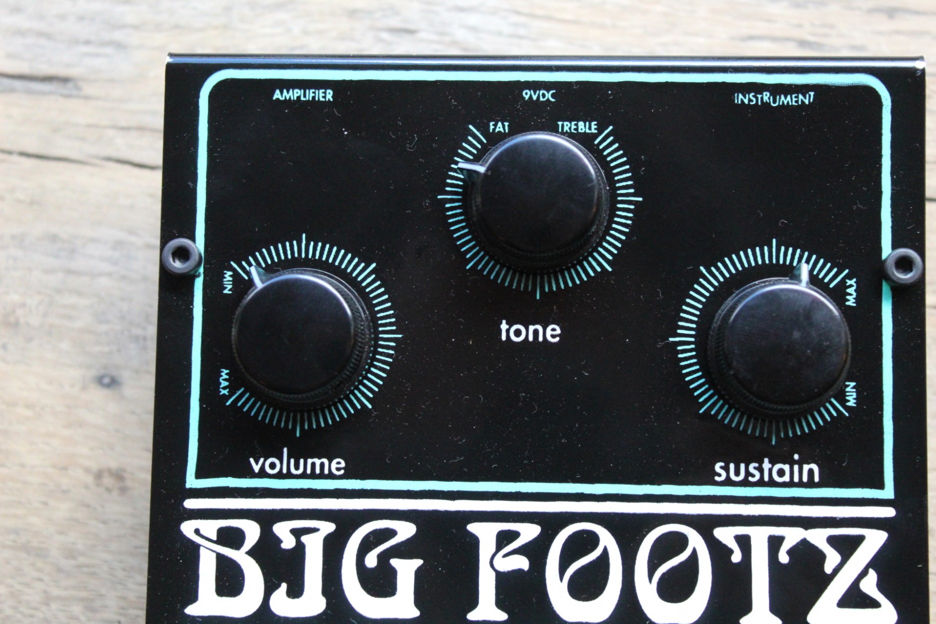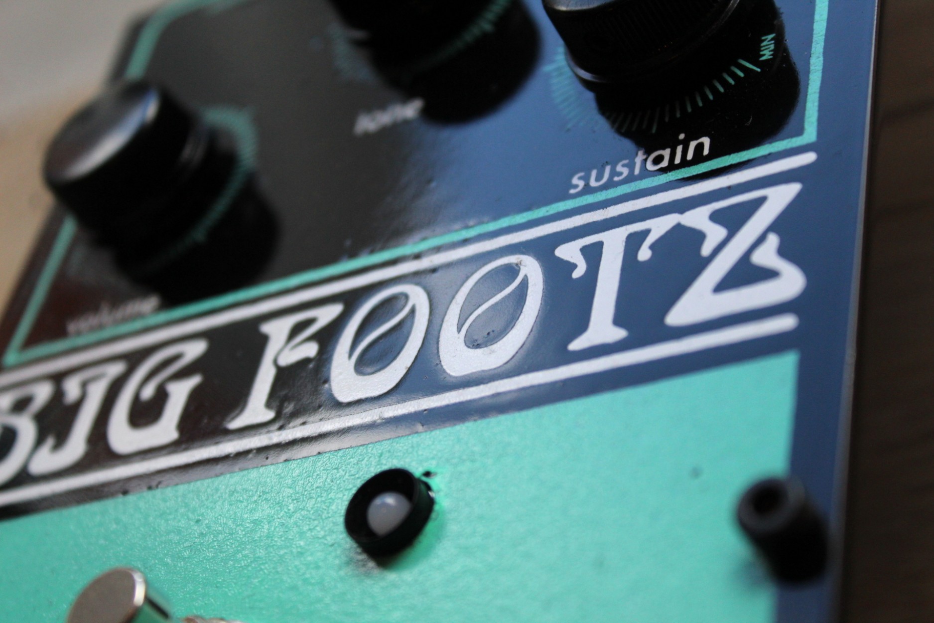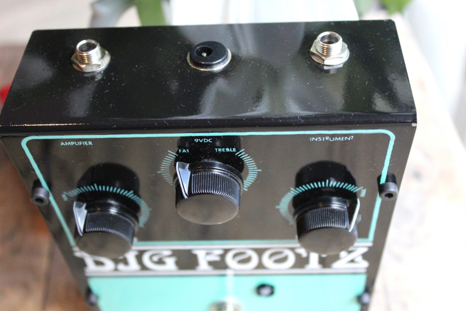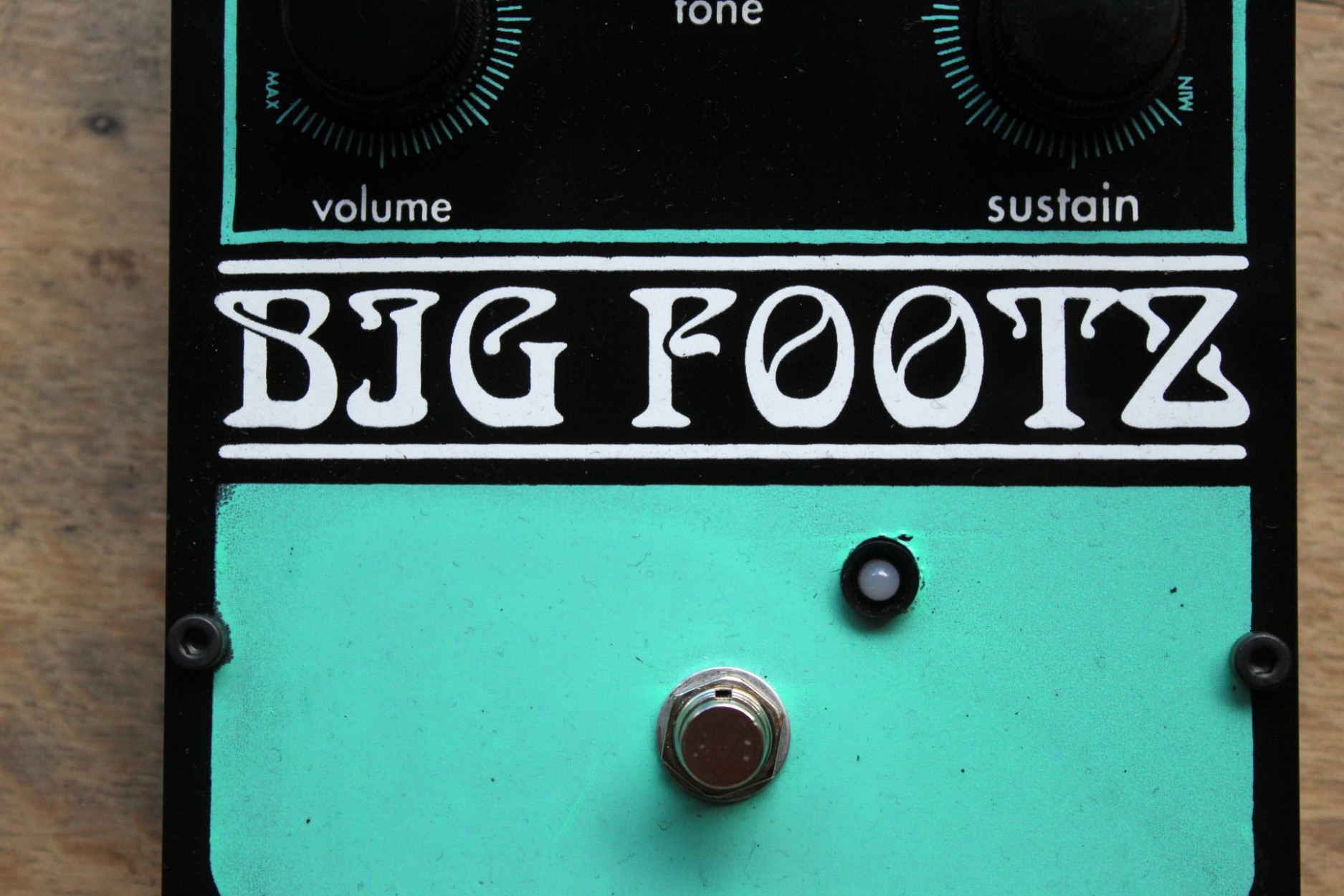 Two colors avaliable! BIG FOOTZ the Muff shot made by LofiMind Effects, Big Footz units are built point-to-point on perforated Bakelite and NOS components, using the BC239 transistor as a starting point. the scheme runs between the Ram's Head, (V2-V3) built point-to-point (like the V1) and graphically inspired by the V6 of the late 70s. It has the classic Volume, Tone and Sustain controls, getting much closer in sound to a bender than to a big muff. Part of the V2s from the 70s do not add volume to your signal. With the Big Footz at 12-13 o'clock we get to equalize the signal, leaving plenty of knob travel to add volume to our guitar signal. the sound is super-crystalline and articulate, it doesn't squash notes like the more standard Muff's, so the tone knob is usable all the way around and has a very good sound.