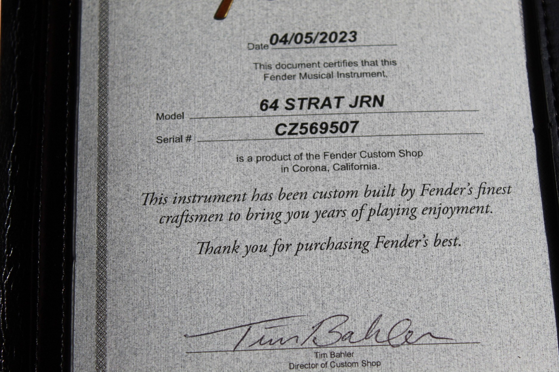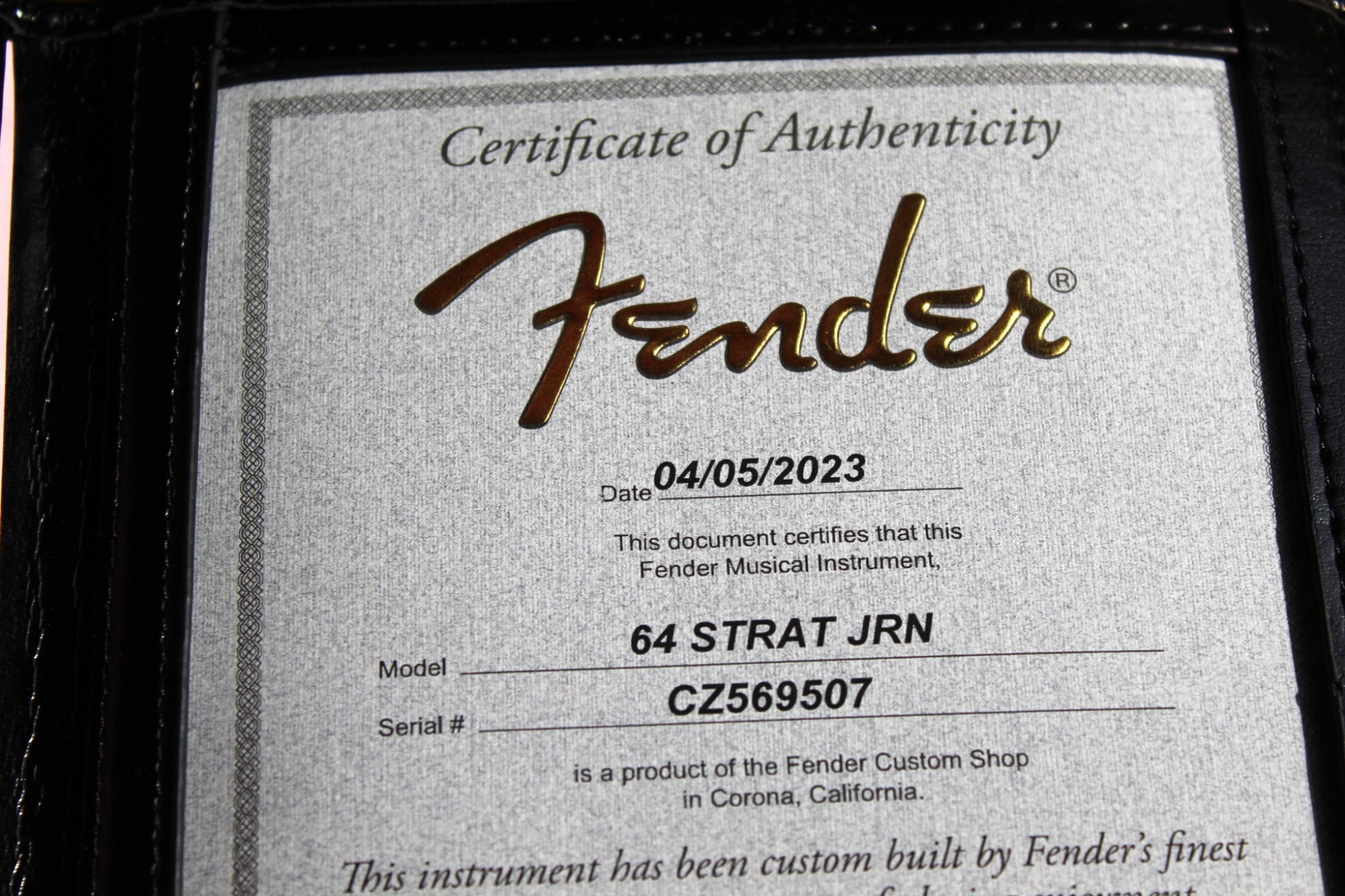 A faithful recreation of Fender’s seminal ’64 Strat, paying homage to the classic stylings of this transitional year’s model, preserving the significant modifications that have made this Strat so beloved. Hand-selected woods ensure period-precise tone, including a 2-piece alder body, quartersawn maple neck, and a round-laminated rosewood fingerboard. The 1963 soft “C” neck profile accompanies 21 frets across a 9.5-inch radius, accommodating a variety of playstyles with comfort. Hand-wound ’64 pickups bring the tone to life at any volume, thanks to the vintage wiring and Tone-Saver bleed circuitry. Vintage-style hardware adorns this axe, with a custom shop synchronized tremolo for some serious expression. Tones straight out of time Fender’s Custom Shop luthiers never fail to do their homework, and the ’64 sounds like an axe straight out of time. Hand-selected alder comprises a 2-piece body, known for its physical resilience and resistance to warping. Tonally, alder is rich in sustain, providing a loud, warm overall sound, tending toward the low end with slicing mids and sturdy bass. The quartersawn maple neck imparts great projection and note-separation, with bright, clear mids and highs, alongside simple overtones in a tight bass. Round-laminated rosewood colors the fingerboard with luscious loudness and a crystalline veneer. This triumvirate of tonewoods delivers a distinctive, historically accurate sonic profile, full through every register with tremendous articulation.