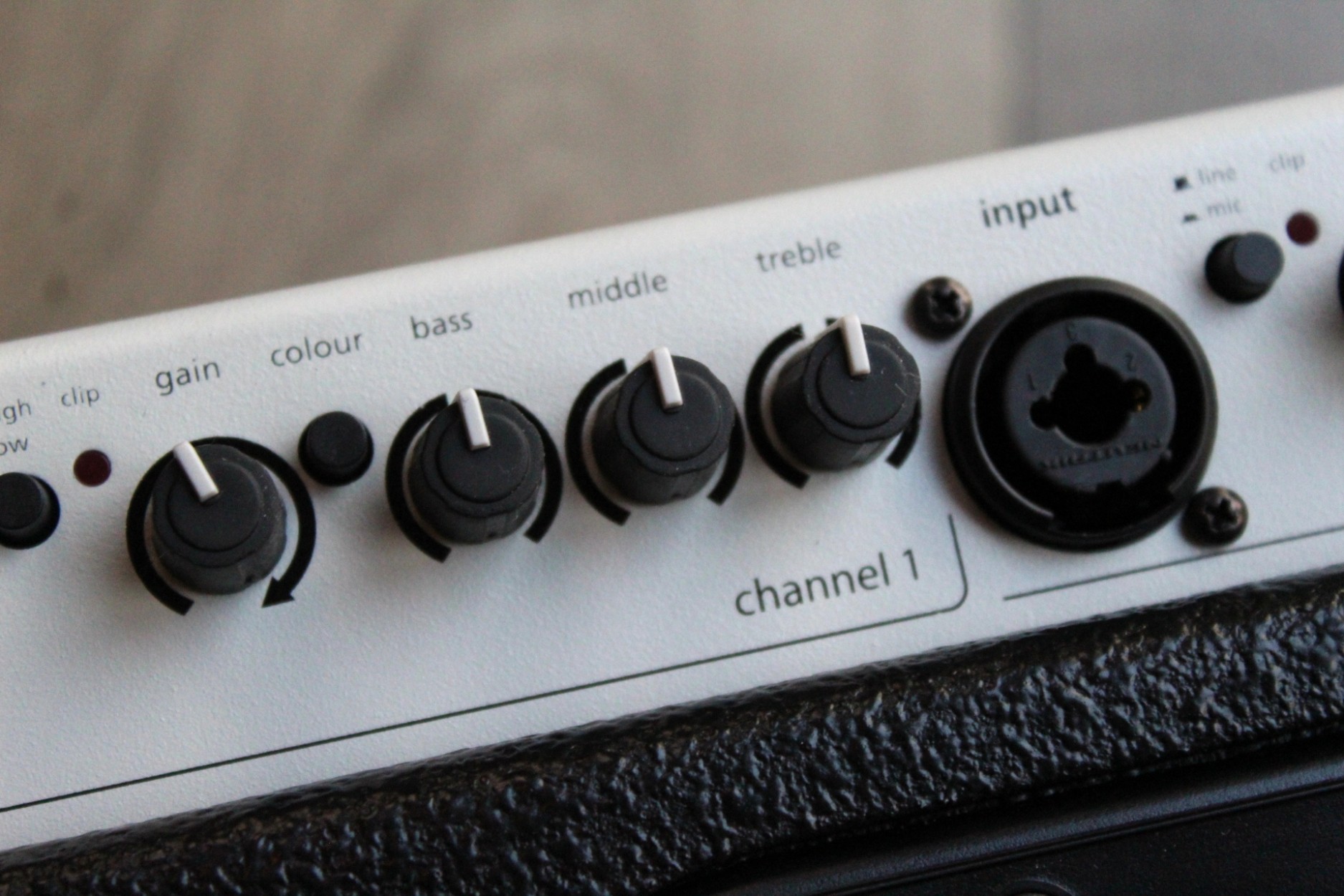 Channel 1 6.3 mm (1/4”) input jack socket as high impedance line input stage with pad (high/low attenuation) 9 V phantom power and gain control Channel 2 combined XLR/6.3 mm (1/4”) input jack socket as high quality line or balanced microphone input stage 48 V, gain control Equalizer three band tone controls for channel 1 and two band tone controls for channel 2 Colour ‘mid-cut-treble-boost’-filter Digital effect processor with 4 presets: 2 x reverb, delay, chorus Power amp 60W / 4 ohms, dynamic control Speaker system 8” (200 mm) twin cone speaker Features headphones, line out, switchable DI-out, external effect loop via send and return, footswitch, aux in (internal/external effect on/off ) Dimensions 260 mm x 325 mm x 235 mm (10.20“ x 12.80“ x 9.25“), HxWxD Weight 7.1 kg (15.6 lbs)