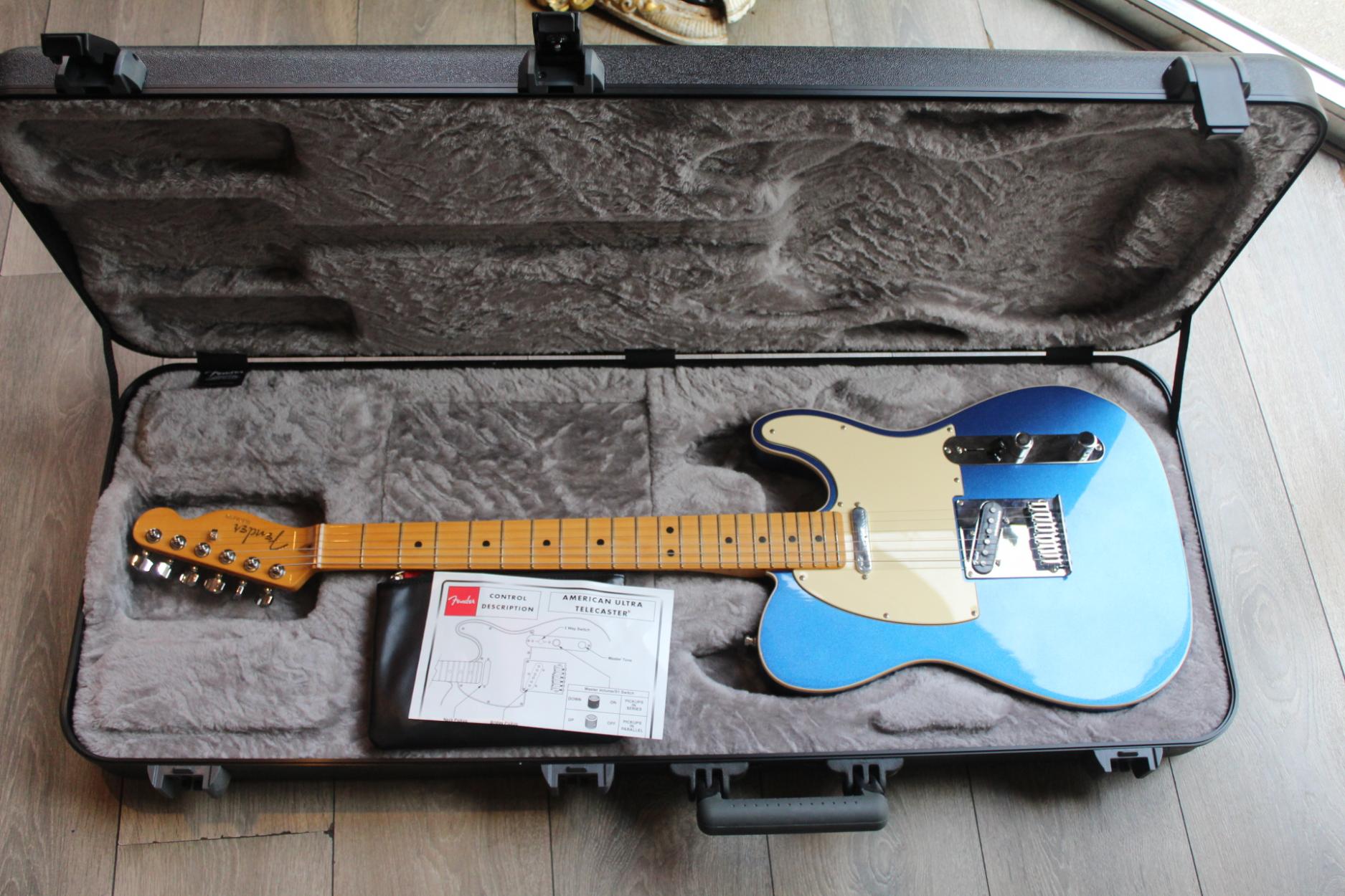 FENDER "American Ultra Telecaster with Maple Fretboard Cobra Blue" HARDCASE, 3, 45 KG (MINT)