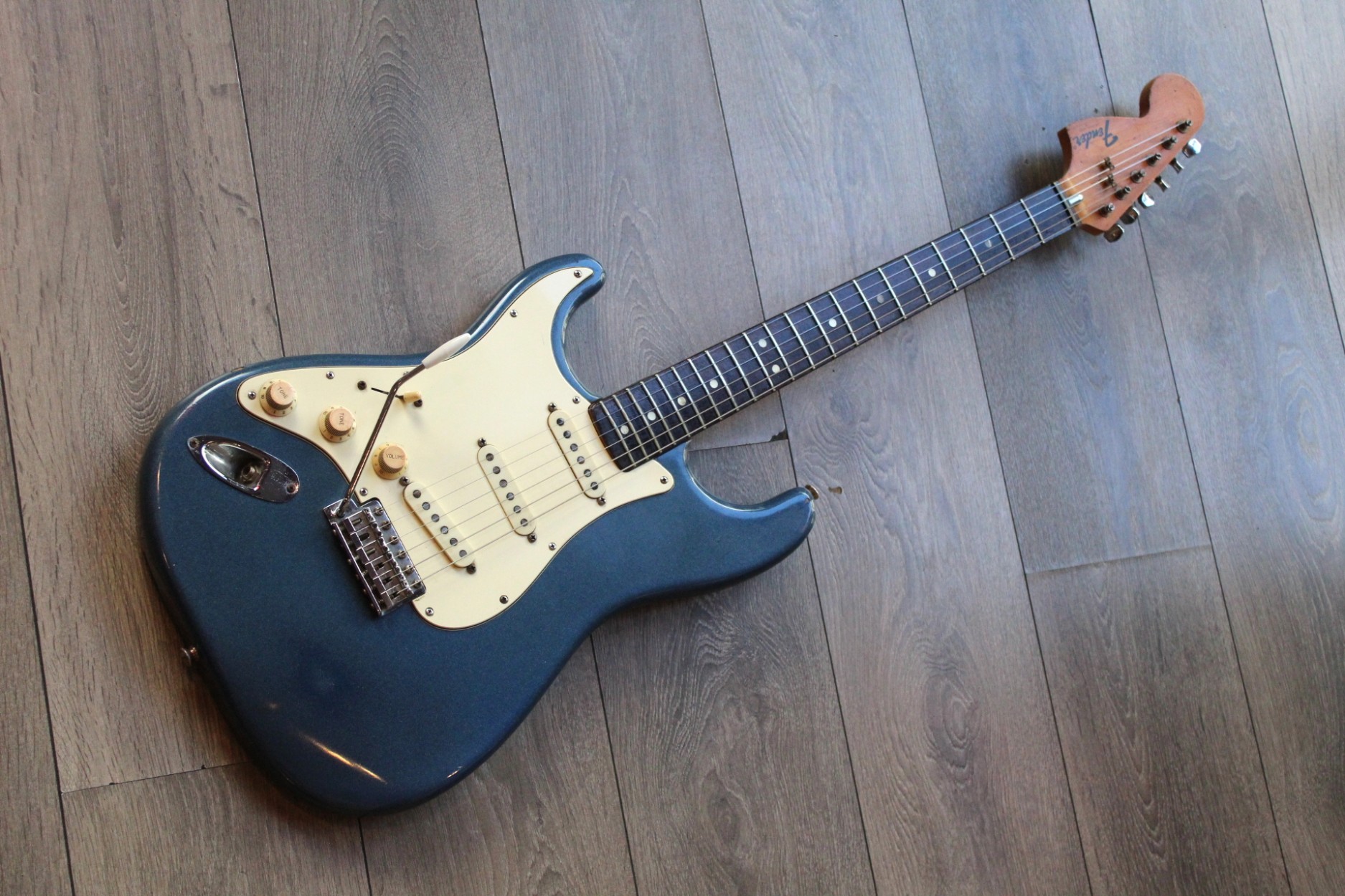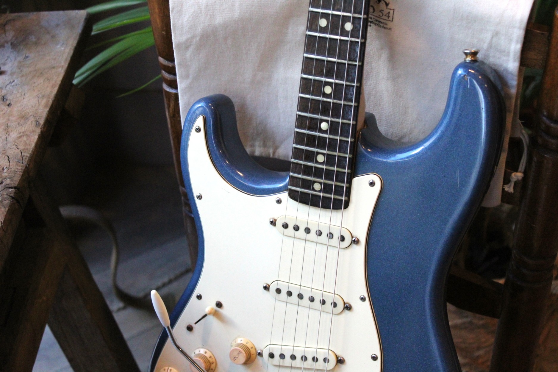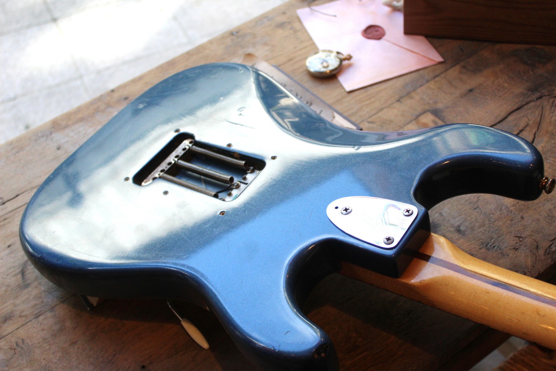 We have many photos if you want more! Amazing Left Handed piece in a RARE COLOR for 1974!! The Fender Stratocaster, colloquially known as the Strat, is a model of electric guitar designed between 1952 and 1954 by Leo Fender, Bill Carson, George Fullerton, and Freddie Tavares. The Fender Musical Instruments Corporation has continuously manufactured the Stratocaster since 1954. It is a double-cutaway guitar, with an extended top "horn" shape for balance. Along with the Gibson Les Paul, Gibson SG, and Fender Telecaster, it is one of the most-often emulated electric guitar shapes.[1][2] "Stratocaster" and "Strat" are trademark terms belonging to Fender. Guitars that duplicate the Stratocaster by other manufacturers are sometimes called S-Type or ST-type guitars. The guitar introduced into the popular market several features that were innovative for electric guitars in the mid-1950s. The distinctive body shape, which has become commonplace among electric guitars, was revolutionary for the time period, and for the first time a mass-market electric guitar did not significantly resemble earlier acoustic models. The double cutaway, elongated horns, and heavily contoured back were all designed for better balance and comfort to play while standing up and slung off the shoulder with a strap. The three-pickup design offered players increased versatility and choice in tone quality over earlier one- and two-pickup electric guitars, and a responsive and simplified vibrato arm integrated into the bridge plate, which marked a significant design improvement over other vibrato systems, such as those manufactured by Bigsby. All of these design elements were popularized and later became an industry standard due to the success of the Stratocaster. The Fender Stratocaster is one of the most iconic electric guitar models of all time.[3] Over the years, countless variations of the Stratocaster have been made. The modular nature of the guitar, with its easily removable components, left players and luthiers to perform numerous modifications to their own guitars, changing out pickups or necks to fit the needs of the player. Fender has released numerous models with different pickup configurations and has made other small modifications to the electronics and components of the base model, such as changing the initial 3-position selector switch to a standard 5-position selector switch, offering more tonal variety, as well as other small cosmetic changes to things like tuning pegs and types of woods used in various parts of the guitar. Various other companies have produced their own Strat-style bodies known as Superstrats.