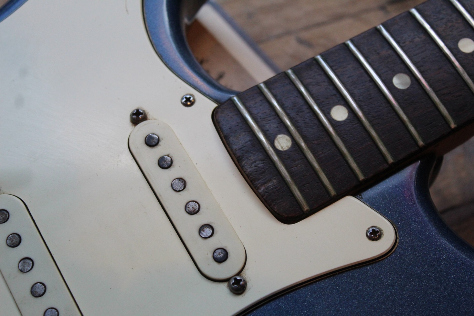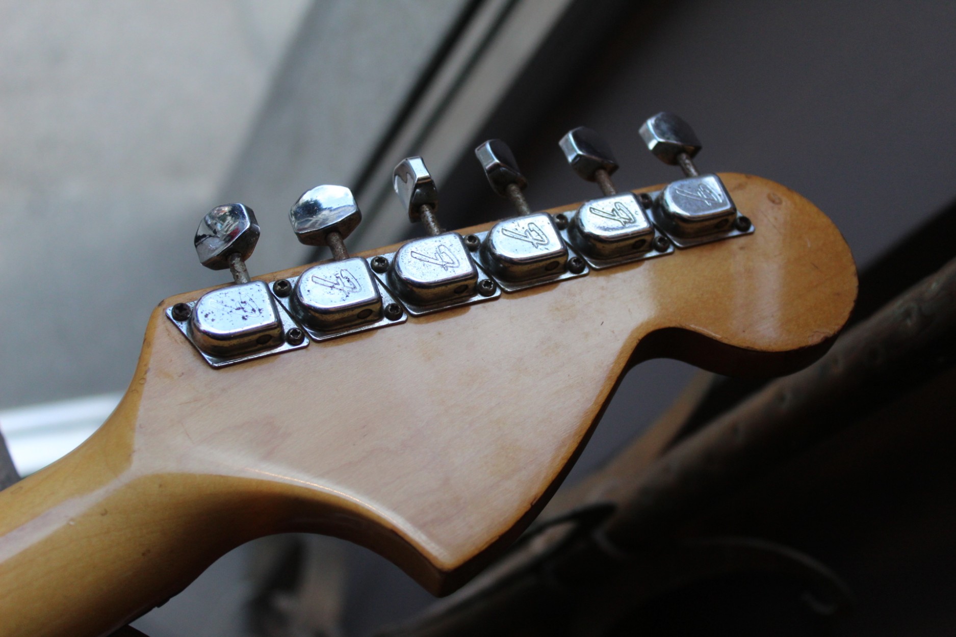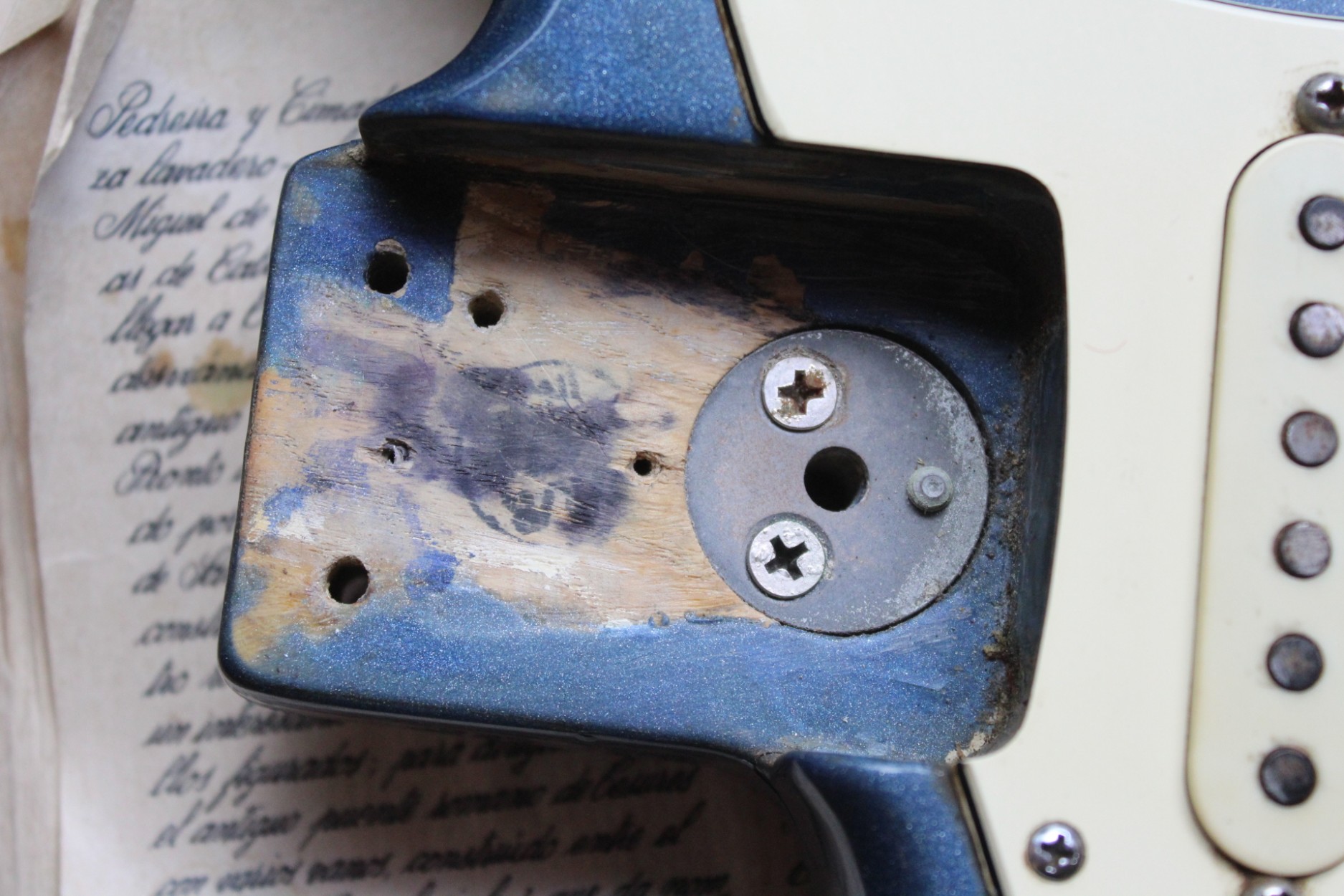 We have many photos if you want more! Amazing Left Handed piece in a RARE COLOR for 1974!! The Fender Stratocaster, colloquially known as the Strat, is a model of electric guitar designed between 1952 and 1954 by Leo Fender, Bill Carson, George Fullerton, and Freddie Tavares. The Fender Musical Instruments Corporation has continuously manufactured the Stratocaster since 1954. It is a double-cutaway guitar, with an extended top "horn" shape for balance. Along with the Gibson Les Paul, Gibson SG, and Fender Telecaster, it is one of the most-often emulated electric guitar shapes.[1][2] "Stratocaster" and "Strat" are trademark terms belonging to Fender. Guitars that duplicate the Stratocaster by other manufacturers are sometimes called S-Type or ST-type guitars. The guitar introduced into the popular market several features that were innovative for electric guitars in the mid-1950s. The distinctive body shape, which has become commonplace among electric guitars, was revolutionary for the time period, and for the first time a mass-market electric guitar did not significantly resemble earlier acoustic models. The double cutaway, elongated horns, and heavily contoured back were all designed for better balance and comfort to play while standing up and slung off the shoulder with a strap. The three-pickup design offered players increased versatility and choice in tone quality over earlier one- and two-pickup electric guitars, and a responsive and simplified vibrato arm integrated into the bridge plate, which marked a significant design improvement over other vibrato systems, such as those manufactured by Bigsby. All of these design elements were popularized and later became an industry standard due to the success of the Stratocaster. The Fender Stratocaster is one of the most iconic electric guitar models of all time.[3] Over the years, countless variations of the Stratocaster have been made. The modular nature of the guitar, with its easily removable components, left players and luthiers to perform numerous modifications to their own guitars, changing out pickups or necks to fit the needs of the player. Fender has released numerous models with different pickup configurations and has made other small modifications to the electronics and components of the base model, such as changing the initial 3-position selector switch to a standard 5-position selector switch, offering more tonal variety, as well as other small cosmetic changes to things like tuning pegs and types of woods used in various parts of the guitar. Various other companies have produced their own Strat-style bodies known as Superstrats.