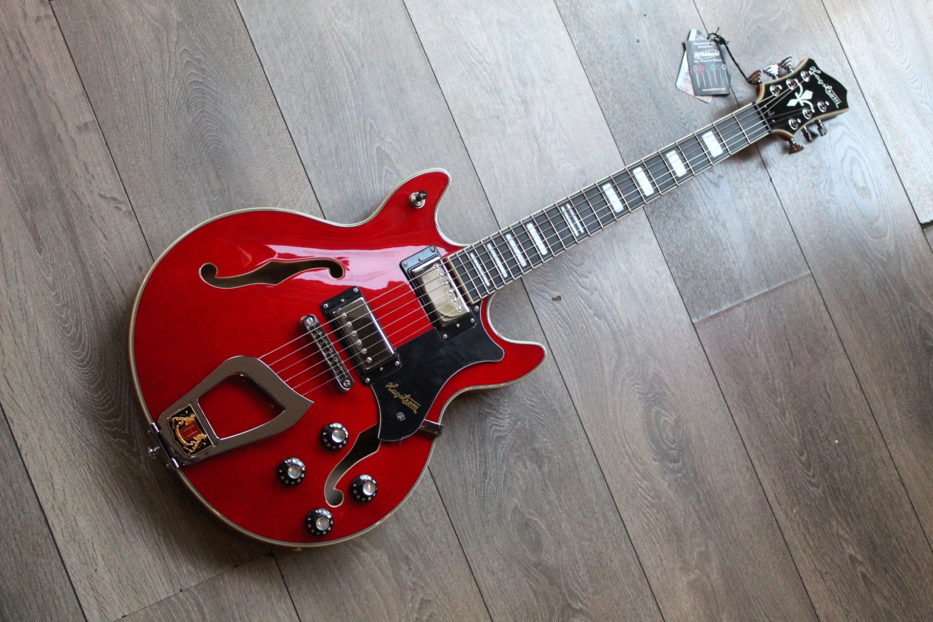Hagstrom Alvar Within Norse Mythology of millennia far past, the warrior-elf god “Alvar” was a distinguished mighty warrior. As legend tells us, Alvar held a storm of emotion within his calm exterior, and was the perfect role model as a true best friend that could always be relied upon. Hagstrom Guitars proudly present the Hagstrom Alvar, the smaller brother of the Hagstrom Viking which perfectly lives up to its Norse origins as the “Elf Warrior”. A true best friend and fellow fighting companion. This semi-hollow bodied instrument in its “petite” body size, will be a perfect match for players searching for a semi-hollow in a smaller compact form. While it shares so many elements of its larger bodied sibling, the Alvar is a reigning force despite its diminutive proportions and elements. The Elf-Warrior Alvar, always has your back As Alvar was also known for having a calm and cool side of his personality, this 6-stringed wonder has the ability to easily “dial down” for cool and calmer moments. If battle insists and a raging fight pursues, he takes up his battle axe and delivers some of the tightest and controlled death blows of mayhem. Sturdy, focused and resistant to feedback at high volumes and excessive gain, this guitar reacts and steps up to the task required. It is surprisingly capable of delivering an onslaught of destruction taking players by pleasant surprise, with all of the power and might that this little beast can dish out. It’s sleek and slim multi-ply maple body and set maple neck, are key to delivering its sharp attack and long sustain. The dually equipped Hagstrom HJ-50 humbucking pickups transform this cool cat into a raging beast at the flick of a switch. Our custom equipped RC-Circuit on each independent volume pot helps to keep the Alvar calm and subdued, while turning up the dials summon forth the elf-warlord. Players that have already become acquainted with Alvar have been shocked at is exceptional feel and flexible tonal control, despite its meager size. The Alvar demonstrates its ability to flip from wholesome clean, to full staunch aggression in a heartbeat.