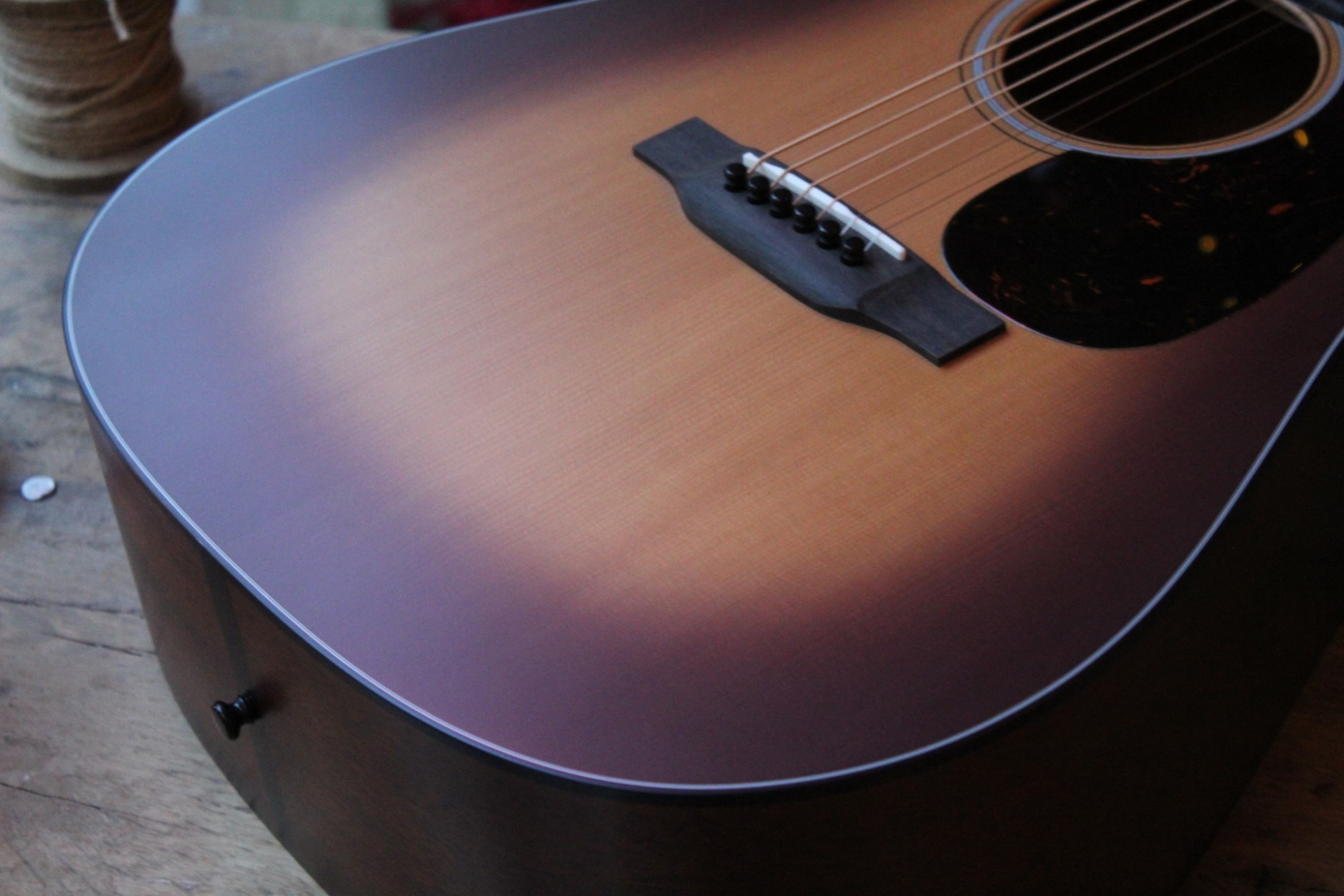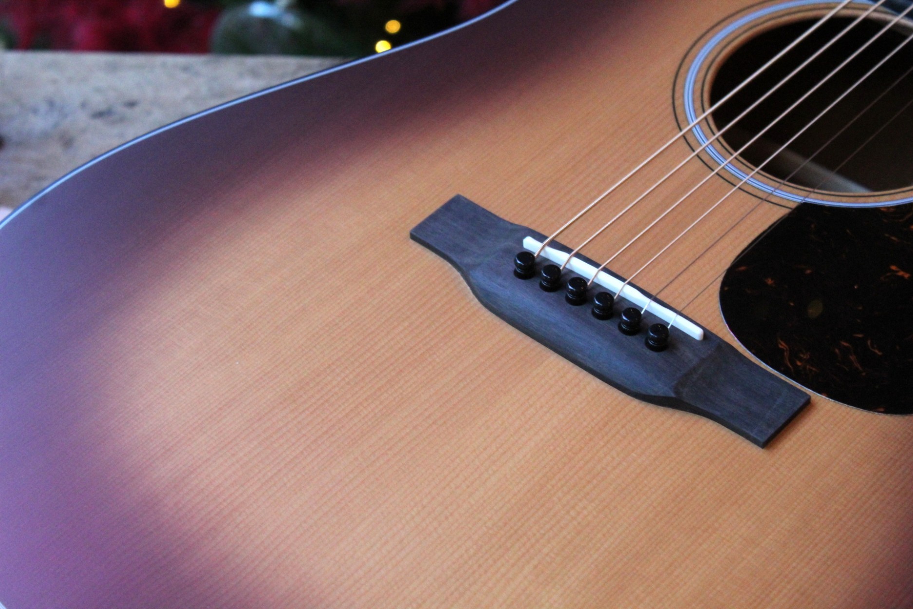 Overview Recommended Strings: Authentic Acoustic Lifespan® 2.0 Guitar Strings Phosphor Bronze - Medium Body Size: D-14 Fret Finish Top: Satin Construction: Dovetail Neck Joint Back and Side Finish: Satin Bracing Pattern: Forward-Shifted X-Brace Scale Length: 25.4" Brace Shape: Scalloped Fingerboard Width at Nut: 1 3/4'' Top Material: Spruce Neck Shape: Modified Low Oval Back Material: Genuine Mahogany Neck Taper: High-Performance Taper Side Material: Genuine Mahogany Electronics: None Electronics Options: None Top Top Color: Amberburst Bridge Style: Modern Belly - Drop in Saddle Binding: Black Bridge String Spacing: 2 5/32" Top Inlay Material: Multi-Stripe Bridge Material: Ebony Top Detail: None Bridge Pin Material: Black Plastic Pickguard: Tortoise Pattern Bridge Pin Dots: None Pickguard Inlay: None Saddle: Compensated Bone Rosette: Multi-Stripe Saddle Radius: 16" Body Brace Material: Spruce Back and Sides Color: Dark Mahogany Brace Size: 5/16" Back Detail: None Back Purfling/Strip: Style 18 Back Inlay Material: None Heelcap: Black Side Detail: None Endpiece: Black Side Inlay Material: None Endpiece Inlay: None Neck Neck Material: Mahogany Fingerboard Material: Ebony Finish Neck: Satin Fingerboard Width at 12th Fret: 2 1/8'' Neck Color: Dark Mahogany Fingerboard Inlay Style: Old Style 18 Number of Frets Total: 20 Fingerboard Inlay Material: Abalone Neck Joins Body At: 14th Fret Fingerboard Binding Material: None Side Dots: White Headstock Headstock Shape: Solid with Square Taper Tuning Machines: Nickel Open Gear Headplate Material: East Indian Rosewood Knob: Butterbean Headplate Logo Style: Script Old Style Overlay Nut Material: Bone