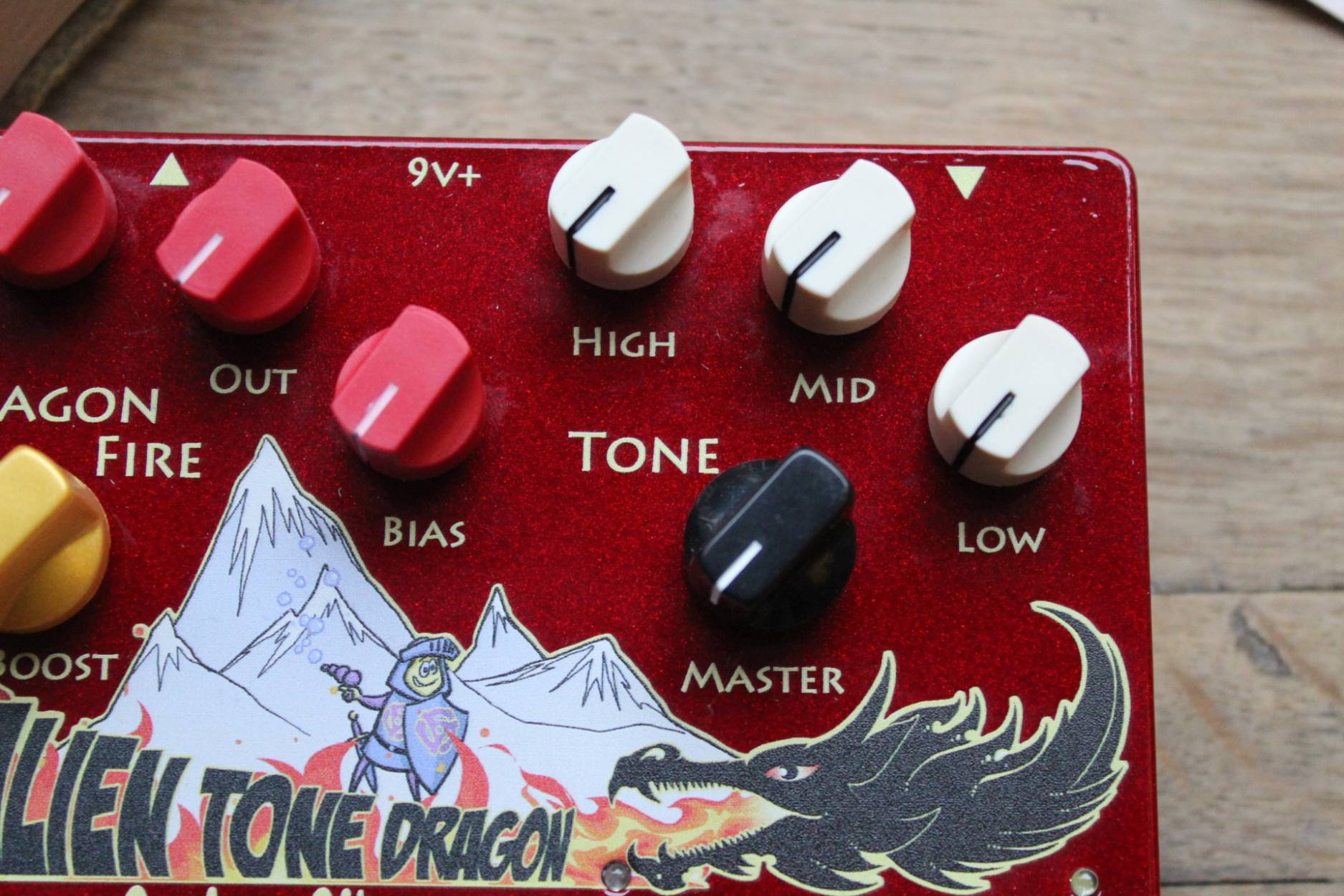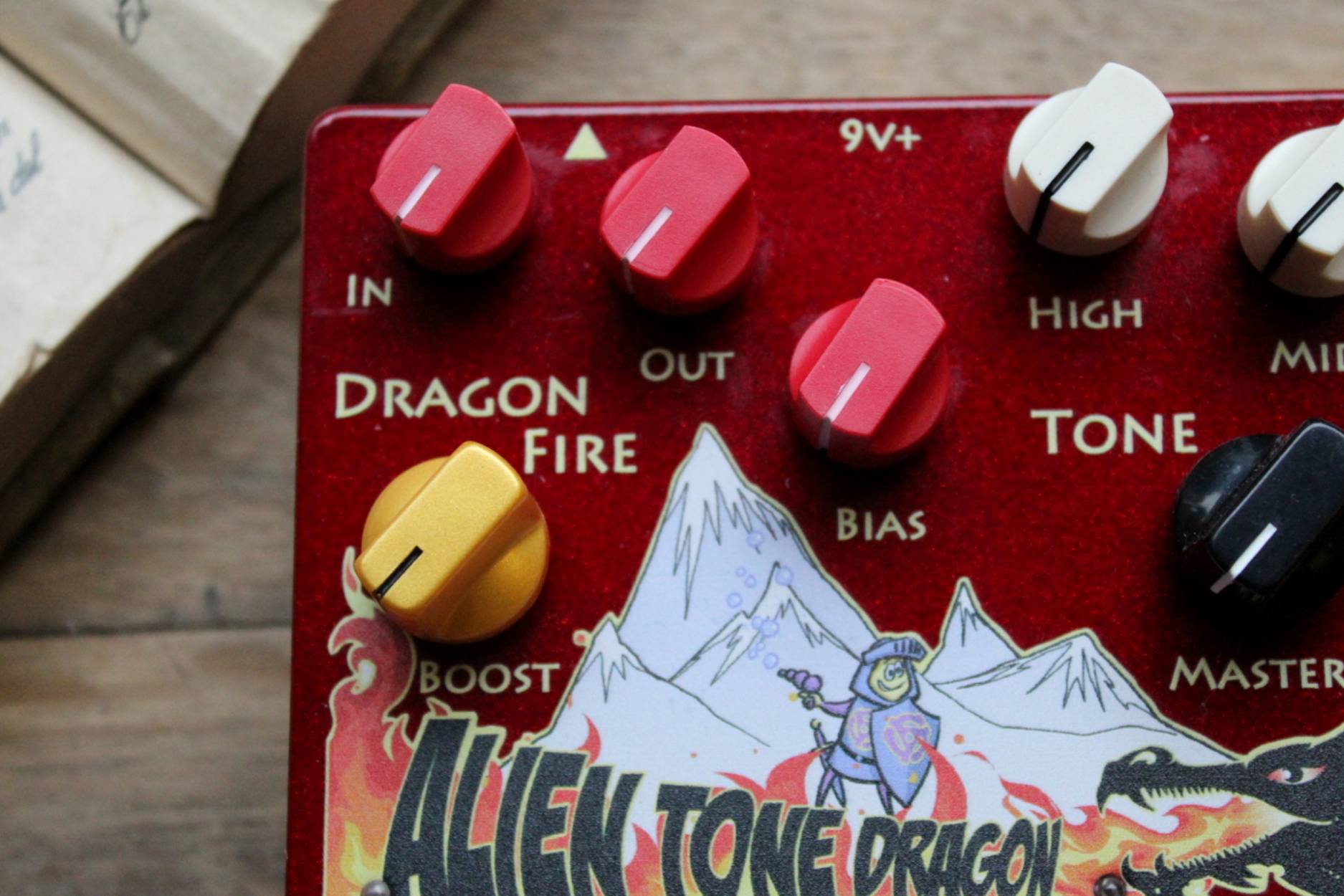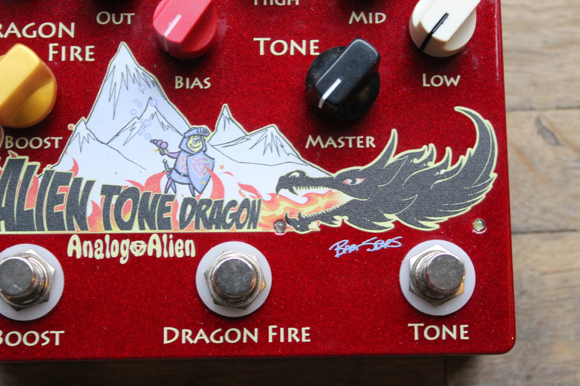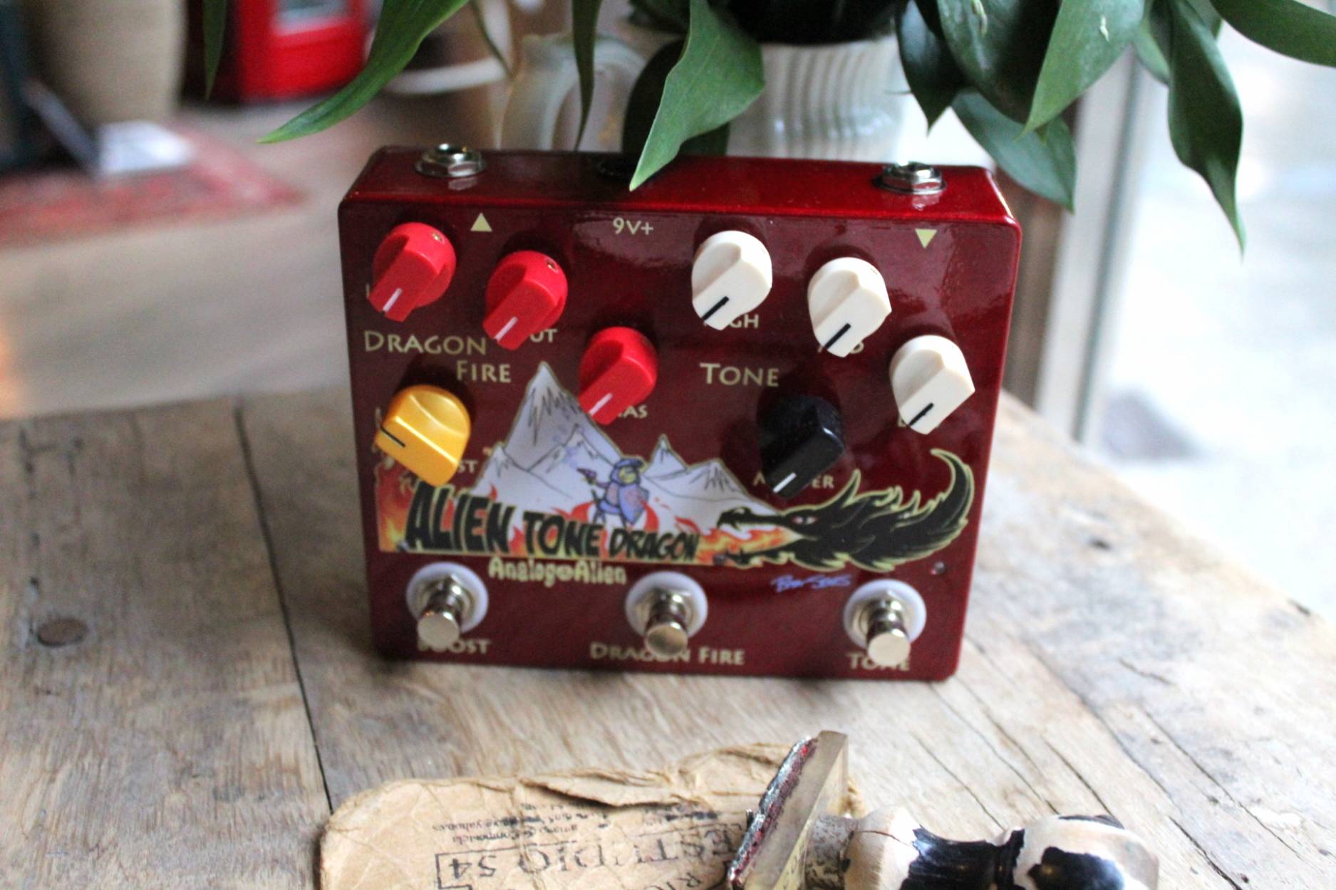 Three Stompbox Effects In One Cool Pedal That Will Make Your Guitar Roar! Add some Dragon Fire to your pedal board with the Analog Alien – Alien Tone Dragon (ATD)! Analog Alien Guitar Pedals have become known for combining multiple effects into one single pedal enclosure, and the Alien Tone Dragon proudly carries on that legacy. Use the Clean Boost to push your guitar pedals, restore unity gain to your pedal board, or make your amp go to 12! The Dragon Fire circuit can go from a full sonic wall of fiery fuzz to the hottest Rock/Blues overdrive you’ve ever heard, with just a few tweaks of its control knobs. Finally, shape your sound with a fully active, non over-lapping, 3 band tone circuit with master volume. You can use the 3 control knobs to easily sweep through the tone control until you find just the sound you’re looking for. Combine all 3 effects for a sonic tonal experience! The ATD will set your guitar on fire!