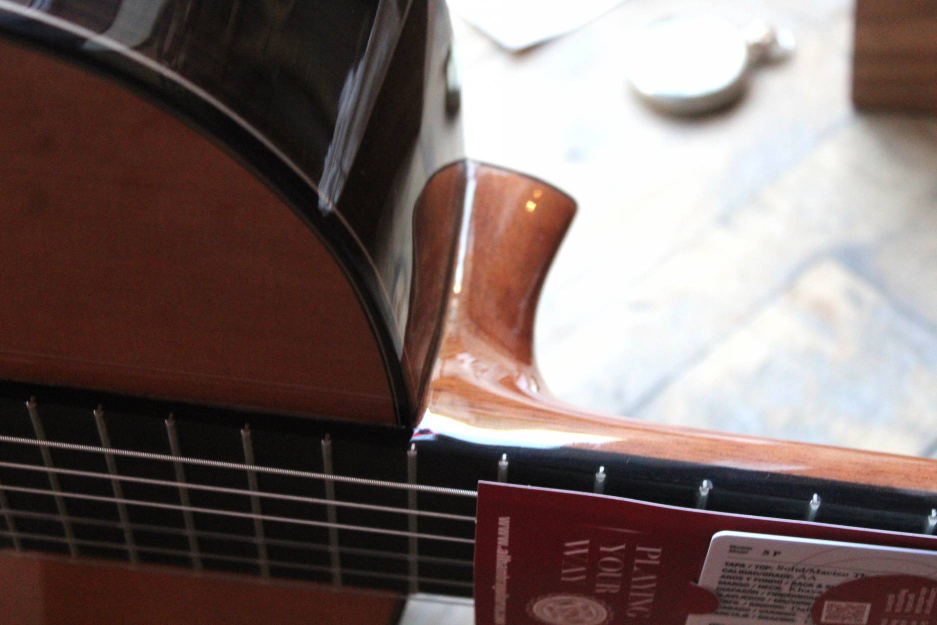 Sturdy Construction and Exquisite Details The 5 P model from Guitarras Alhambra represents the evolution of the successful 4p. Its construction has been improved to provide a more robust case, while maintaining characteristic details such as the four layers of varnish, the ebony fingerboard, superior quality tuners and the exquisite Indian Rosewood for sides and back. Discover a guitar designed to play various musical styles, offering comfort, exceptional sound and impeccable response. Balanced Sound and Superior Response The 5 P's soundboard features a unique bracing design, with a thin wood supported by seven bars, two of them at the bottom. This construction detail not only makes the guitar strong and lightweight, but also improves its sound, giving it more body, warmth and richness. The melamine "bones" in the saddle and nut are highly transmissive of sound, contributing to a defined and constant tone throughout the neck. Experience a melodious and distinctive sound, highlighting the sound quality at the 12th fret. Versatility in Design and Size The 5 P model not only impresses with its sound, but also offers versatility in its design. Available in Cut Away (CW) format for easier access to the lower part of the fretboard and in Narrow Body (CT) format for more comfortable playing in an upright position. This instrument also accommodates various size preferences and is available for left-handed guitarists. Discover freedom of musical expression with an instrument that fits your unique style. Features and options TOP: Solid Cedar or Solid Fir SIDES AND BACK: Indian Rosewood MANGO: Samanguila. Handle reinforced with ebony FINGERBOARD: Ebony HEADHEADS: Gold