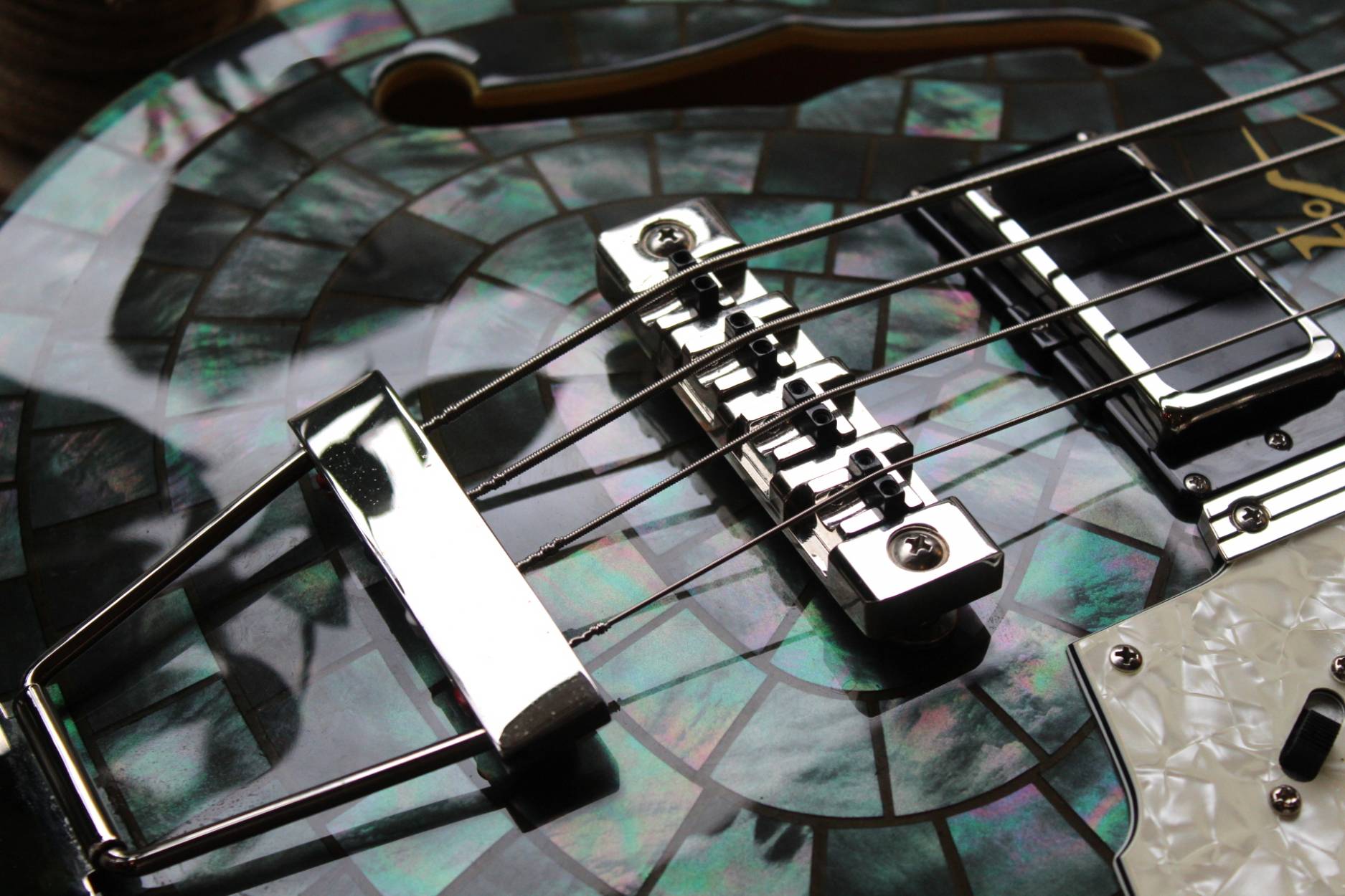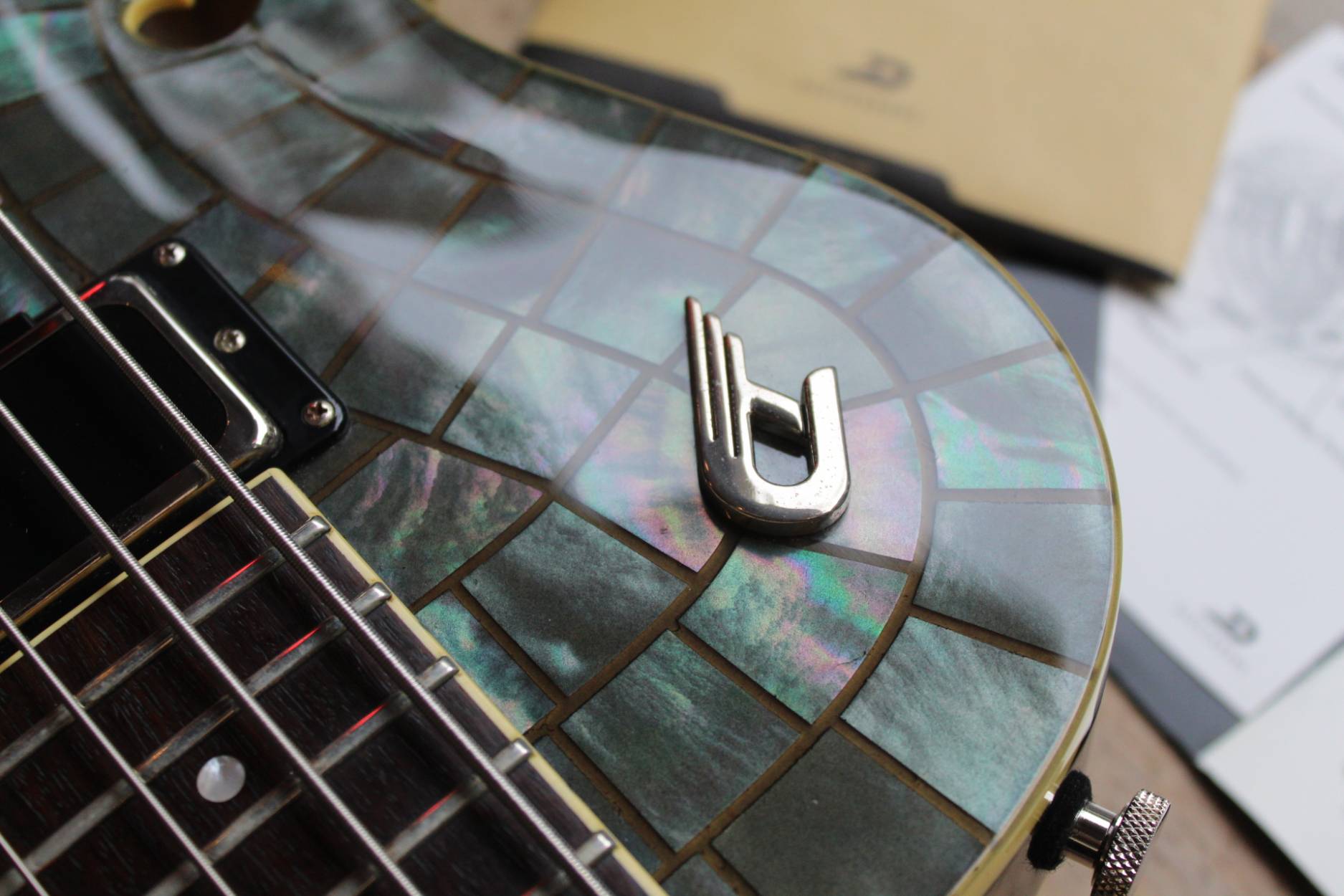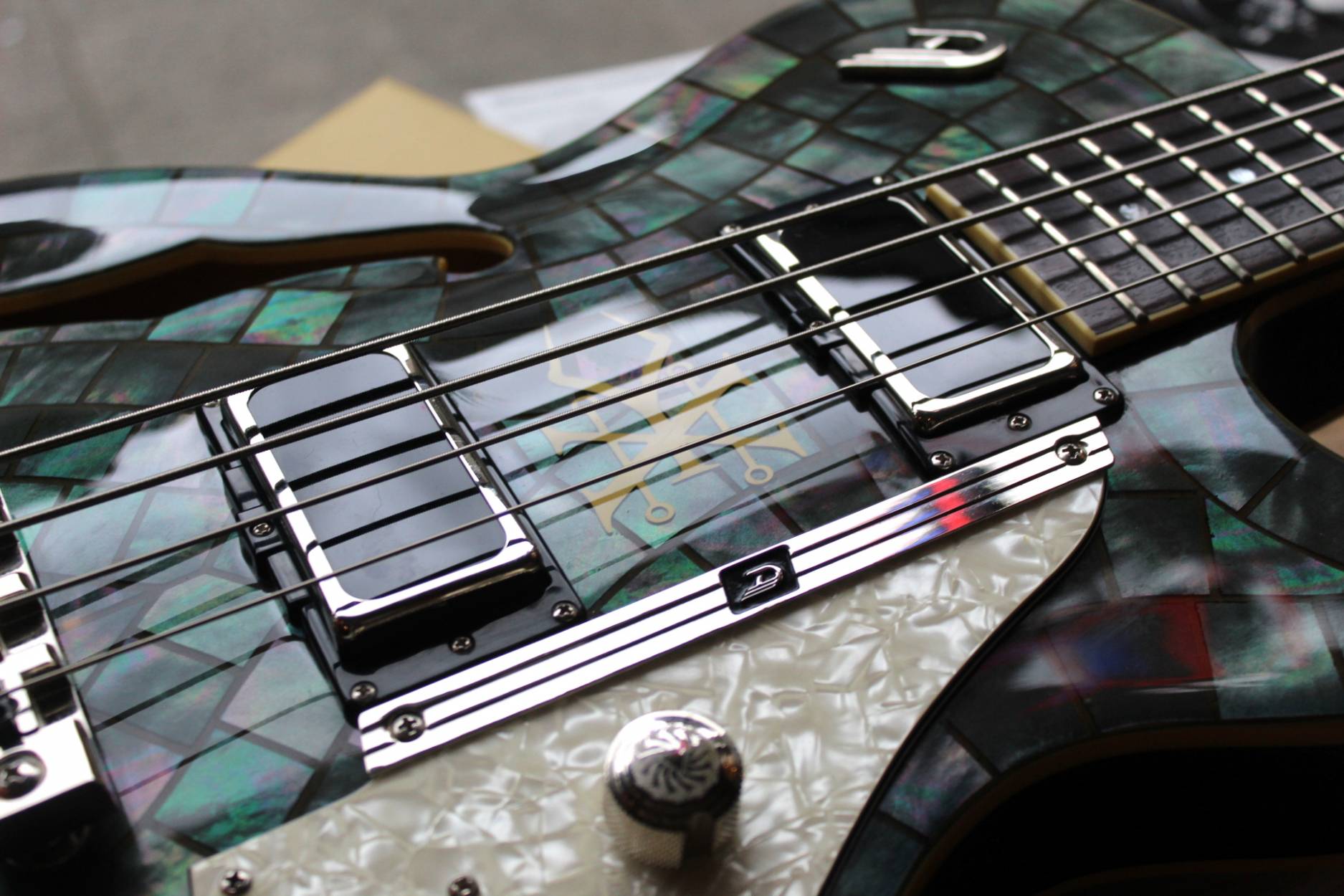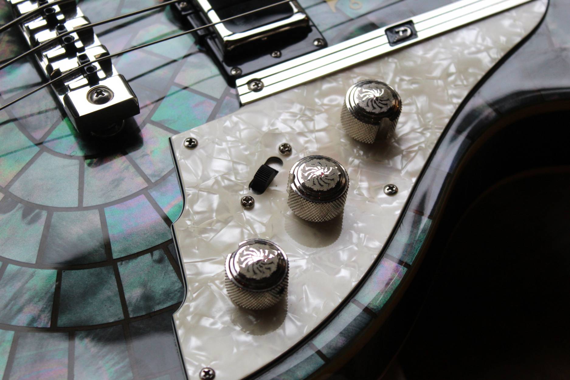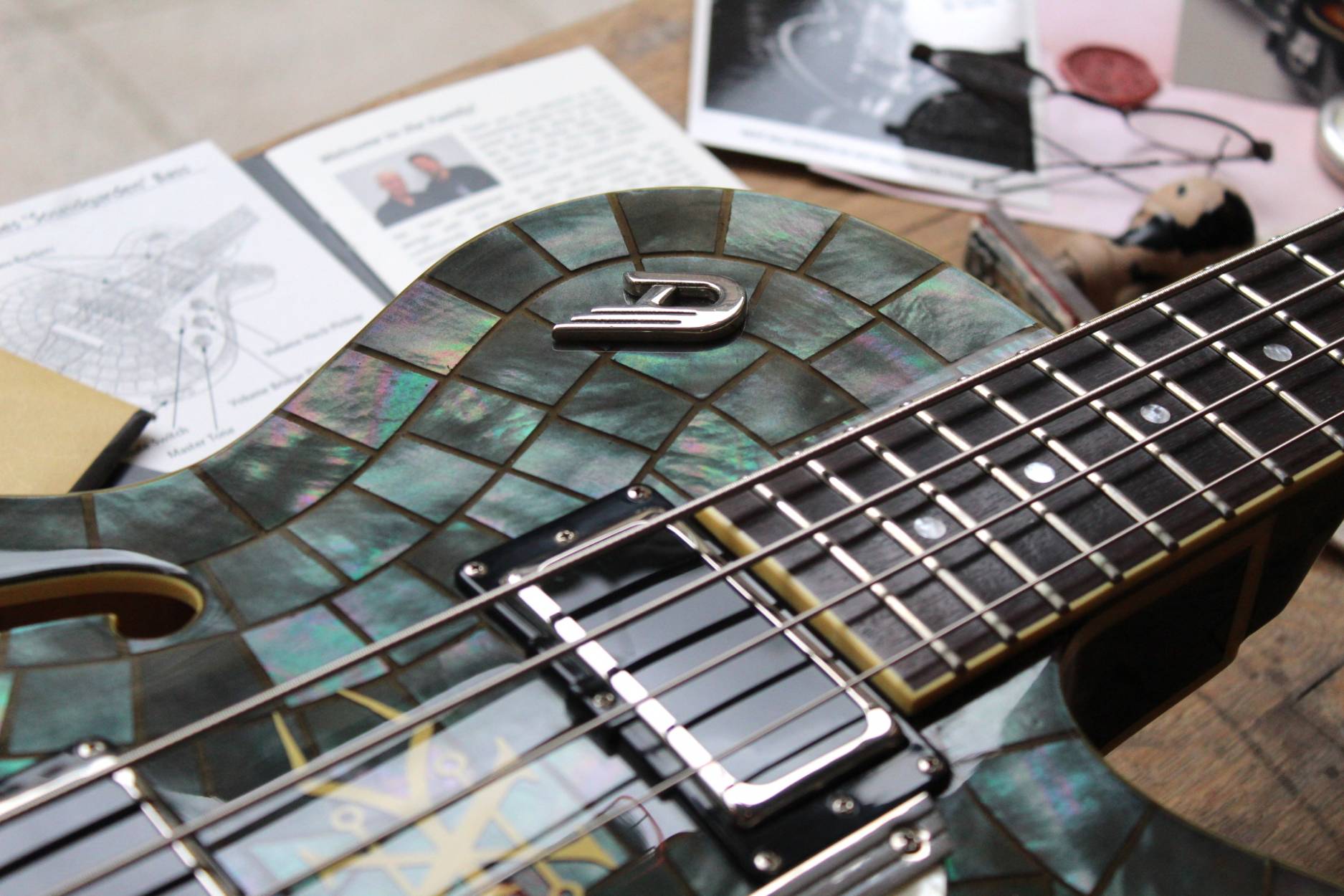 We are honored to introduce the Duesenberg Alliance Series Guitar with Grammy Award-Winning band Soundgarden: Chris Cornell (r.i.p.), Kim Thayil, Ben Shepherd and Matt Cameron. Recognized as one of the world’s most influential bands in rock music, Grammy-winning multi-platinum selling band Soundgarden started a musical transformation that inspired a generation in its record-breaking career, leaving an indelible mark by helping redefine alternative and hard rock. From their early beginnings in the 1980s performing around Seattle Washington, Soundgarden was one of the most instrumental bands in the creation of grunge and alternative rock. Crossing generational lines, for millions of fans worldwide, Soundgarden created a voice for the youth around the world.Duesenberg incorporated the history of Soundgarden throughout the guitar, encompassing the symbols of their legendary past by celebrating their mark in music. The graceful style of the Duesenberg Starplayer TV was the canvas in developing the »Alliance Series Soundgarden Black Hole Sun«. For this historic guitar, Duesenberg chose a Mother Of Pearl finish for its vision of the “Black Hole Sun”, as well as symbols from the Badmotorfinger album all the way through the song “Been Away Too Long”. The guitar features a custom Duesenberg Diamond Deluxe Tremola with built in spark plug, as well as a spark plug inlay on the 12th fret, a custom decal between the pickups and unique volume and tone knobs. Additionally, there is also a 4-string bass version of the instrument.