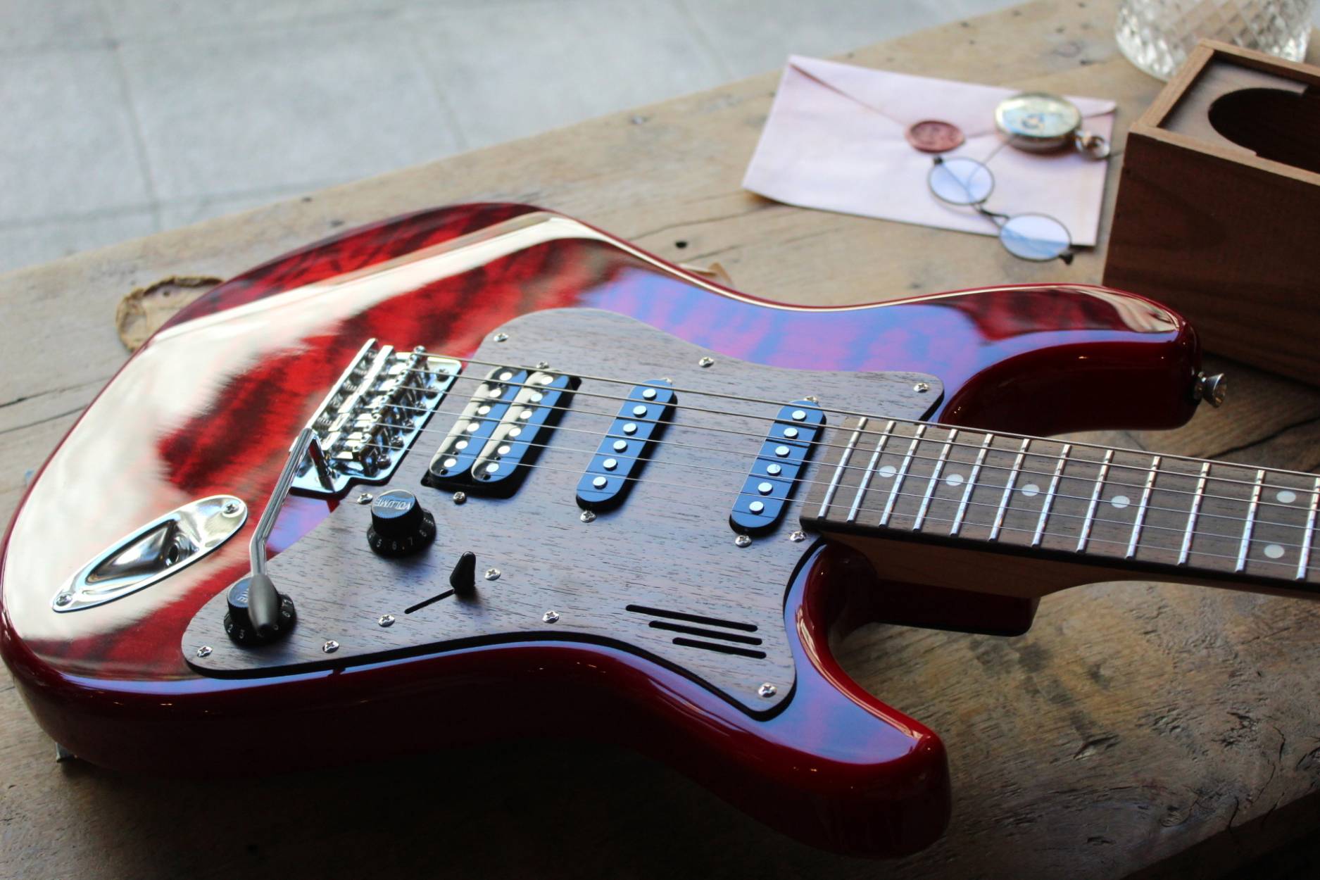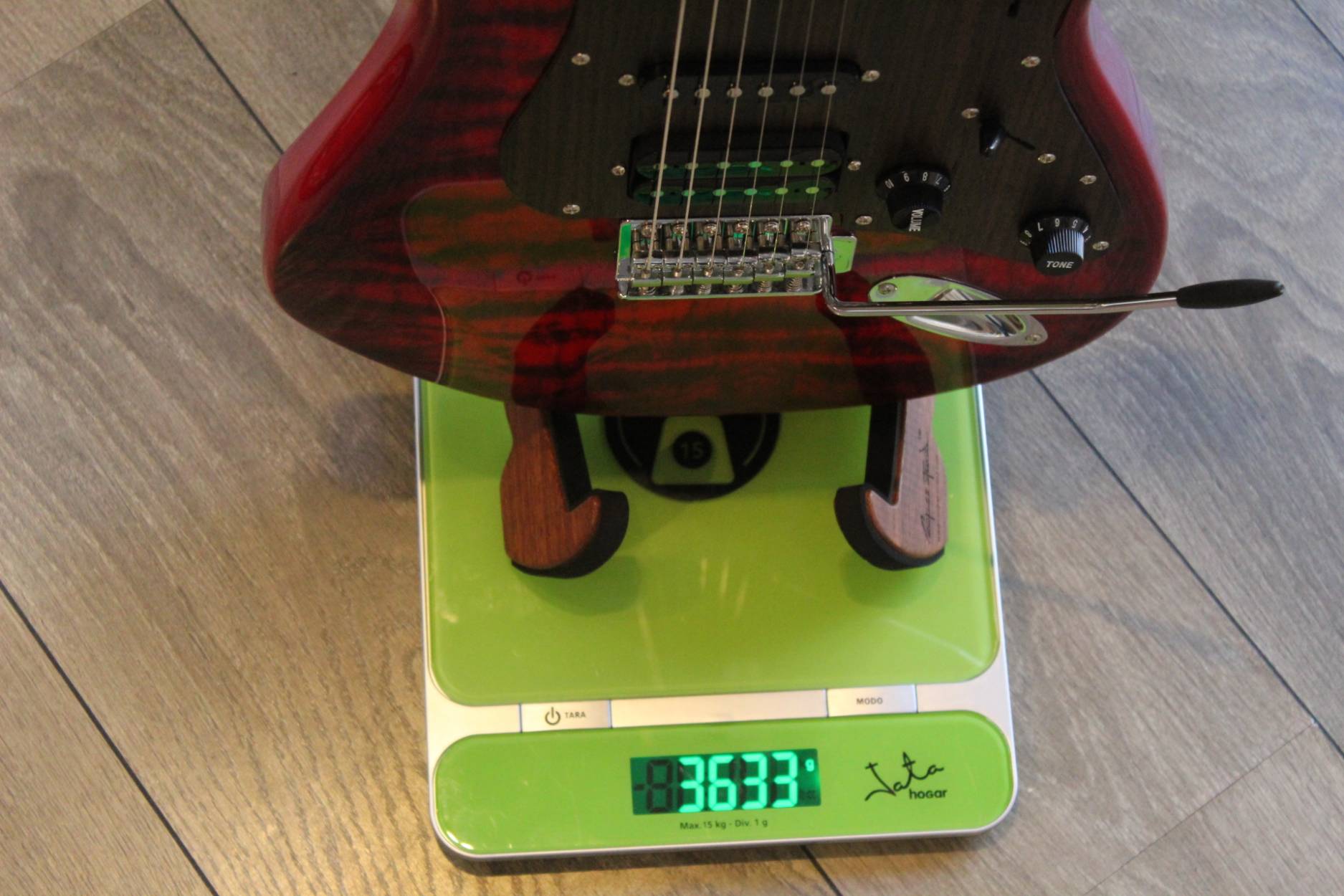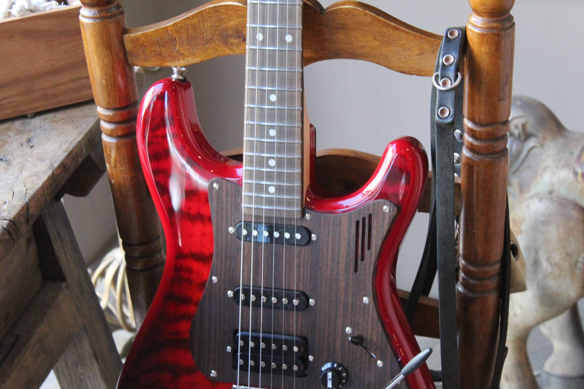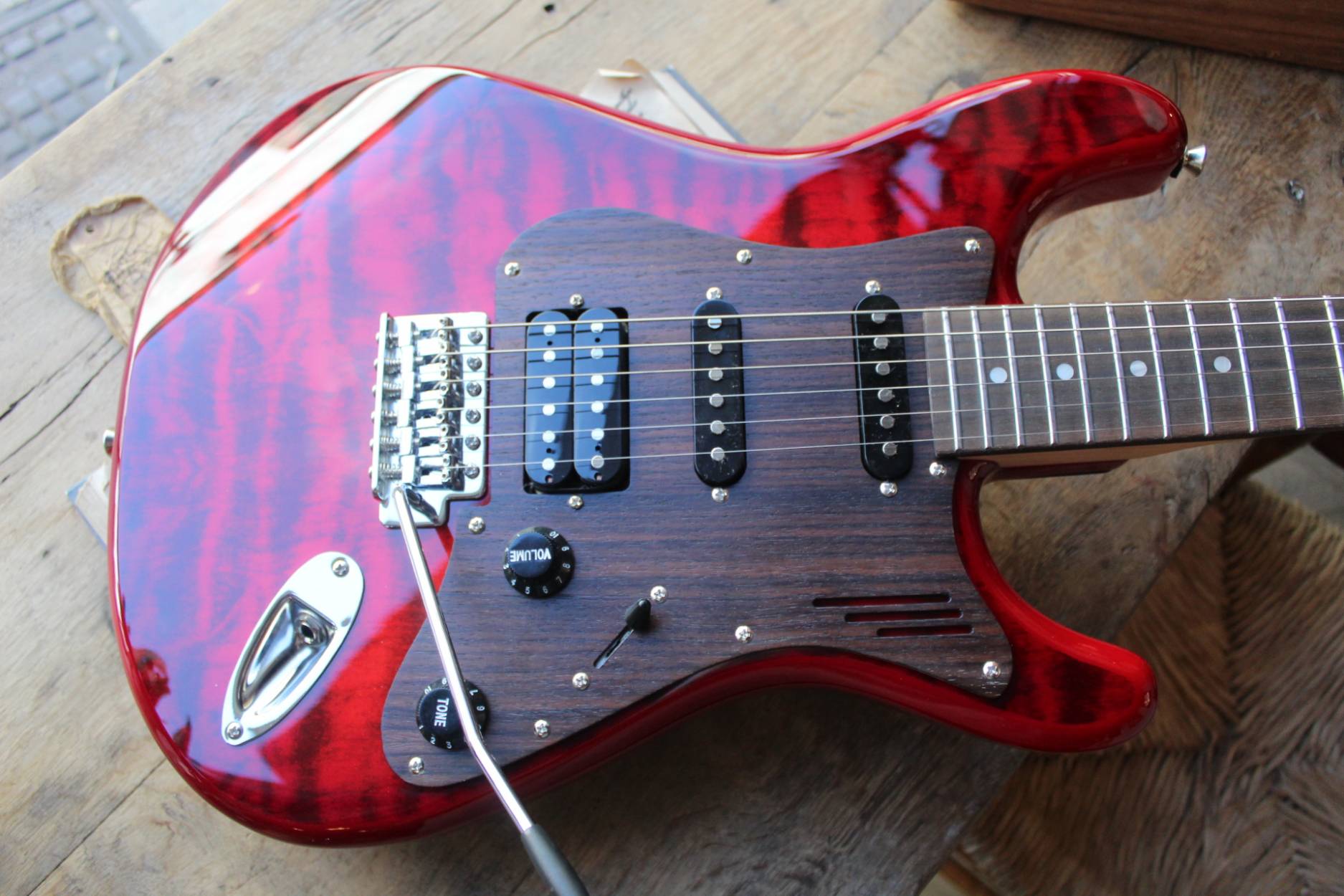 Sonnet Modern US-2300 The Sonnet US-2300 will meet the needs of the musician who is looking for a versatile instrument with great looks. The Basswood body gives the instrument that classic sound, it is embellished by a Figured Maple top and a wooden pickguard. The humbucking pickup in the bridge position adds fatness when it‘s time for your solo! SPECIFICATIONS BODY Body Wood: Basswood, 2-Piece with figured veneer top Finish: Polyurethane Pickguard: Finished Wood NECK Neck Wood: Hard Rock Maple Headstock: Magneto Sonnet Headstock Finish: Satin Polyurethane Fingerboard: East Indian Rosewood Scale length: 648mm / 25 ½” Nut Material: Synthetic Nut Width: 42 mm / 1.650” Frets: Jumbo Style Fret Nr.of Frets: 22 frets Neck Profile: Medium C Shape Radius: 12” / 305mm Radius Neck Heel: Tapered Truss Rod: Double Truss Rod Truss Rod Nut: Classic Top Loaded System HARDWARE Bridge: Classic Tremolo Tuners: Magneto Tuners String Retainer: Vintage Style for E and B String, + G and D string Neckplate: Standard Hardware Finish: Chrome ELECTRONIC PARTS Pickups: Magneto Calibrated Set Pickup Switch: 5 Position Switch Switching: Standard 5-way Controls: Volume, Tone Pots: Audio Taper Pots Output Jack: Mono Jack STRINGS: 009-042 CASE: Magneto Bag ACCESSORIES: Tremolo Arm Allen Wrench for Bridge Adjustments, Neck Adjustment Pin