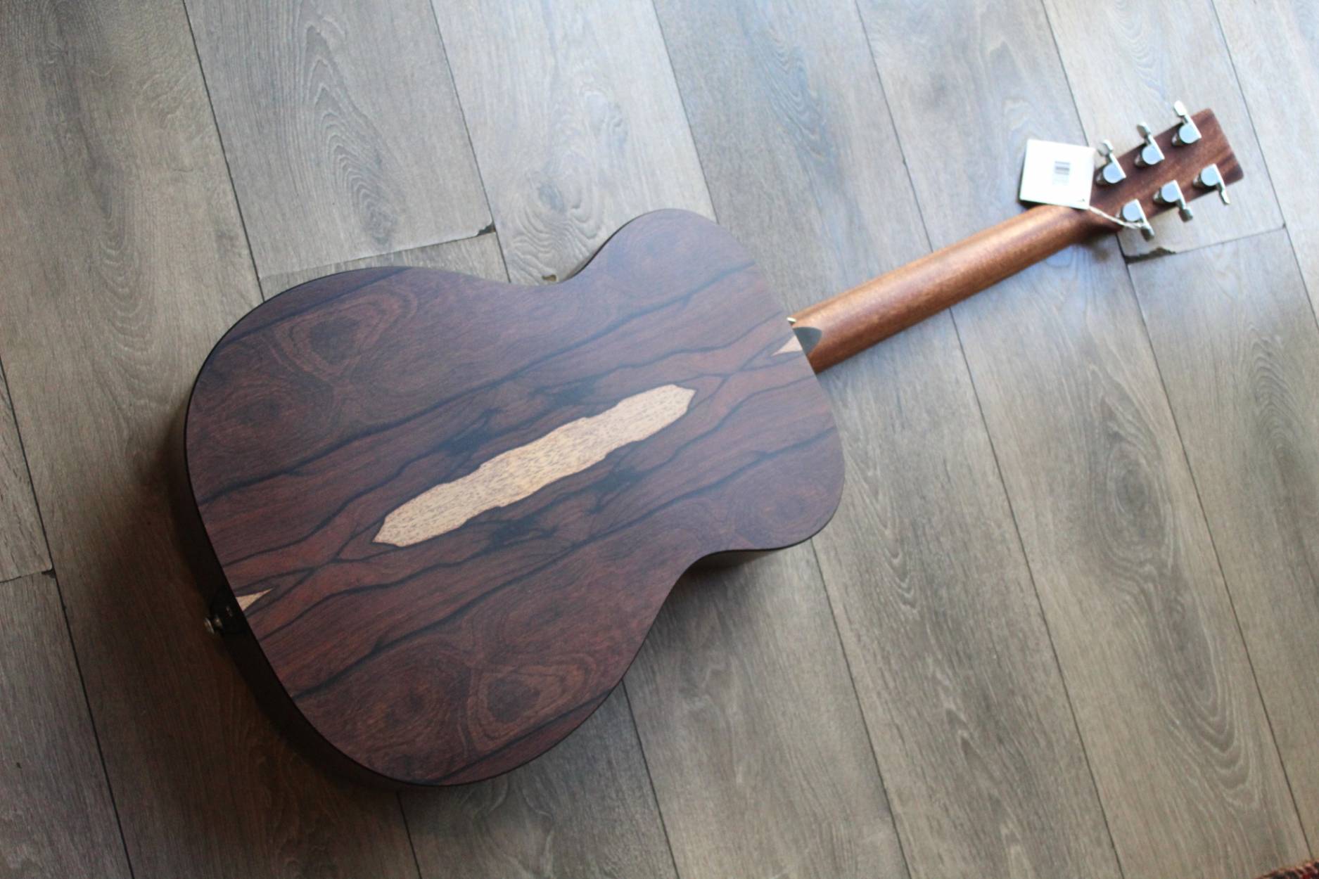 The remastered X Series is made to play. The 00-X2E Cocobolo is a smaller body acoustic-electric featuring a hand-rubbed satin spruce top with an elegant abalone pattern rosette and eye-catching cocobolo pattern high-pressure laminate (HPL) back and sides for added durability and looks, without sacrificing that classic Martin tone. Playability enhancements include a thinner fingerboard with a gently beveled comfort edge and refined string spacing, and a modernized bridge contour for a smooth and comfortable playing experience. It also features a select hardwood neck, fingerboard, and bridge for improved sound and sustain, and Martin E-1 electronics with a built-in chromatic tuner and volume, tone, and phase controls. The 00-X2E Cocobolo provides clear trebles complemented with warm bass, unplugged or plugged in, letting you play how you want, wherever you want. All X Series models come with a softshell case.