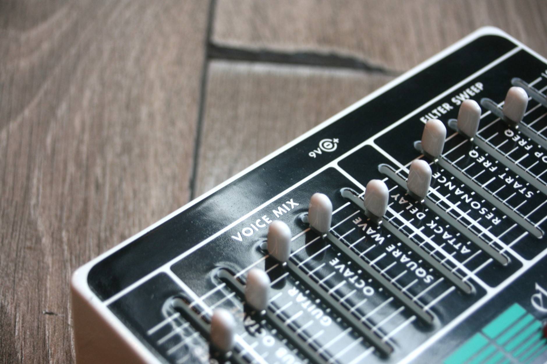 The Bass Micro Synthesizer has the same feature set as the Micro Synthesizer, but includes a trigger and filter sweep range especially tailored for bass guitar. The same fat analog synth textures give your bass a whole new range of possibilities: from percussive stabs to backwards-sounding bowed sounds
