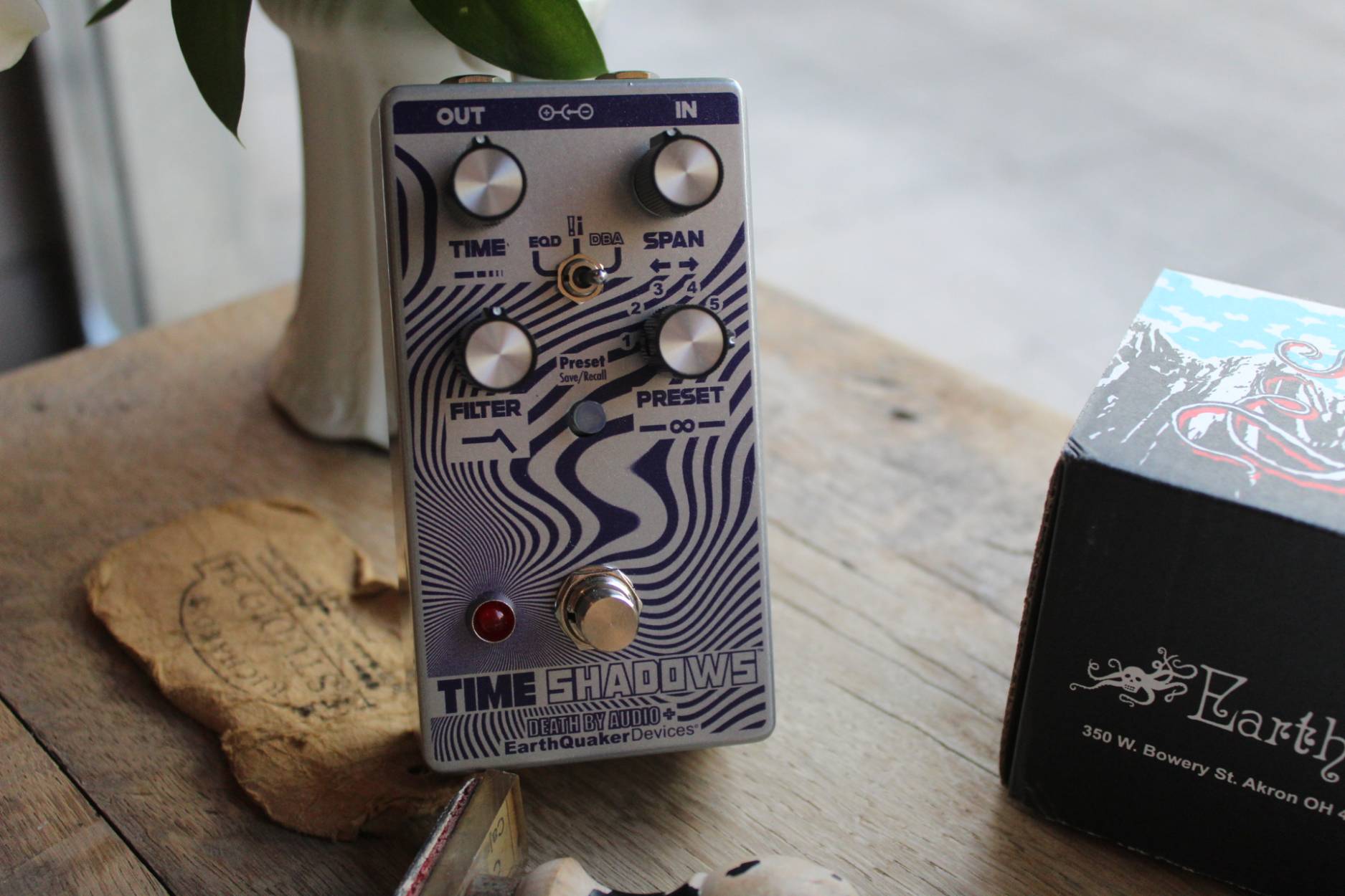 This joint collaboration between EarthQuaker Devices and Death By Audio is a major update to the original Time Shadows that was released in 2020 and limited to 1000 units! Time Shadows now features 3 modes, user assignable expression control and 6 preset slots to save and recall your favorite settings. The EQD Mode is an envelope controlled sub-octave filter delay, the ALL NEW !¡ Mode is a dual delay where each repeat simultaneously shifts up and down with each regeneration, and the DBA Mode is a multi-delay regenerating filter. All three sounds are wildly different from each other and yet share a perfectly designed harmony to be completely complementary and suitable for every style and genre of music.