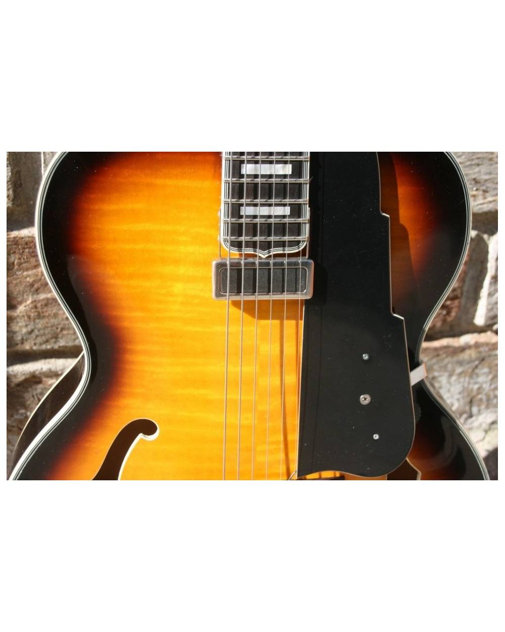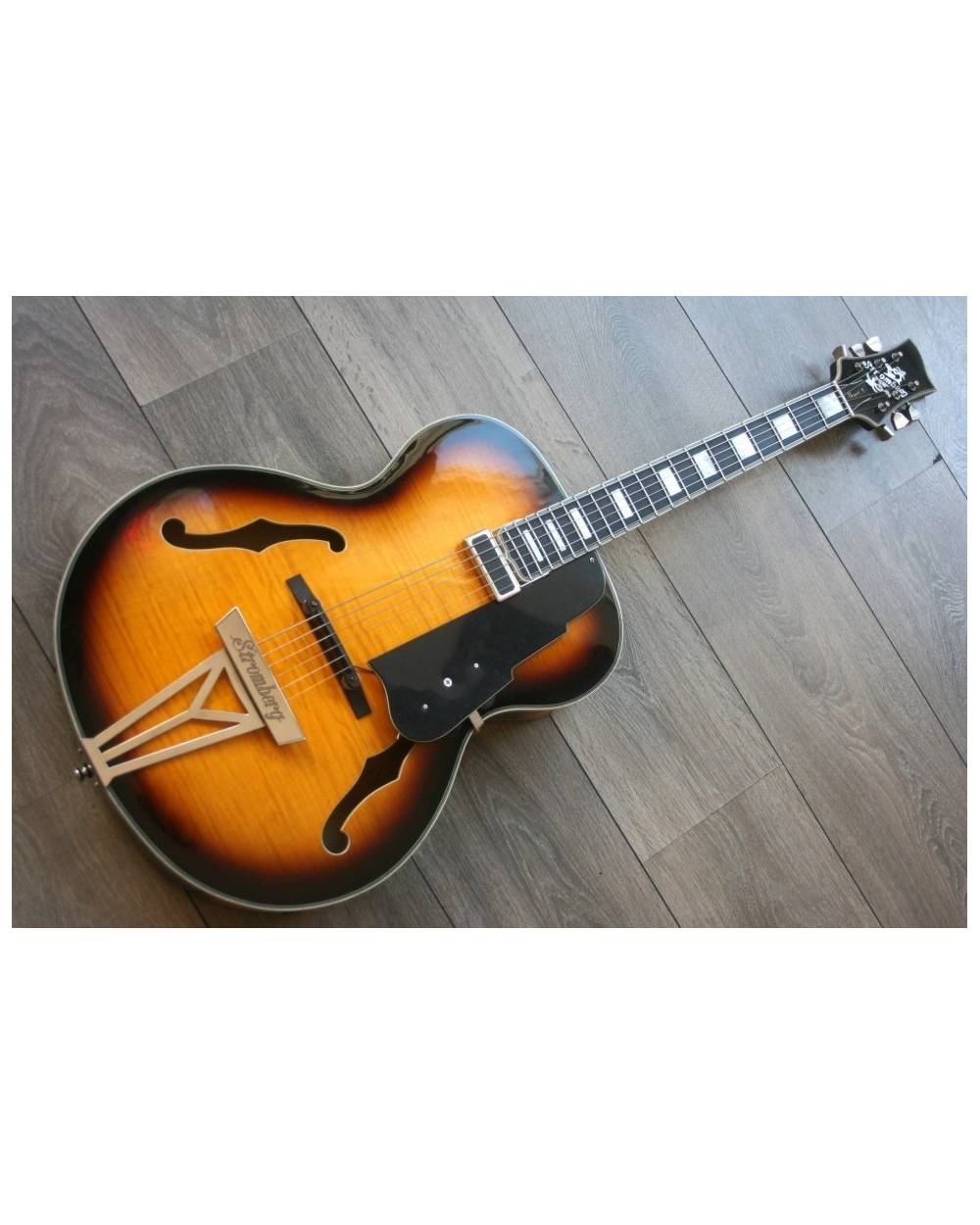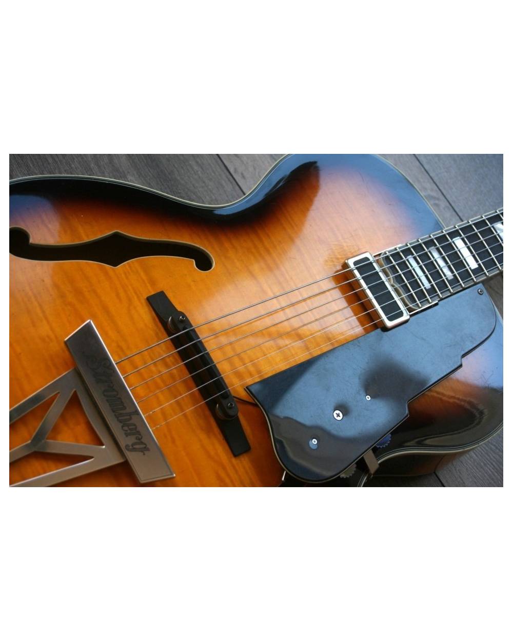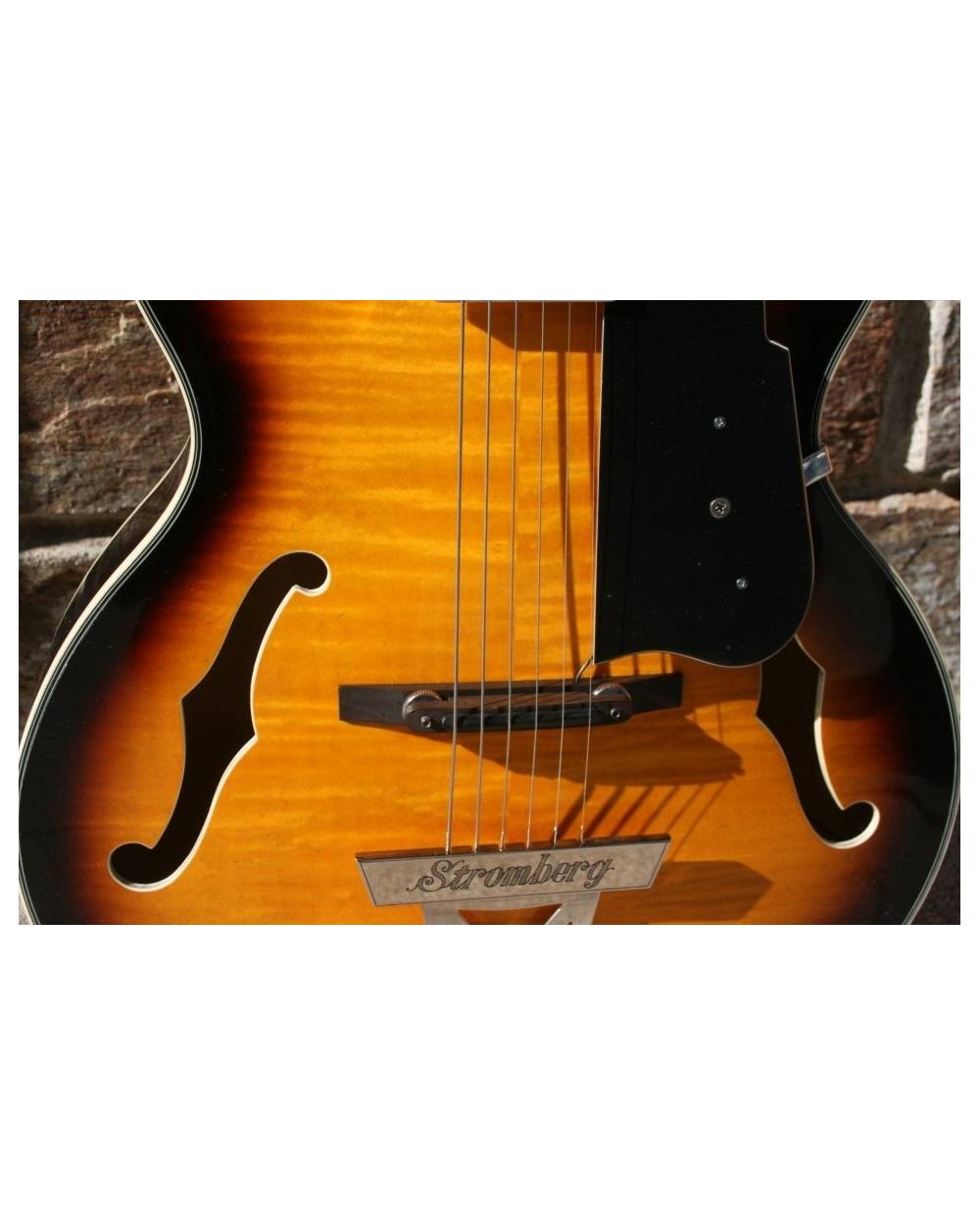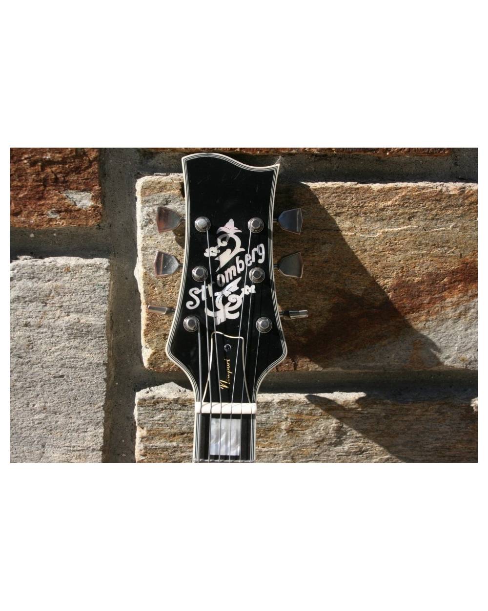 Newport The Newport harkens back directly to early Stromberg design. Aged finish. Mother of Pearl headstock inlays. Vintage waffleback tuners. Stromberg original brass tail piece. Add to that the proprietary Stromberg piezo electric bridge pickup and you get a bohemian sound and Stromberg legendary tonal projection. Picking up and strumming the Newport will make you feel like you are sitting in that jazz era big band.