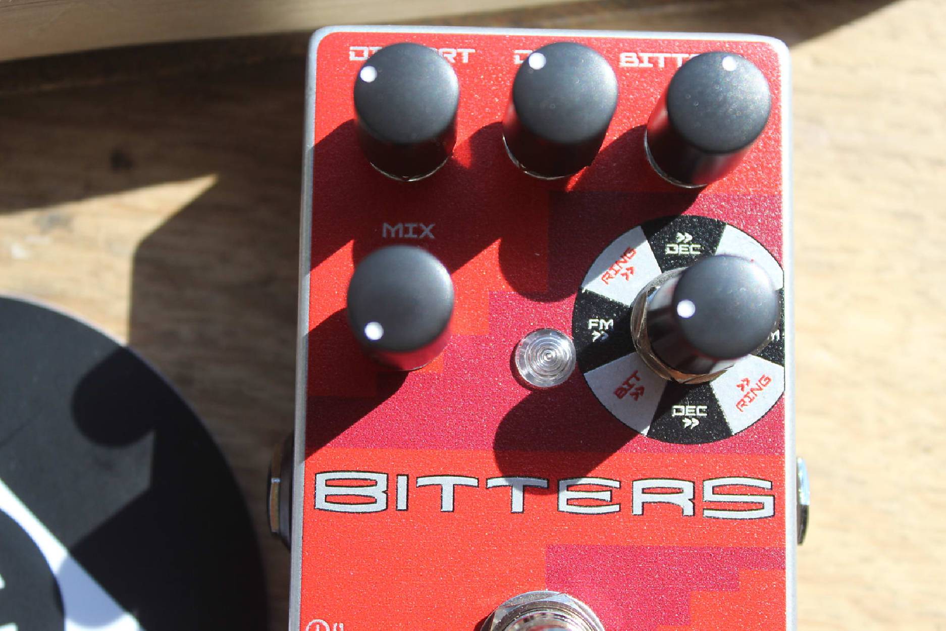 The Bitters is a reimagining of a hyper-deranged multifx processor, the Alesis Bitrman. Featuring knobs for Distortion, Phaser and one of four choosable sound manglers, you can dial in everything from a lush chorus to a crushing barrage of noise. A handy Mix control reins in the mayhem, making for a unique soundscaping tool perfect for the pedalboard or mixing desk. In 2004, the Alesis company released a series of effects geared towards tabletop musicians and DJs. This series was called “ModFX” and featured seven relatively pedestrian effect types, including vocoder, tremolo, compression, phaser, flanger, and filter. The seventh one, however, was a beast all its own among its ModFX peers and pedals in general. It is called the Bitrman. Our Bitters distills the madness of this circuit, fixing up the original’s shortcomings and trimming the fat to deliver an infinitely more usable version.Occupying the darkest corner of the soundscaping realm, the Bitters will give you lush, usable effects or completely render your signal into a puddle of digital mess. Just like the original, the Bitters pairs just as well with synths, drum machines, and DAWs as it does with electric guitar and bass. And since the original didn’t have a mix control of any kind, the Bitters is infinitely more usable than the original ever was.The Bitters is essentially a multi-effects device on steroids, giving you individual knobs for distortion and phaser, along with a third user-selectable program called “Bitters.” This program can be one of four different effects: Decimator, Bitcrusher, Frequency Modulation, and Ring Modulation. These three effects are run in series, but you can reverse the order such that Bitters comes first for some complete sonic mayhem.