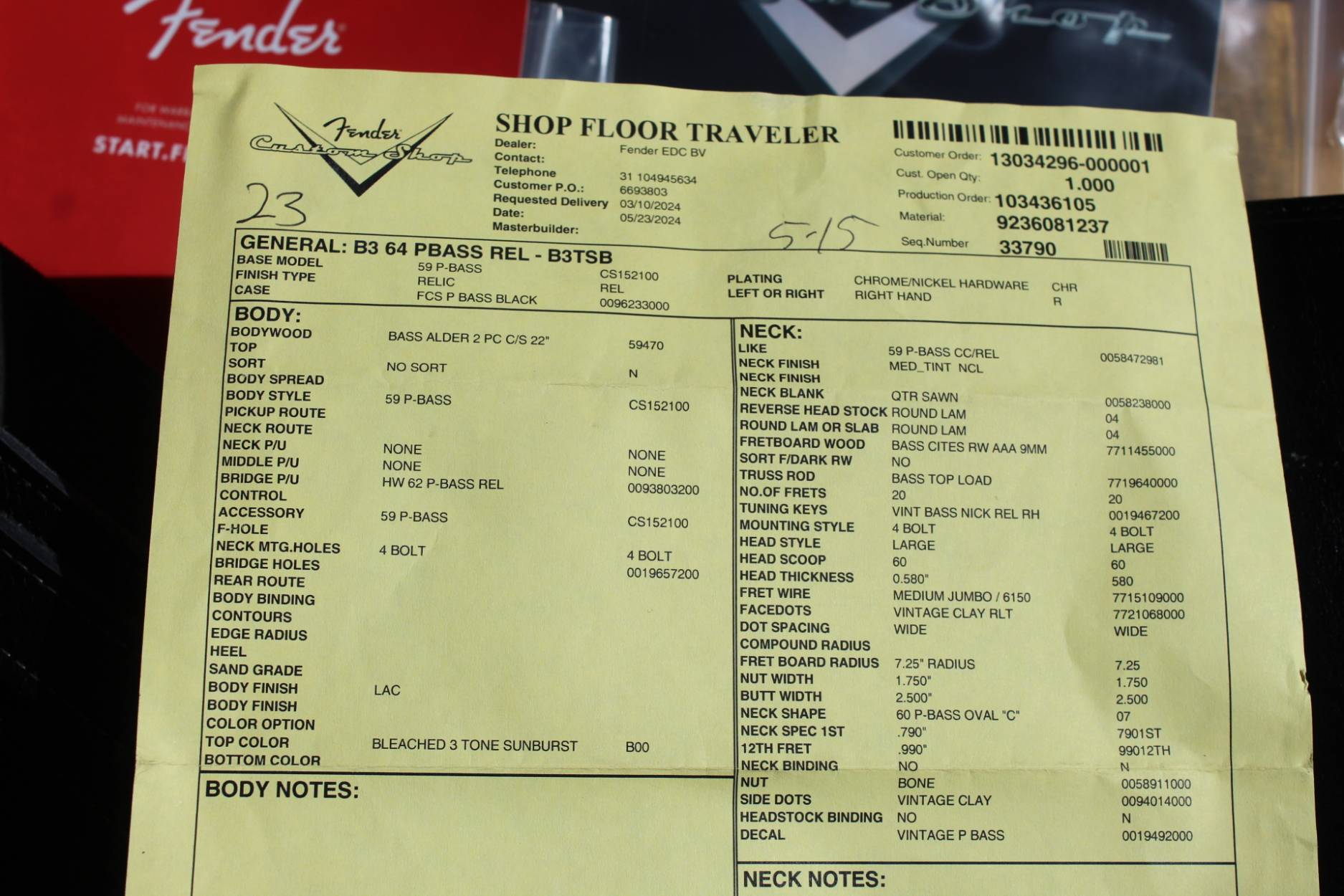 FENDER Custom Shop 1964 Precision Bass Relic Bleached 3-Tone Sunburst, HARDCASE, PAPERS, 4, 10 KG