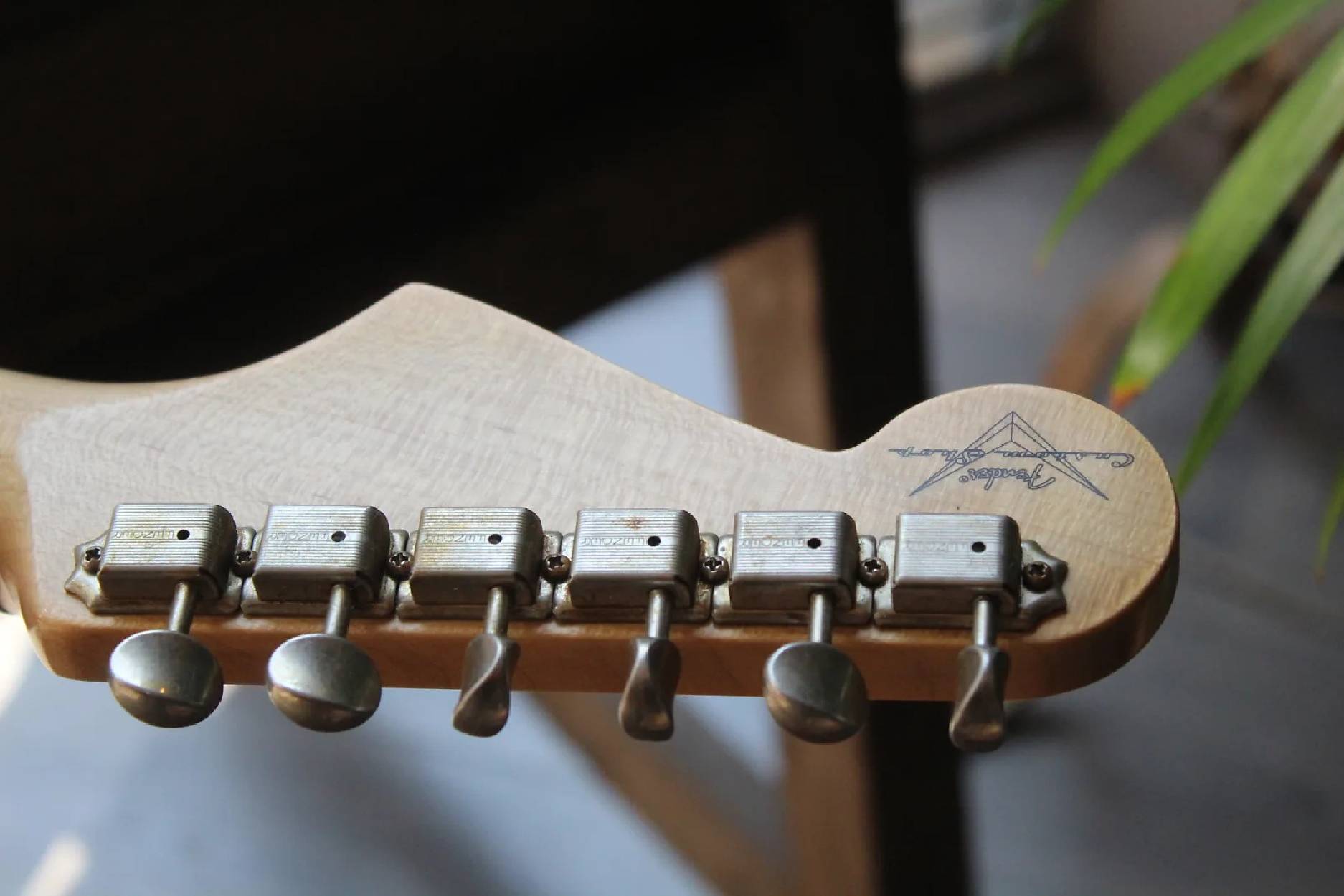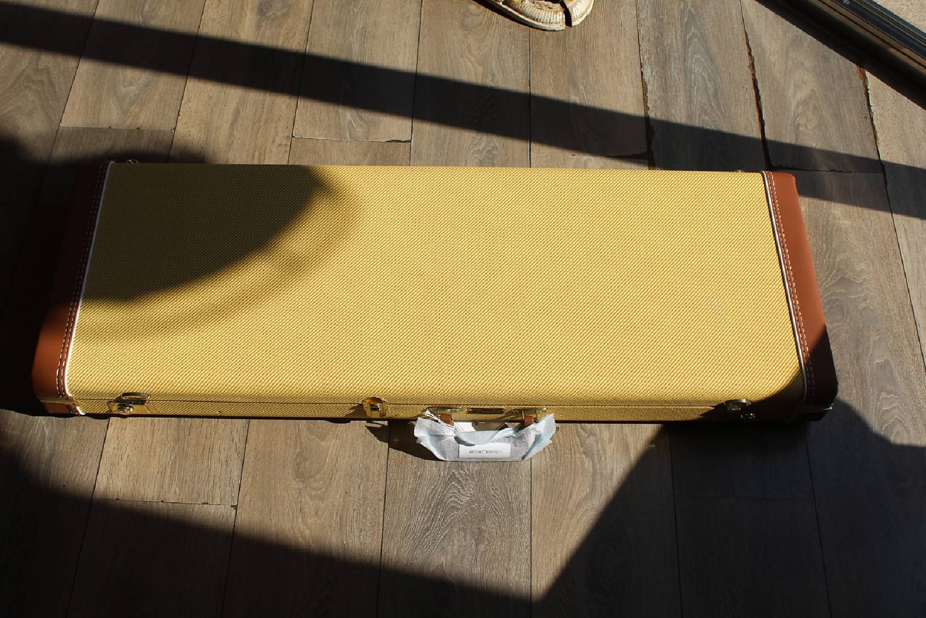 The Fender Custom Shop is a division of Fender Musical Instruments Corporation, housed within its headquarters complex in Corona, Riverside County, California. The Fender Custom Shop produces special-order guitars for customers through a Custom Shop dealer network, creates limited edition high end quality guitars, builds limited edition amplifiers, and does some research & design for the parent company. Alder body is finished in a classic Fiesta Red nitro lacquer, period correct, this finish will wear beautifully with time and develop its own character even further. It also allows the natural resonance of the body to sing and sustain much more effectively compared with other finishes. The Journeyman finish is unbelievable; the attention to detail here is meticulous and super authentic. The plain grain Maple neck With a 9.5" radius and 21 6105 frets and a 1.650" nut width this guitar is posed and ready for action. It also features a '63 Style "C" neck shape which measures .830"